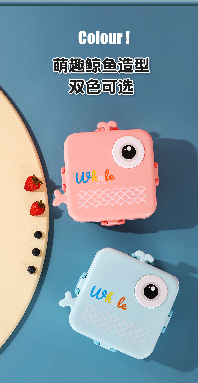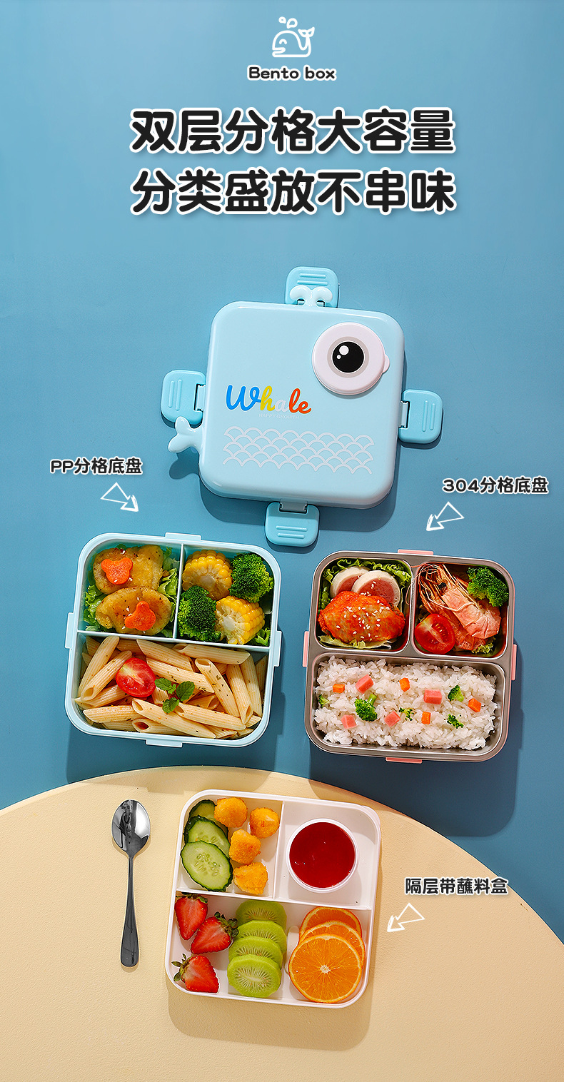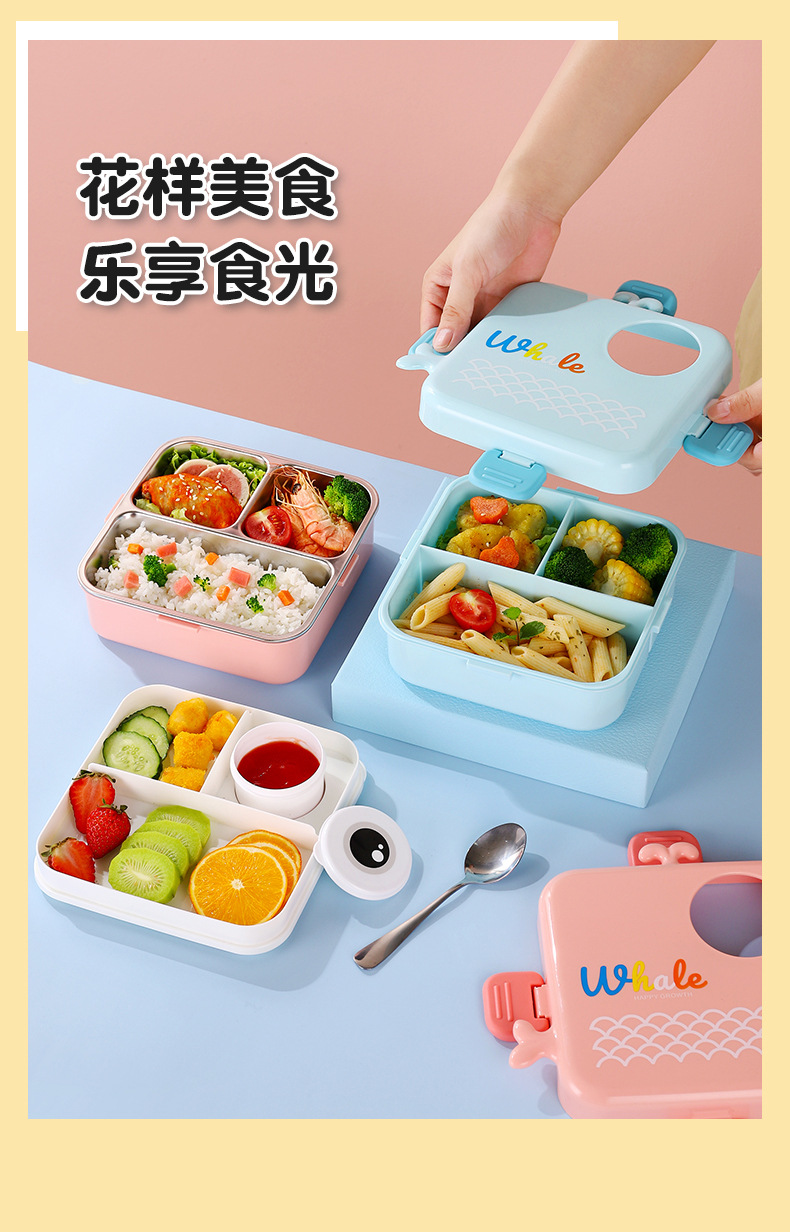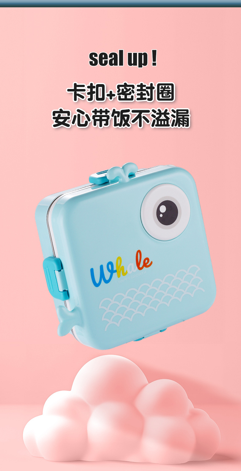 小鲸鱼卡通便当饭盒不锈钢卡通饭盒 微波炉加热 分格不串味 新颖带调味盒便当盒 开学季学生饭盒