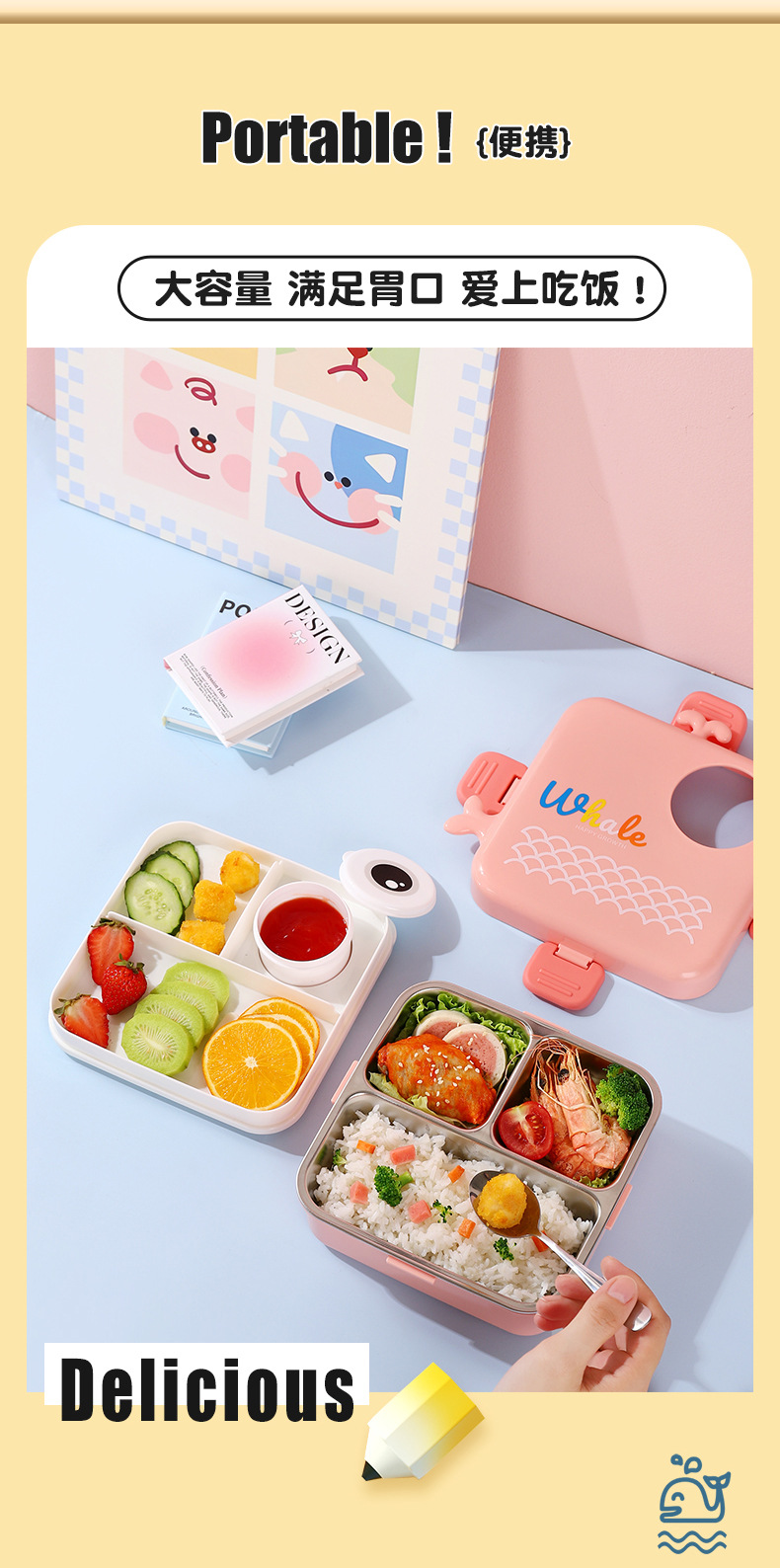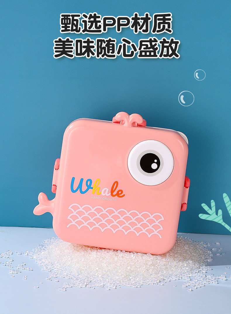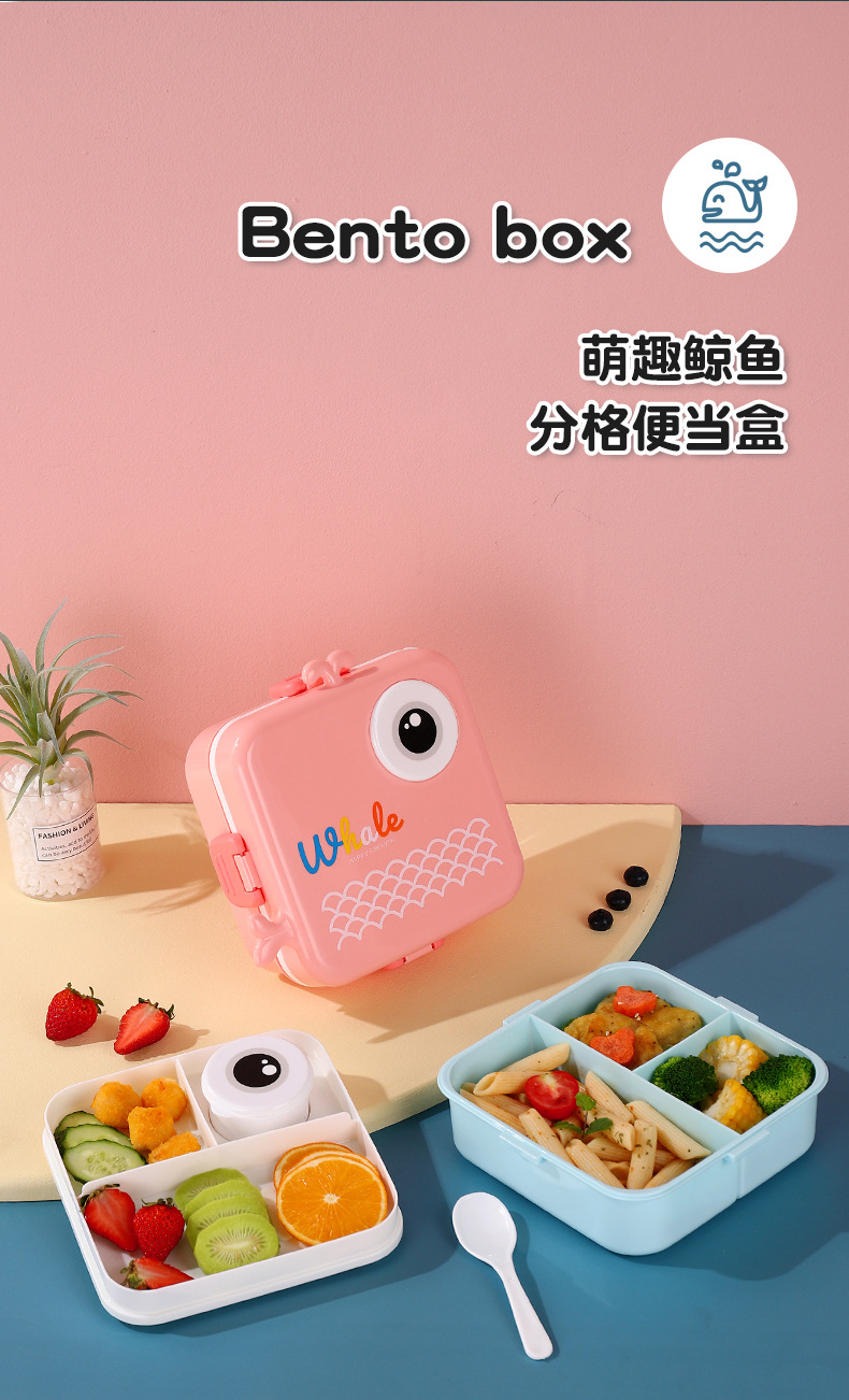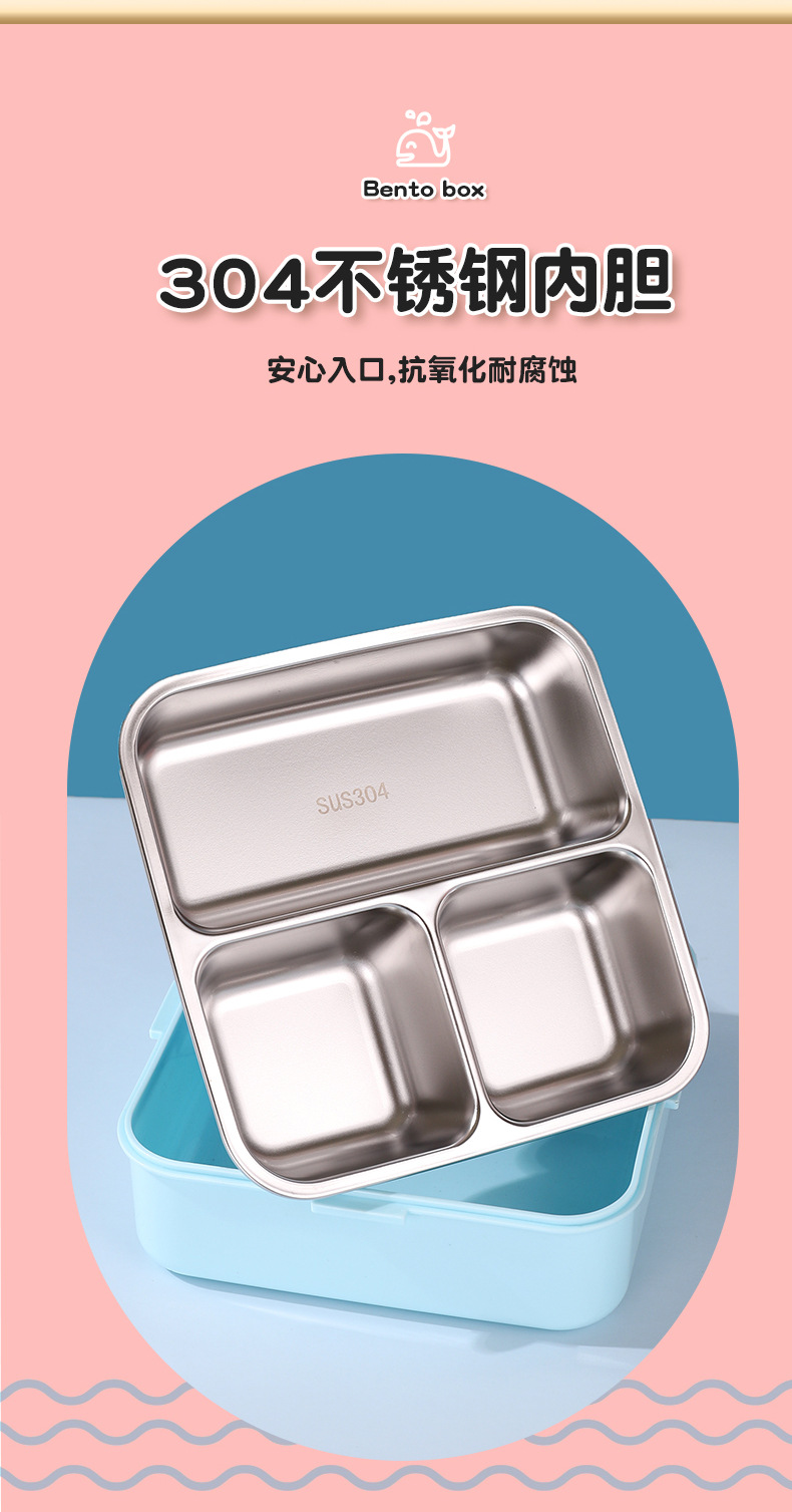 小鲸鱼卡通便当饭盒不锈钢卡通饭盒 微波炉加热 分格不串味 新颖带调味盒便当盒 开学季学生饭盒