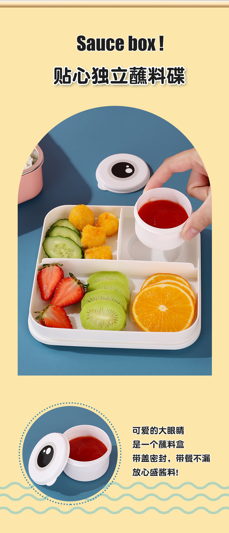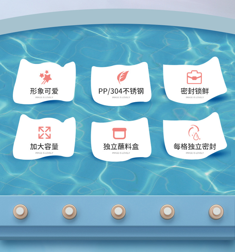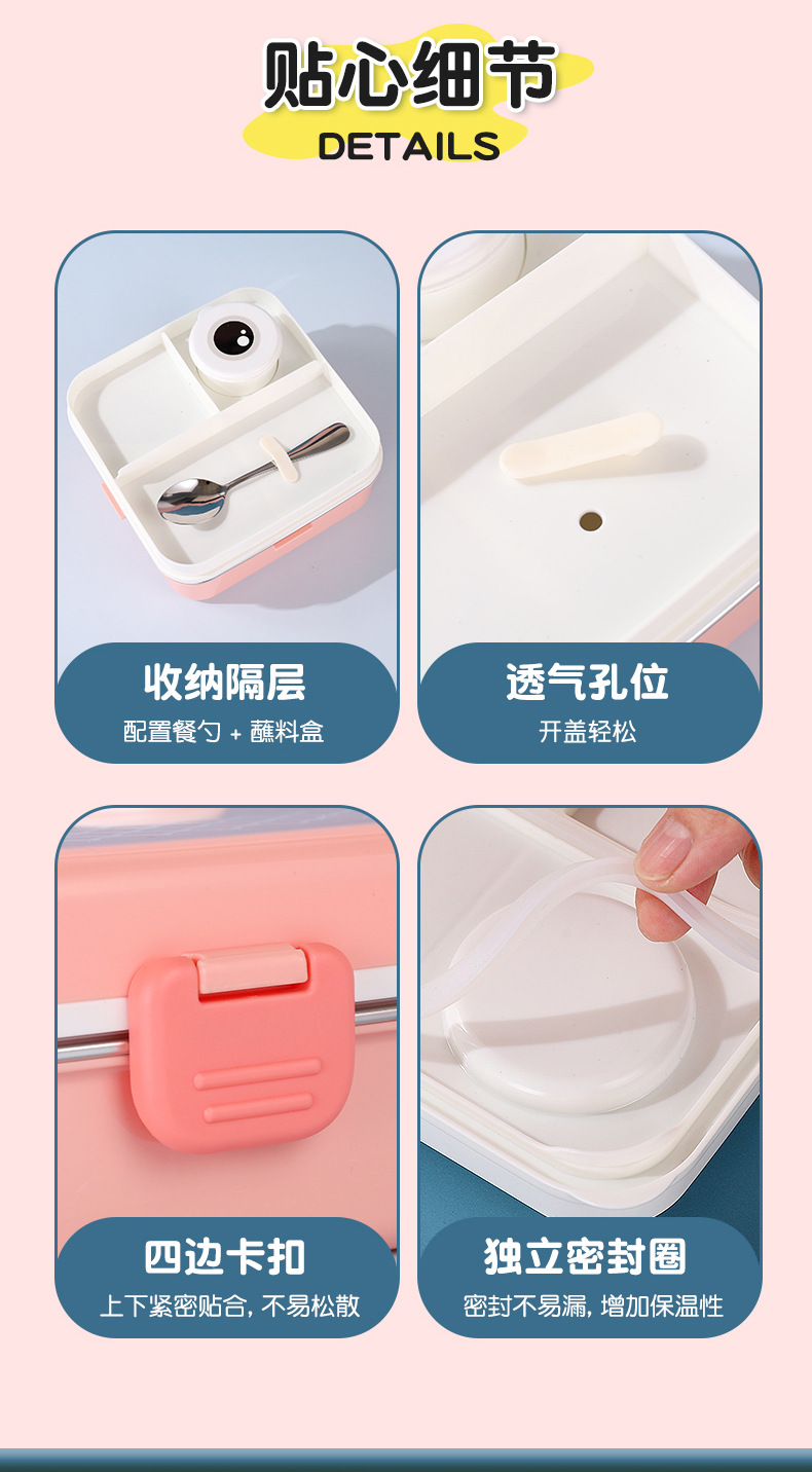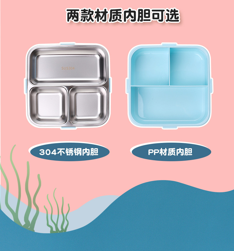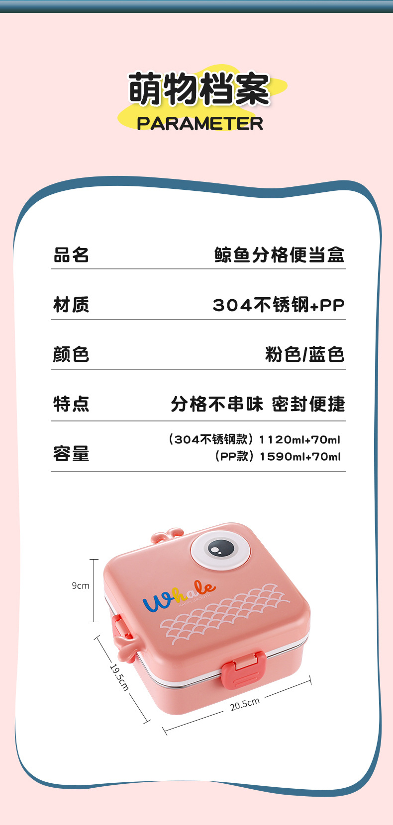 小鲸鱼卡通便当饭盒不锈钢卡通饭盒 微波炉加热 分格不串味 新颖带调味盒便当盒 开学季学生饭盒