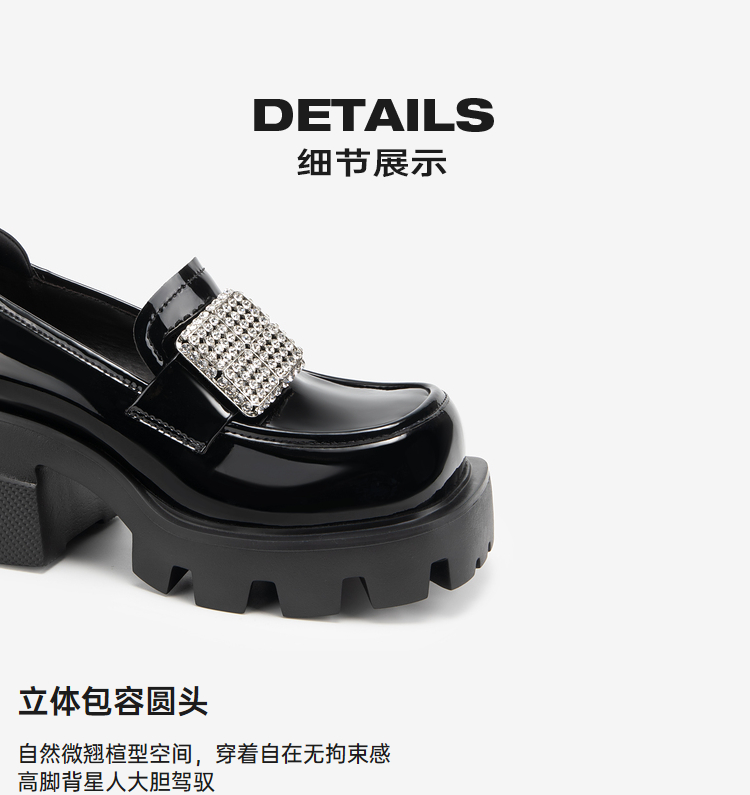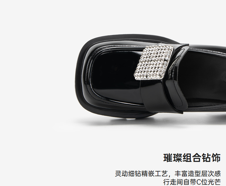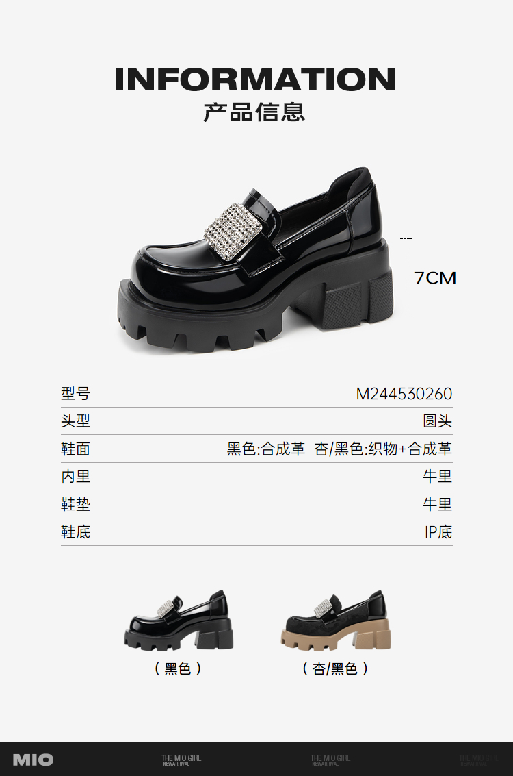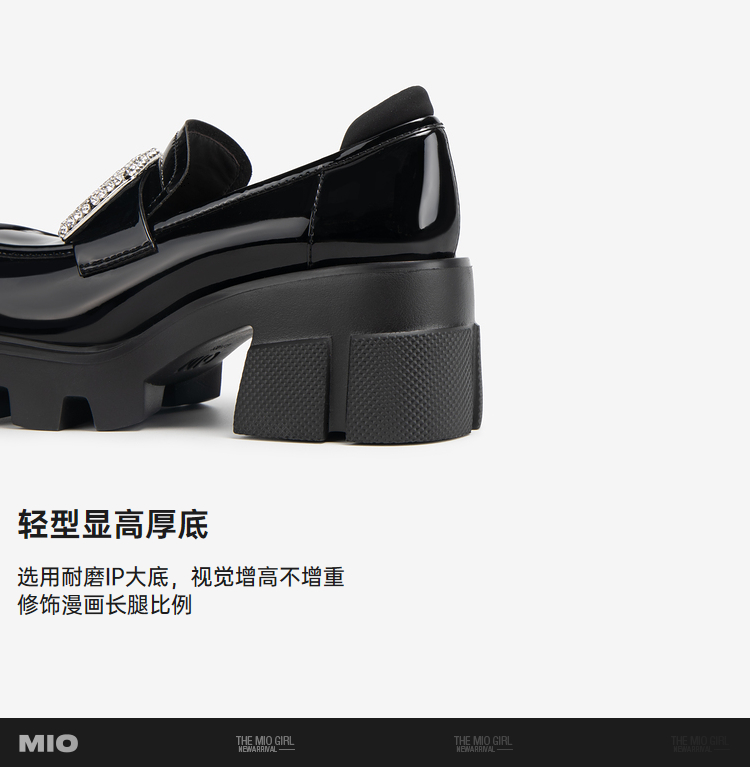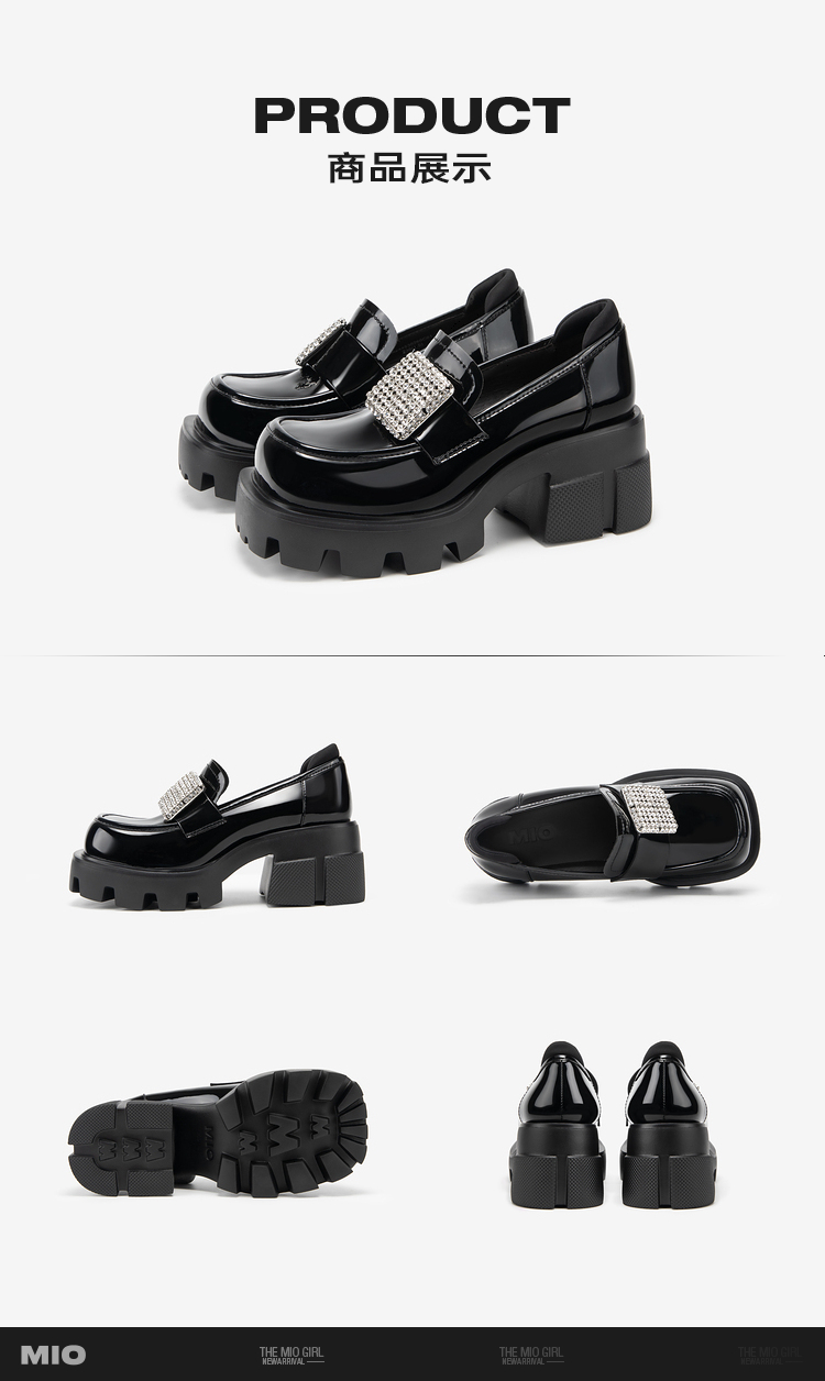 MIO米奥秋季高跟乐福鞋钻饰复古显高深口单鞋豆豆鞋女M244530260