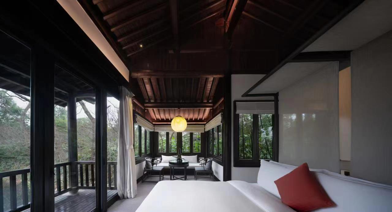 酒店坐拥四万平方米曲水流烟的空间,只设有 26 间别墅客房,建筑、设计与景观完美融合,融情于景,相得益彰。房间量少且依水而布,软装陈设格调雅致,匠心独具,真正实现东方美学度假的诠释。