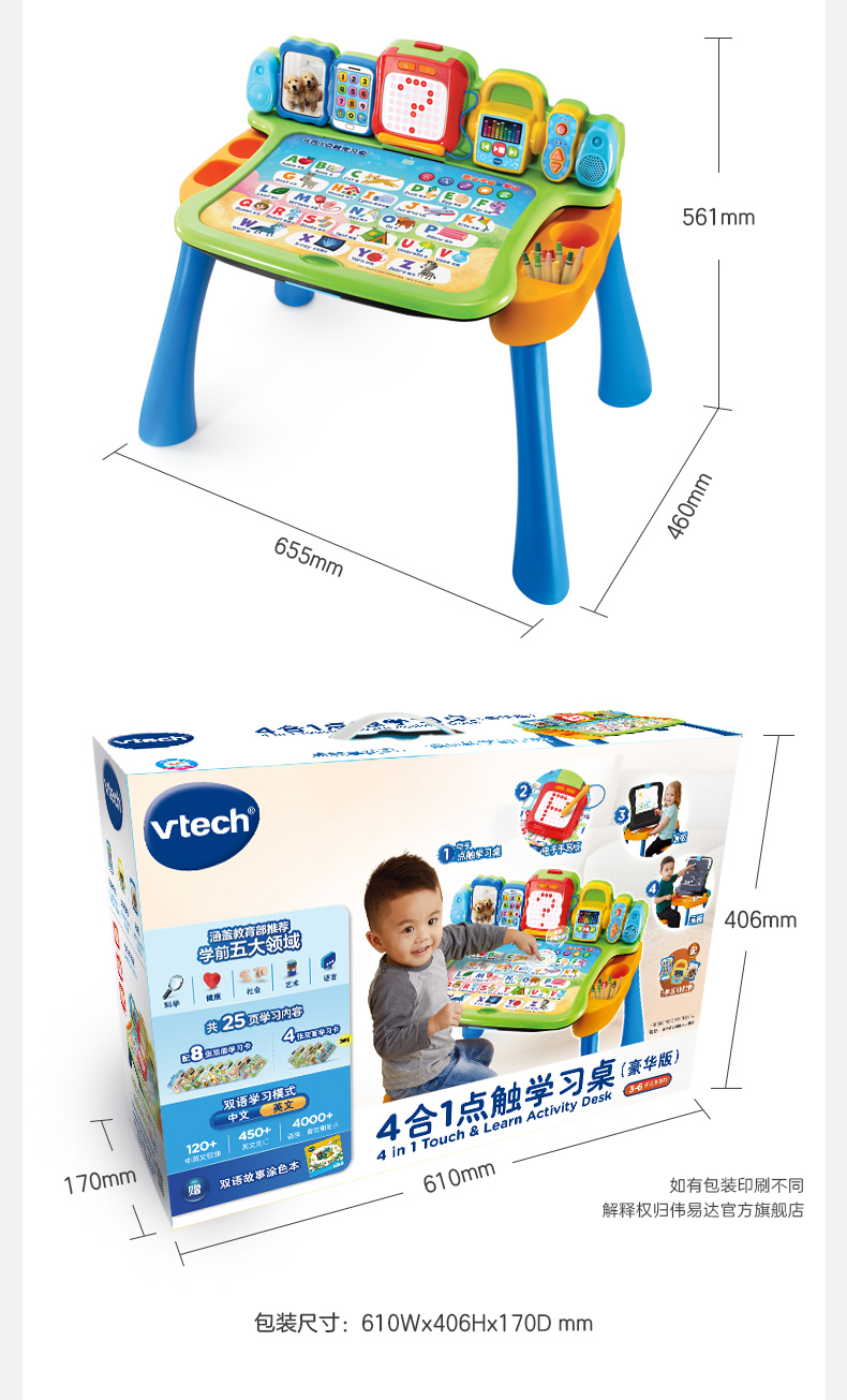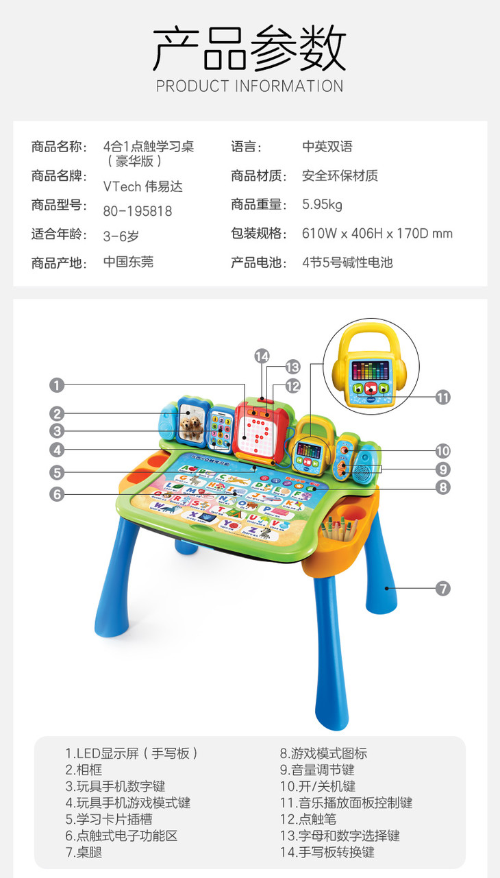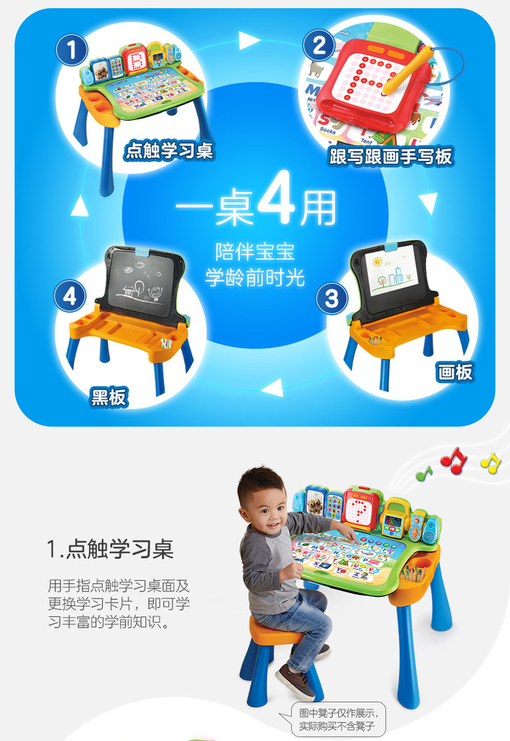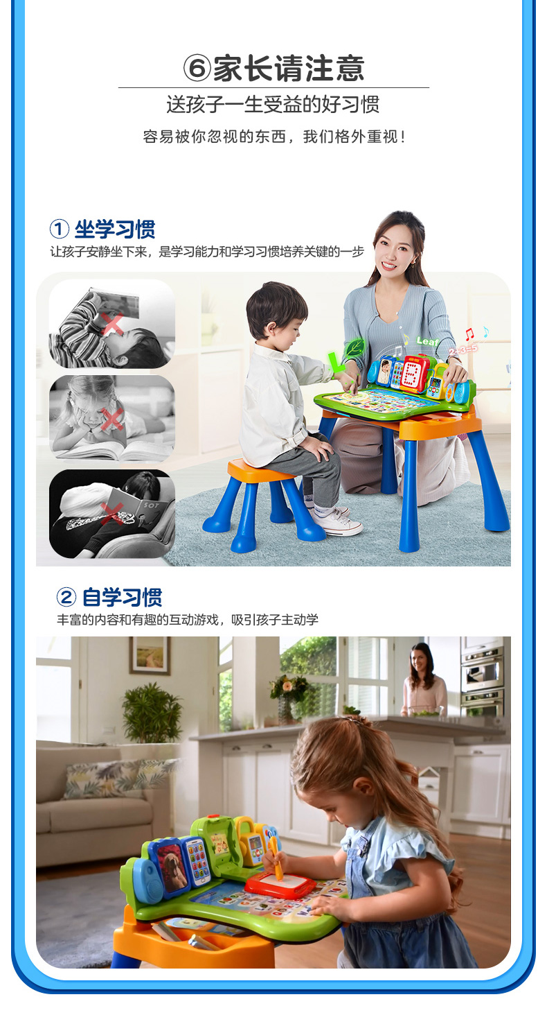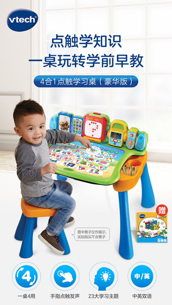 VTech伟易达点触学习桌 儿童多功能游戏台宝宝益智早教双语点读玩具