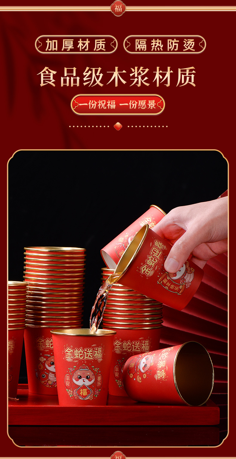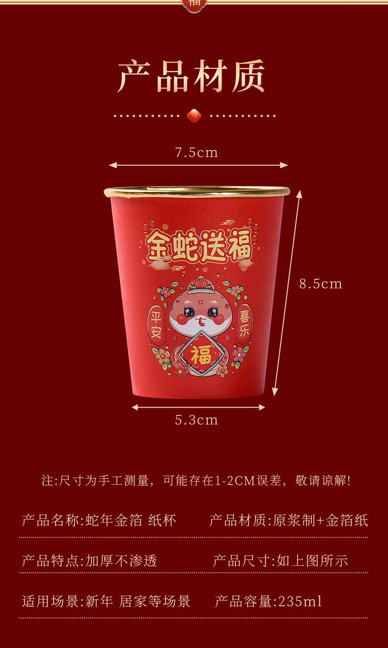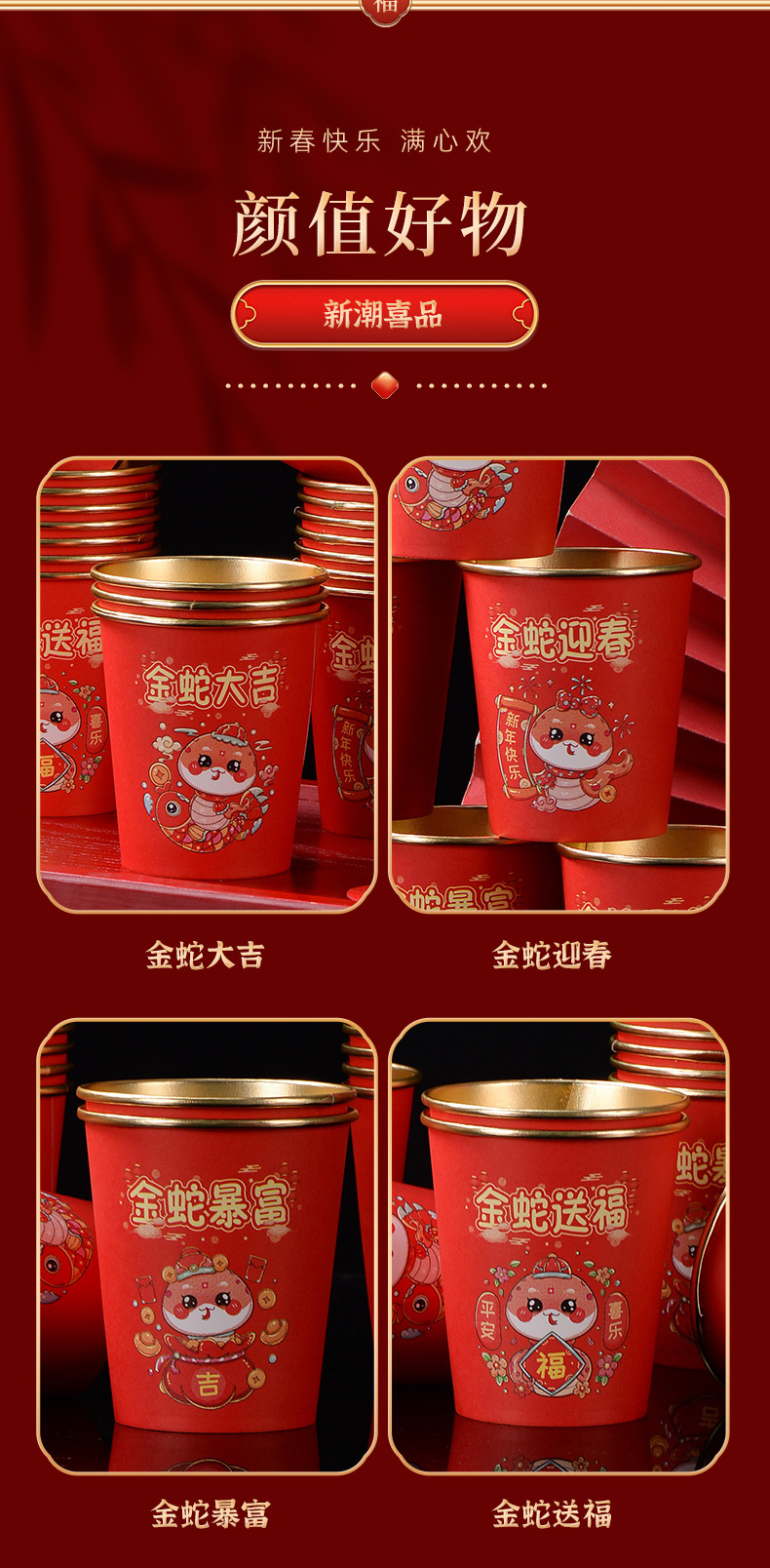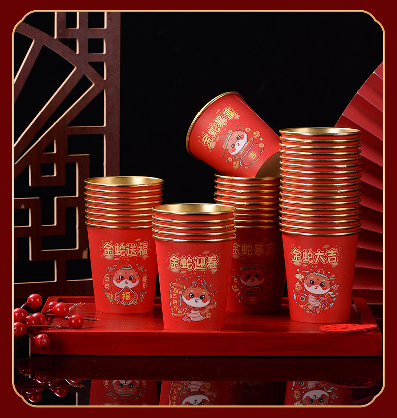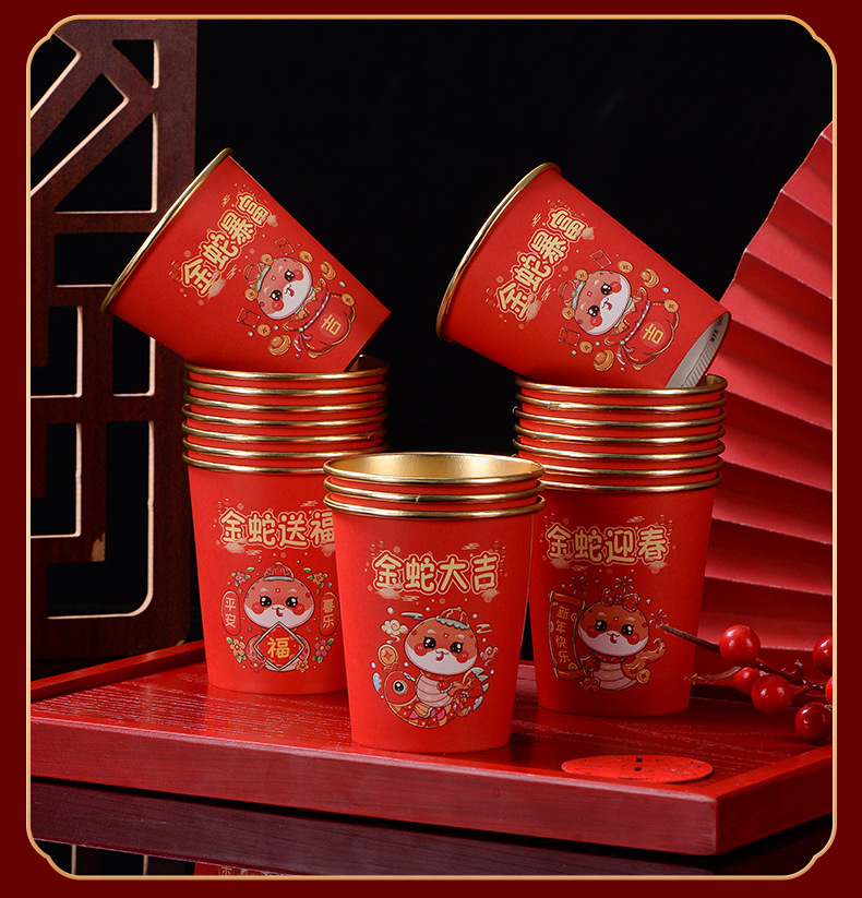「新年纸杯!9.9到手」2025蛇年大吉纸杯 蛇年发财加厚纸杯 一次性喜庆纸杯居家日用餐饮用具