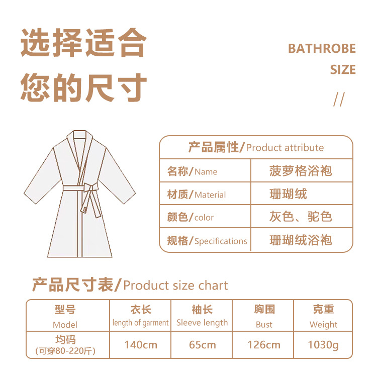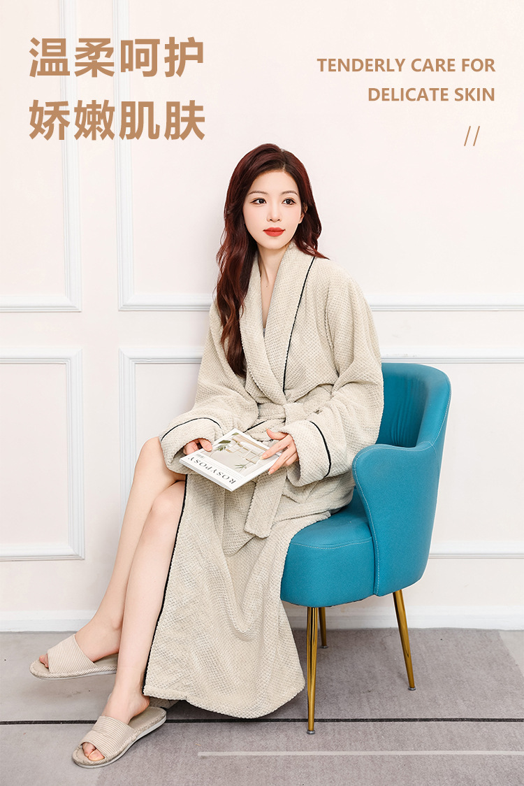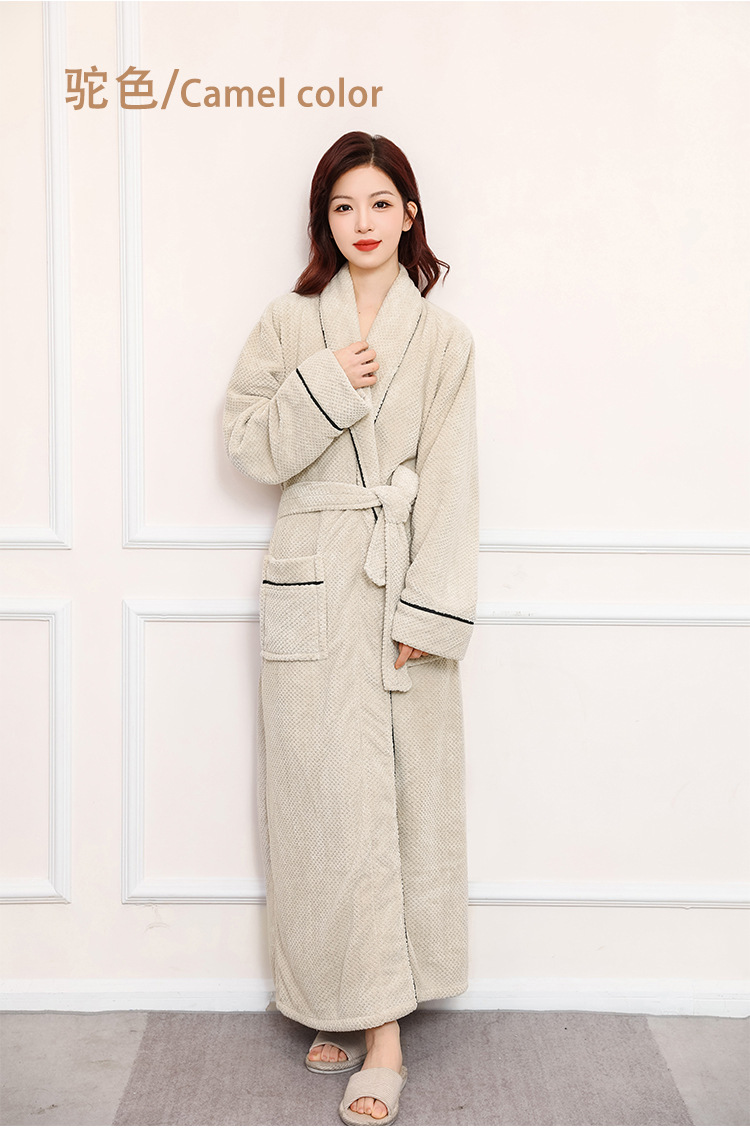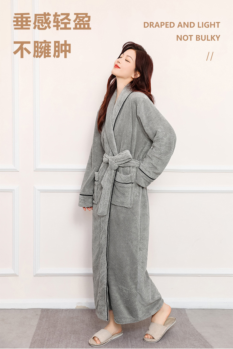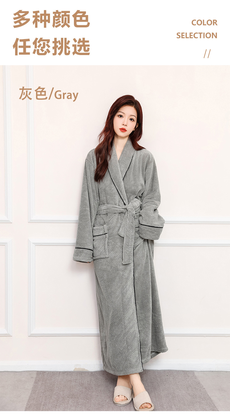 秋冬季浴袍 男女珊瑚绒加厚睡衣 情侣加长款大码浴衣 舒适睡袍保暖晨袍