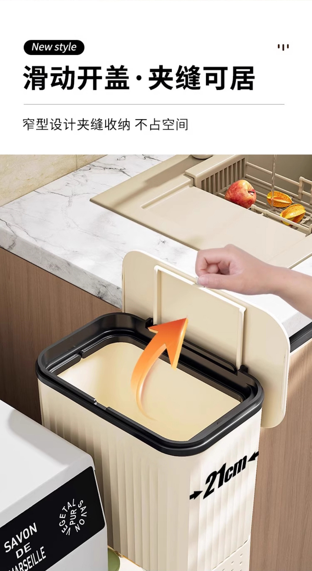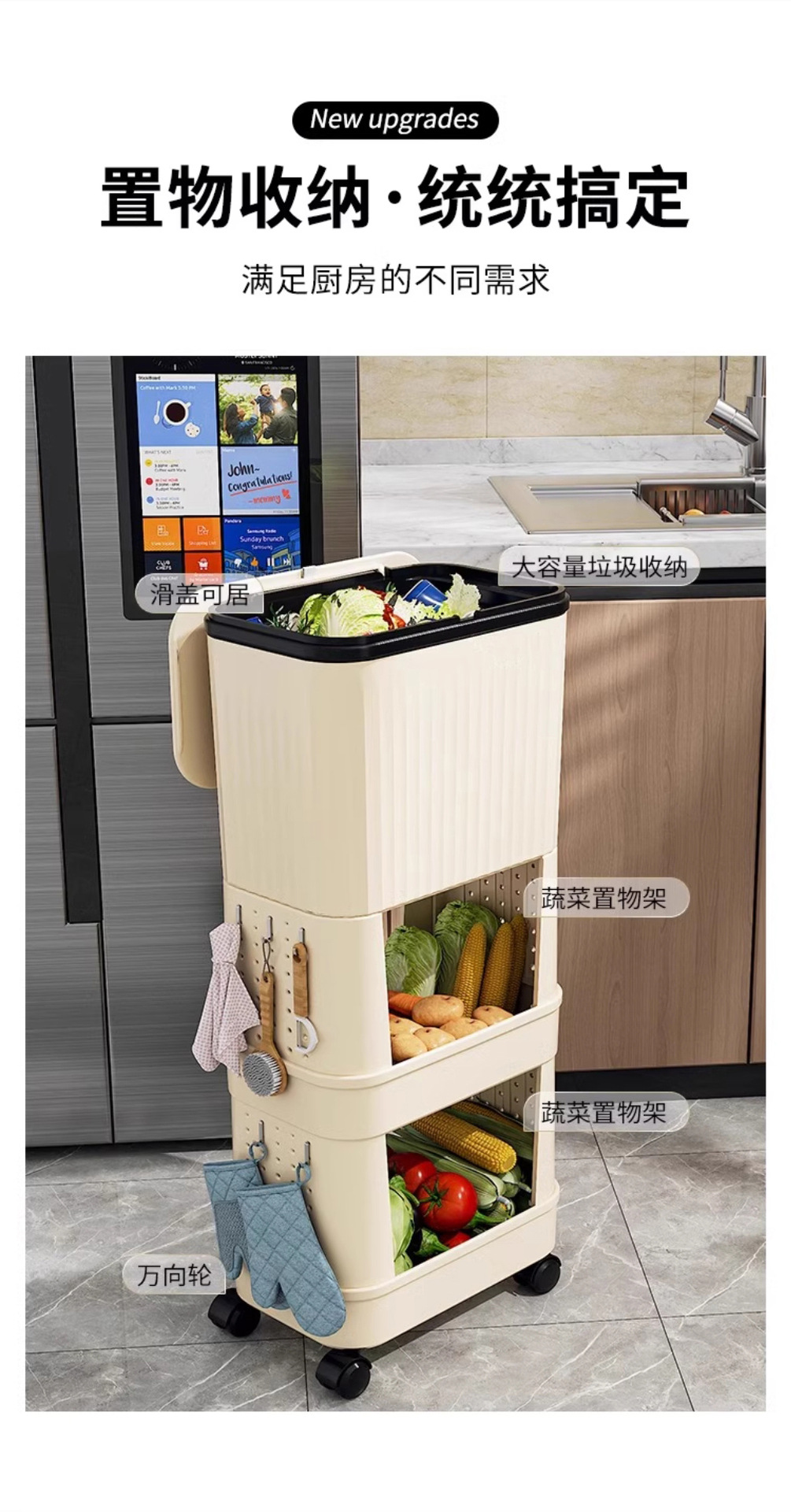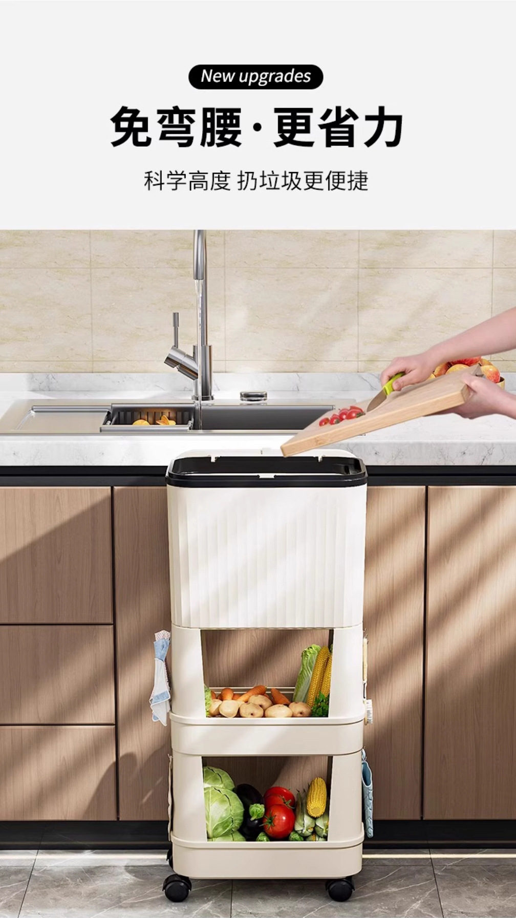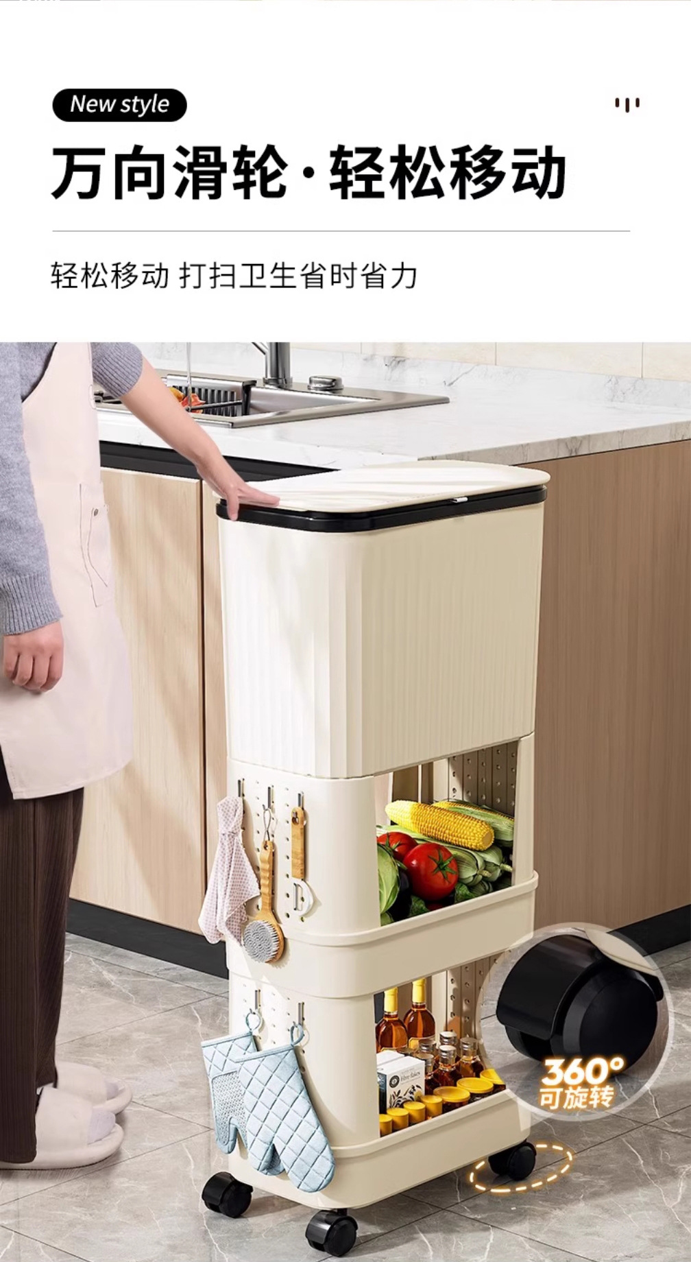 【厨房神器上线🔥】新款免弯腰垃圾桶🚮+置物架,大容量可移动设计💡窄缝收纳不占地!奶油白&典雅灰任你选🎨,滑盖轻松开合,居家必备💯!免弯腰功能架