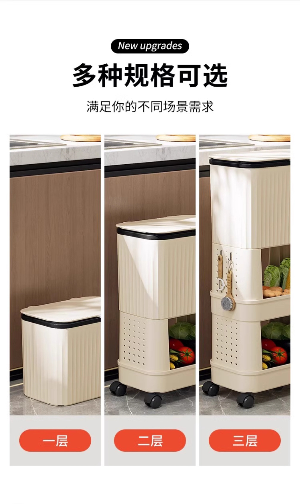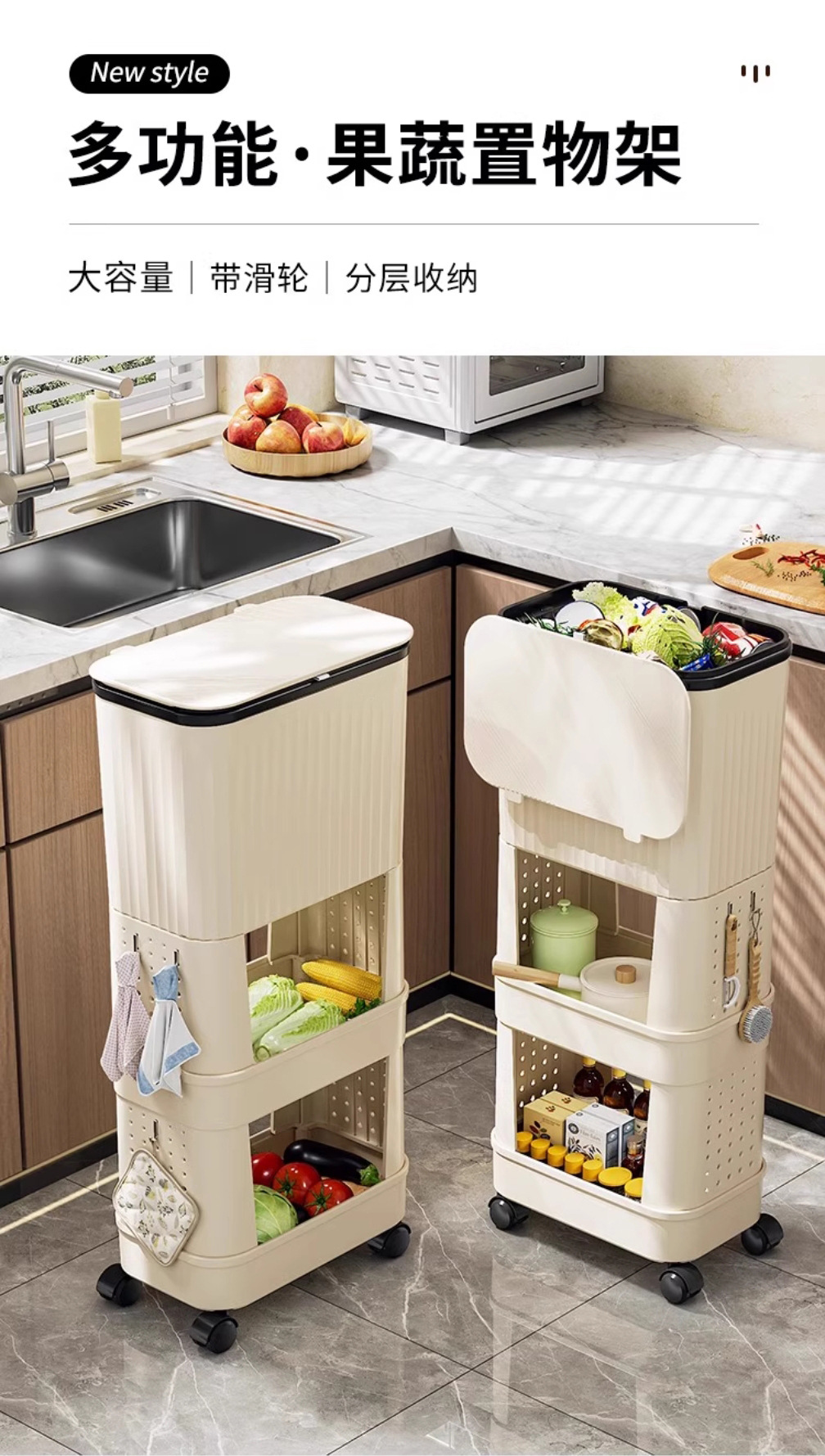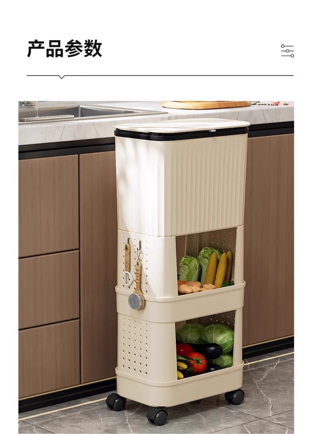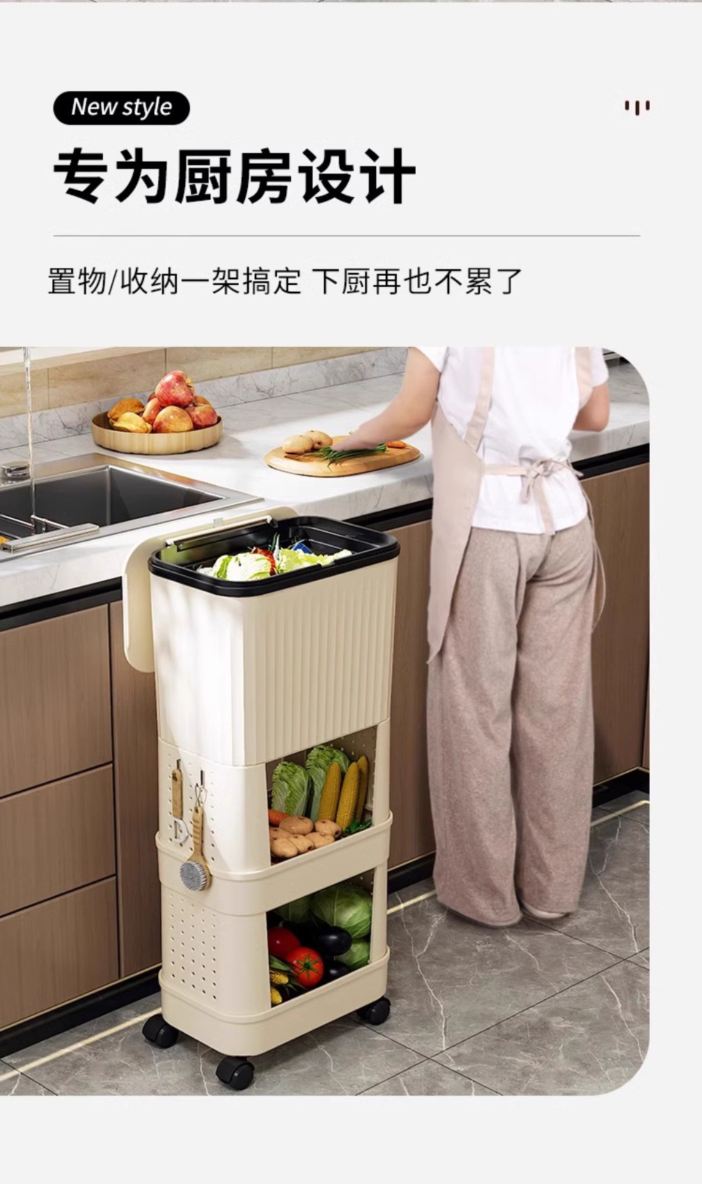 【厨房神器上线🔥】新款免弯腰垃圾桶🚮+置物架,大容量可移动设计💡窄缝收纳不占地!奶油白&典雅灰任你选🎨,滑盖轻松开合,居家必备💯!免弯腰功能架