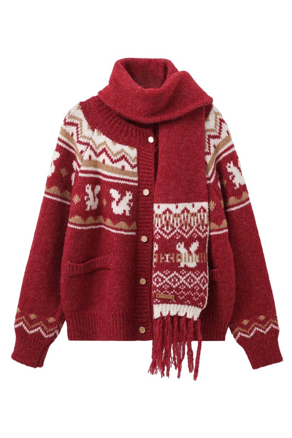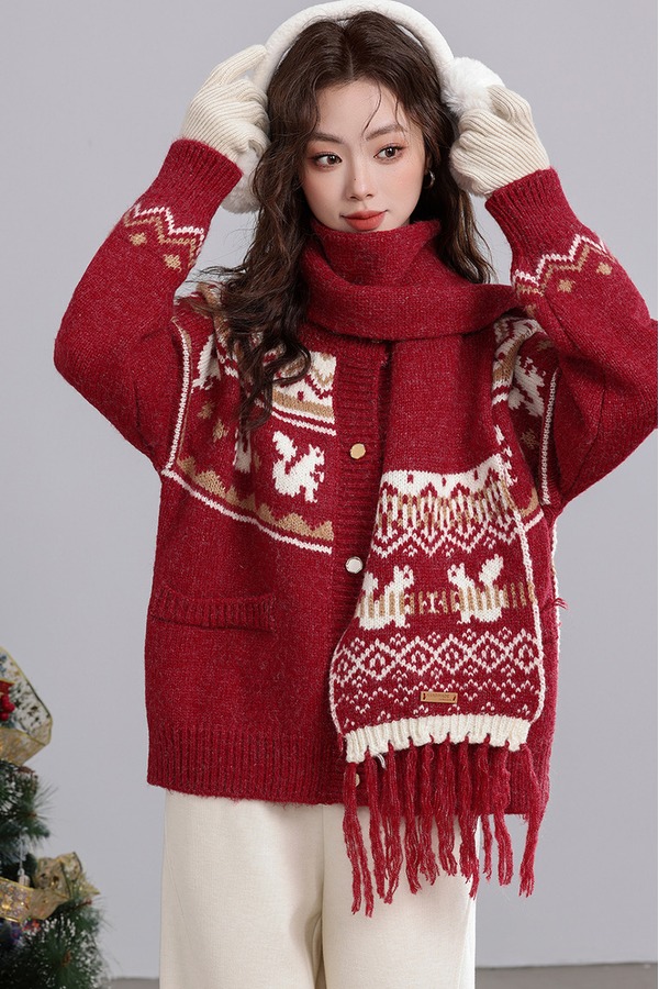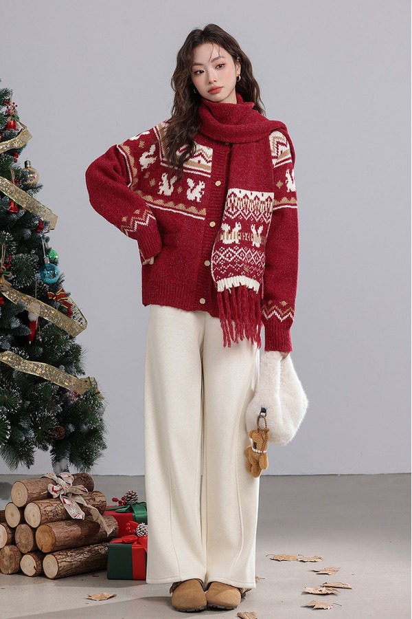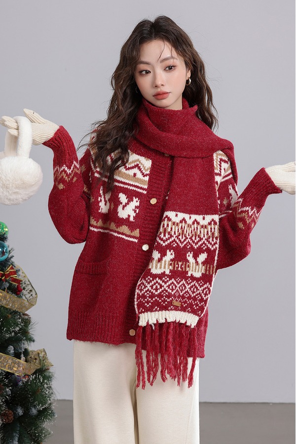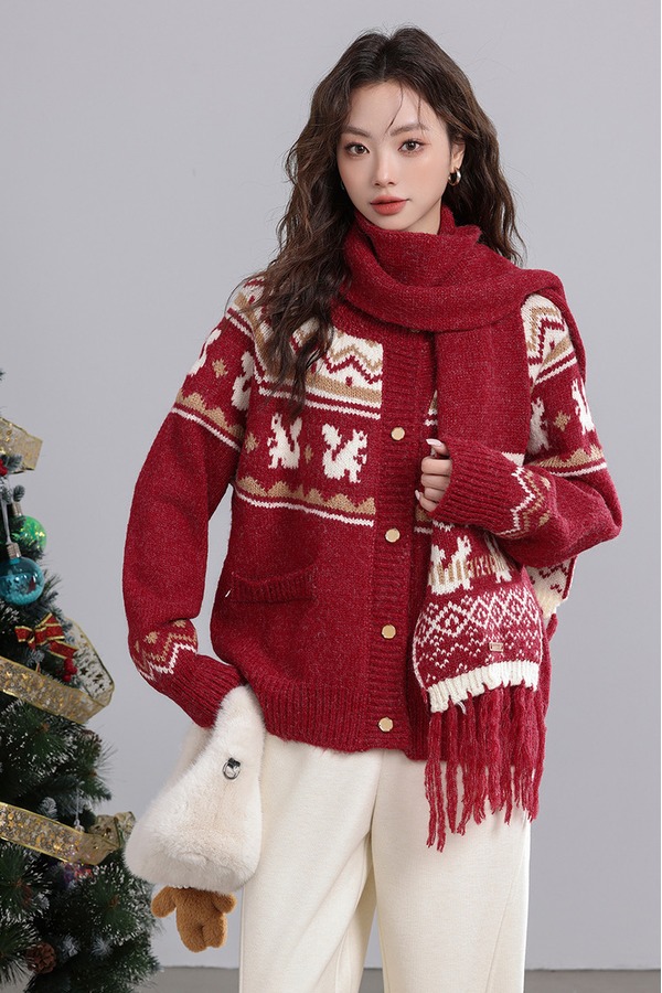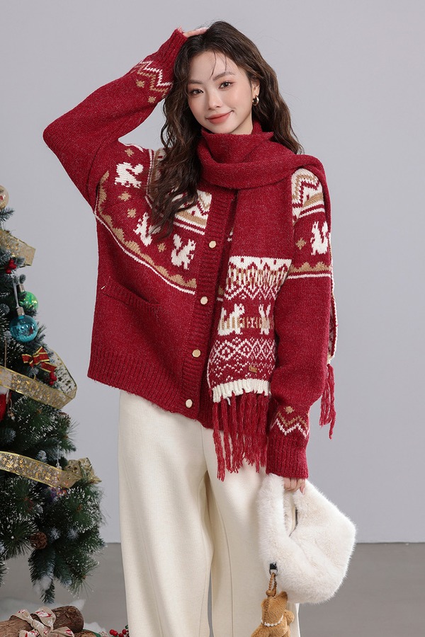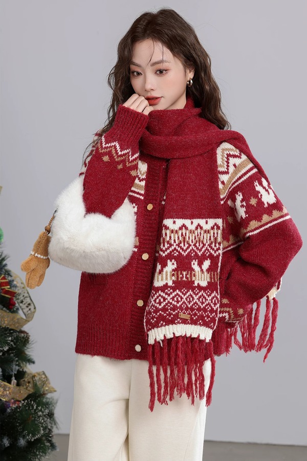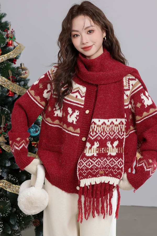ANSUABEL 圣诞提花针织围巾开衫外套 21917