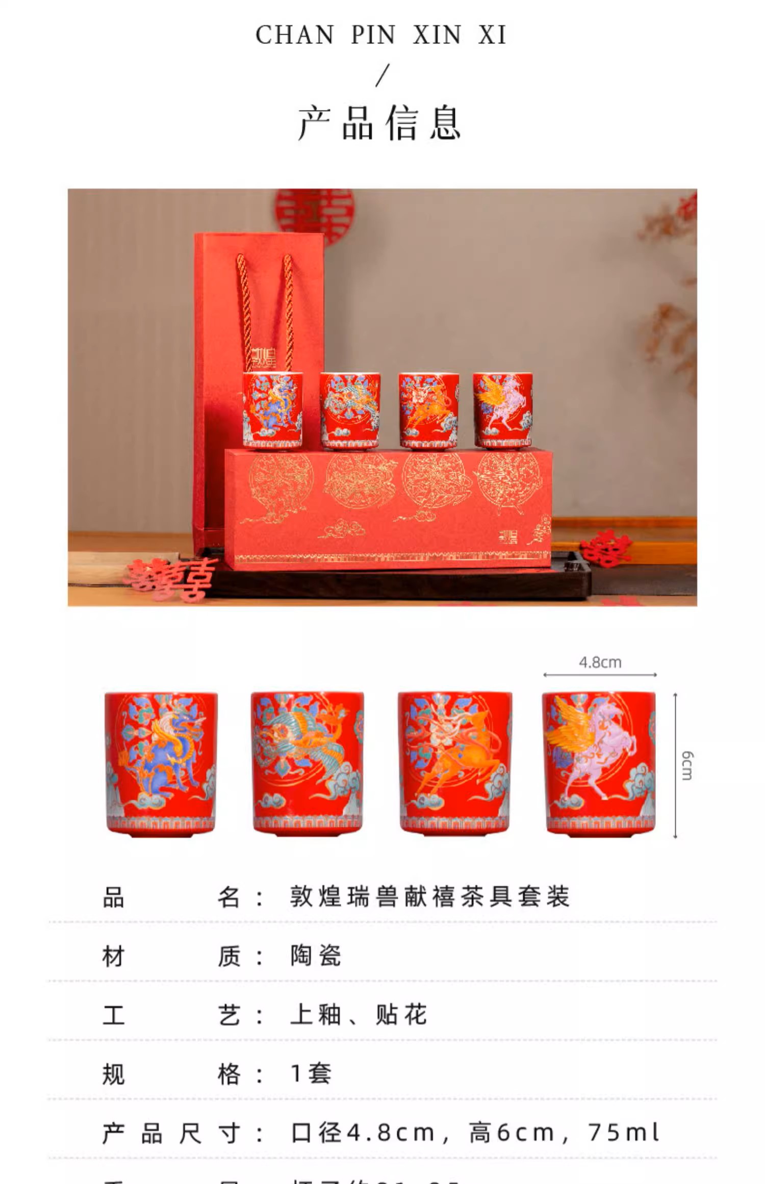 敦煌研究院 瑞兽献禧茶具套装 2024新款结婚敬茶杯套装新婚礼品