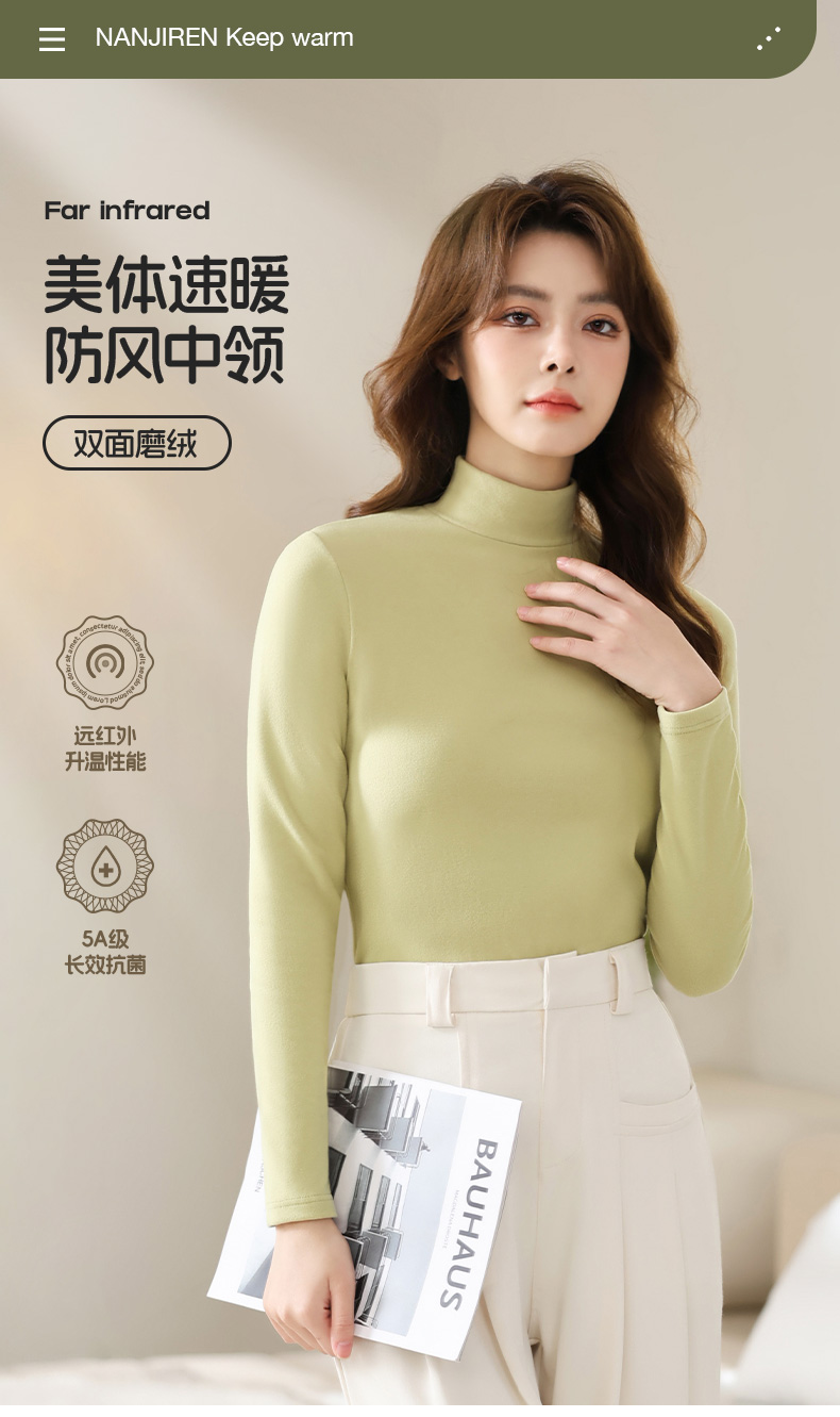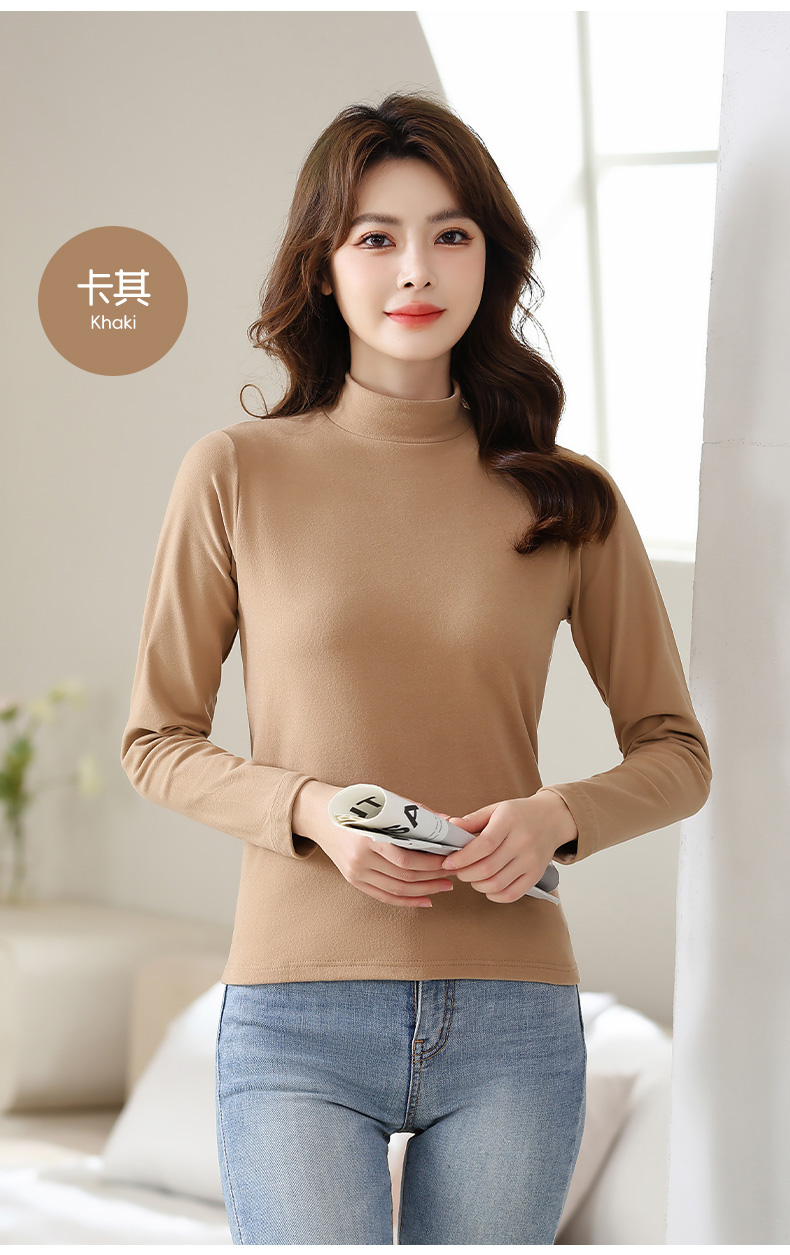CARTELO/卡帝乐鳄鱼微米绒加绒长袖纯色保暖百搭打底衫