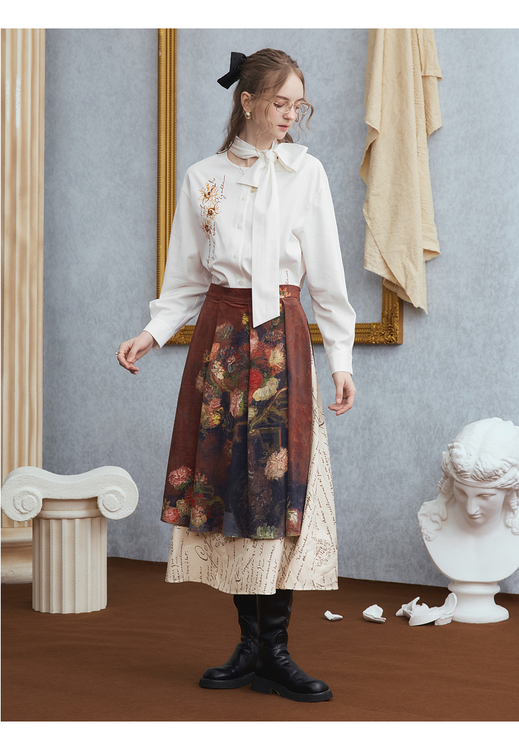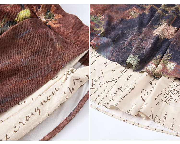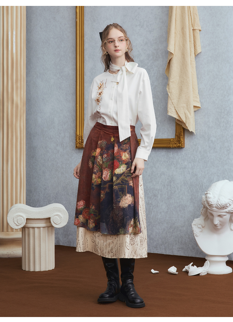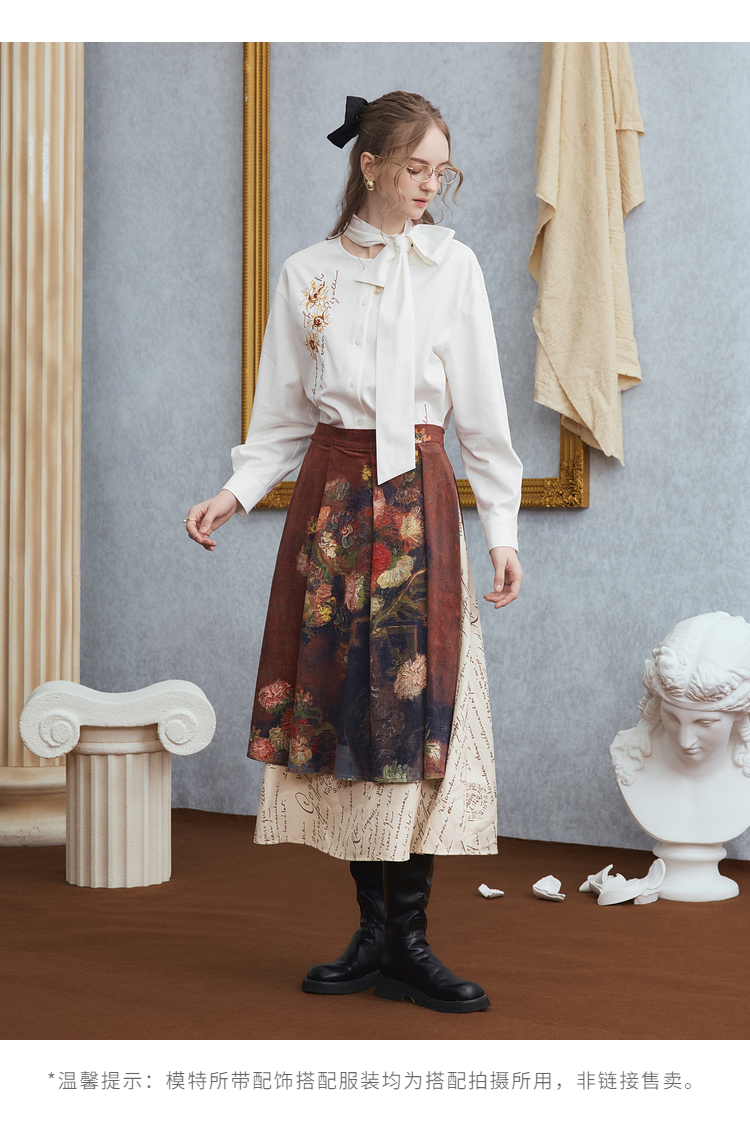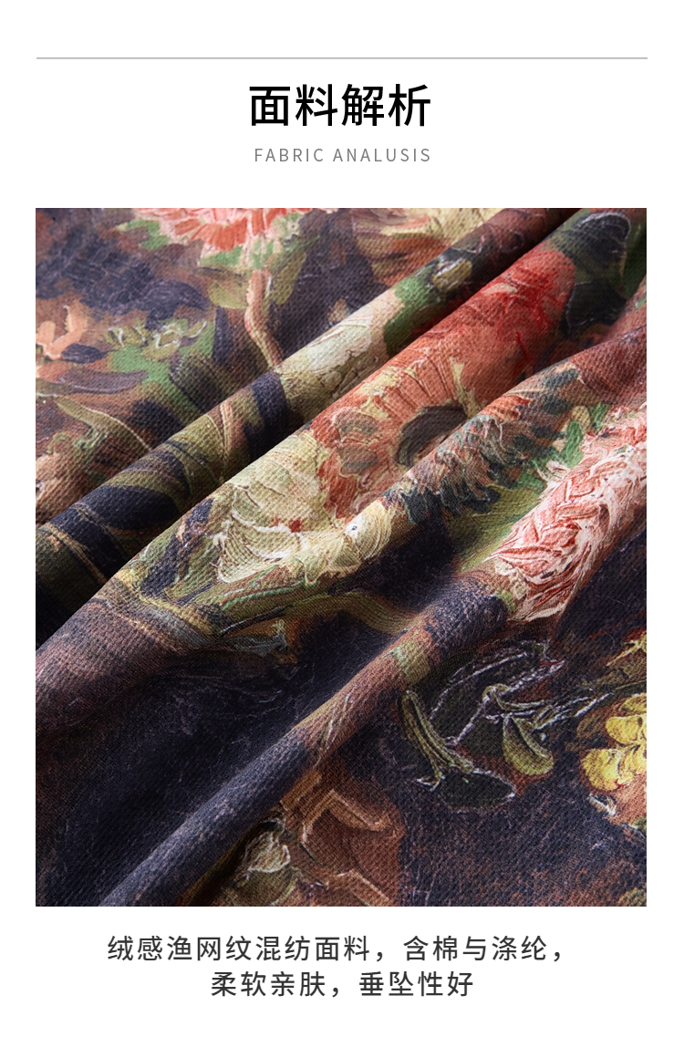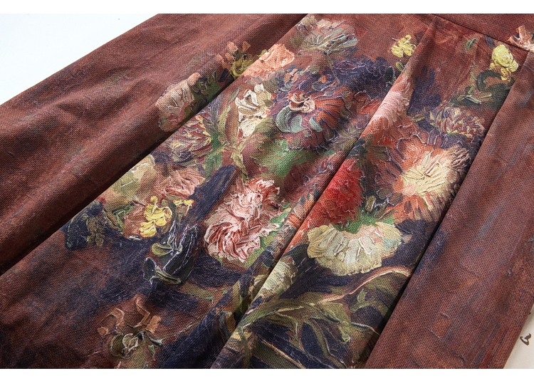 两三事梵高文艺 繁花游弋 2025冬季新款印花双层裙摆半身裙