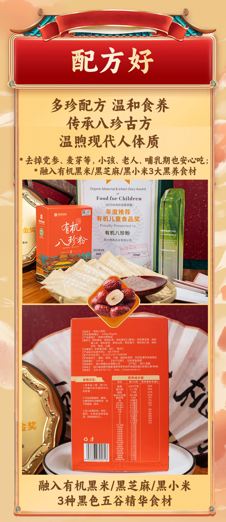 有机八珍粉 冲调谷物粉早餐粉独立小包装240g(30g*8袋)【京东快递送货上门】