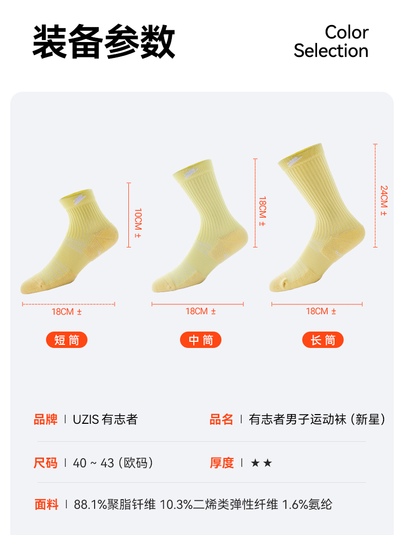 【袜包】有志者UZIS 专业运动袜男美式高帮夏季跑步吸汗长筒毛巾底袜[新星