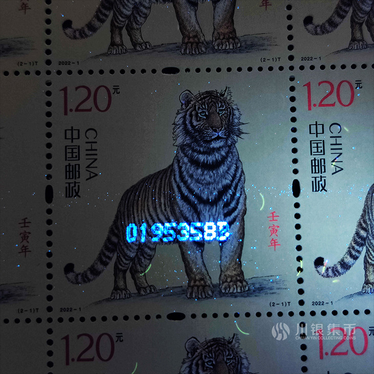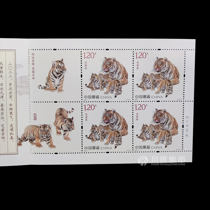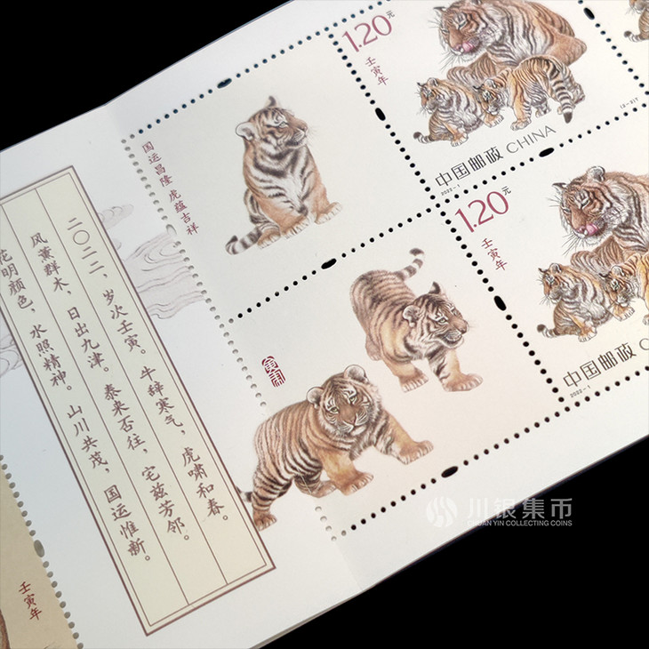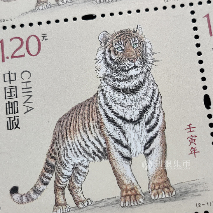 2022虎年邮票由中国邮政发行,一套两枚,每枚面值1.2元。