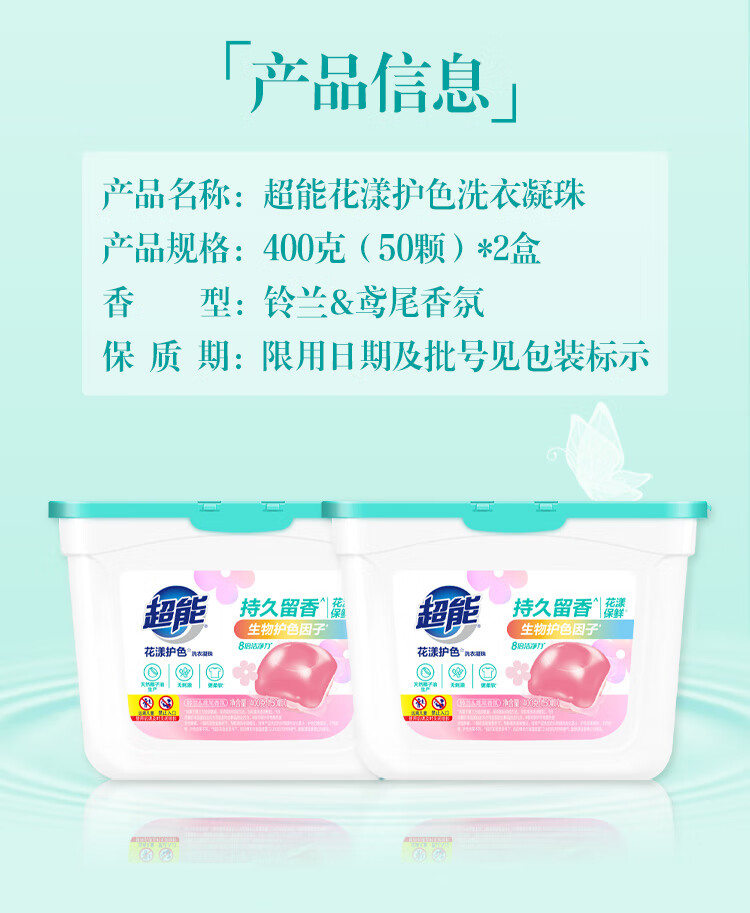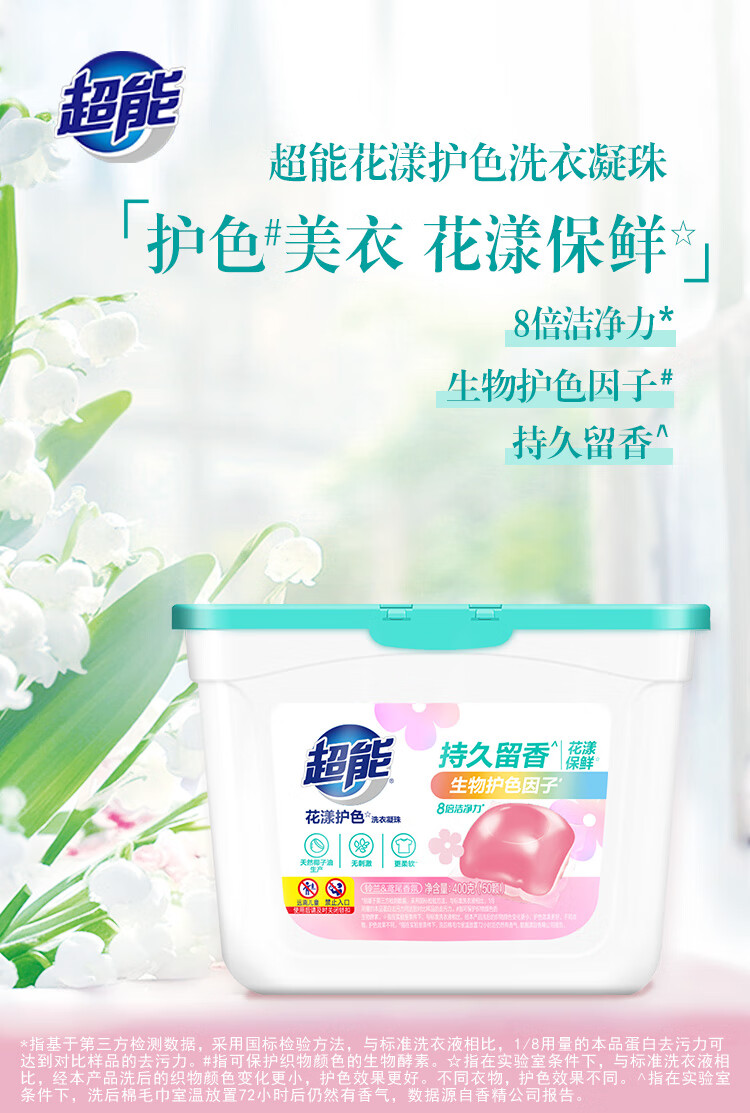 超能 洗衣凝珠 100颗(两盒装) 欧洲进口防串色黑科技 清新自然香 100012242858