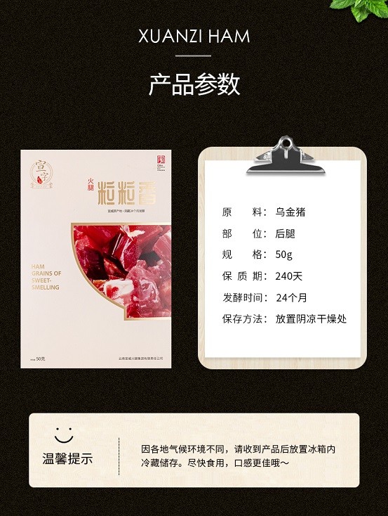 宣字牌宣威火腿粒 云南黑猪后腿肉腊肉切丁 肥瘦相宜 火腿炒饭焖饭煲仔饭