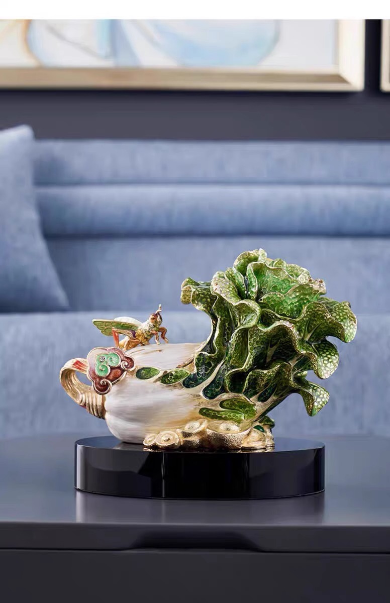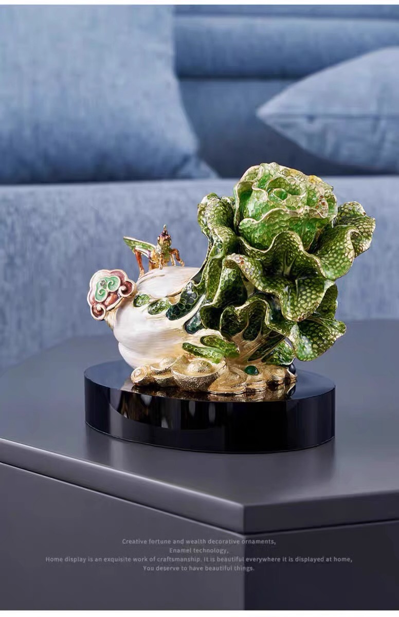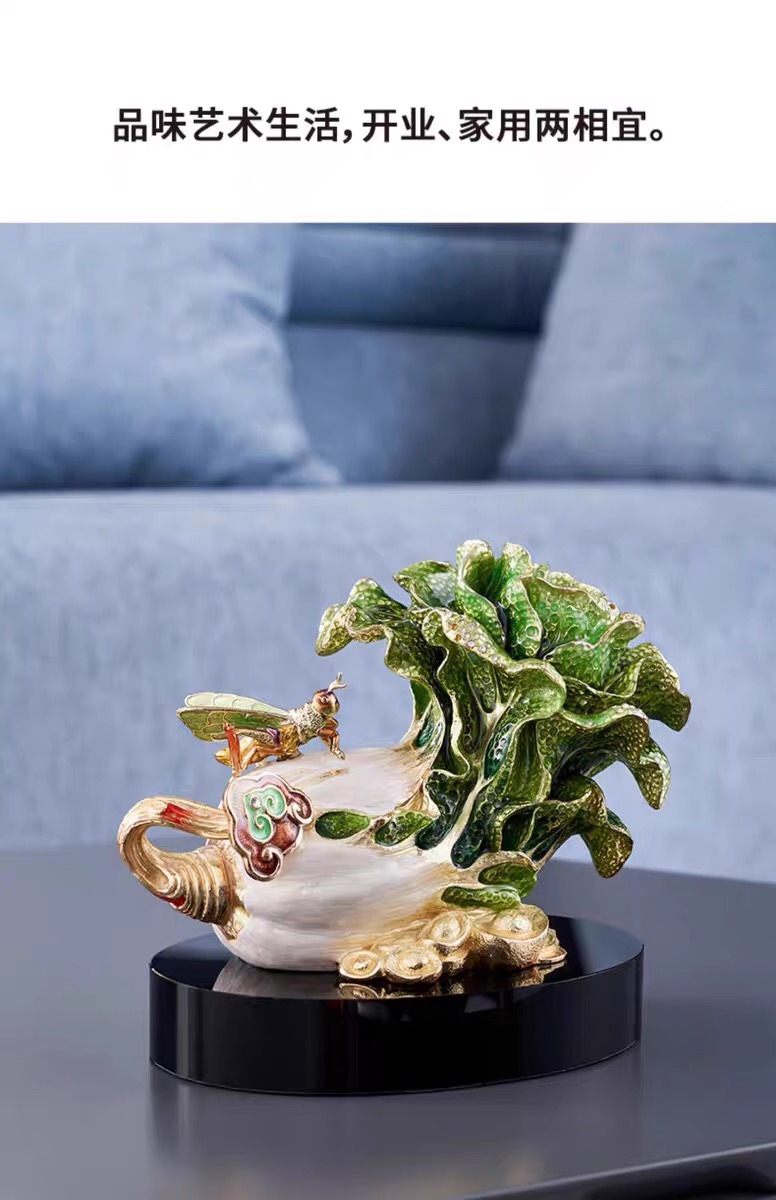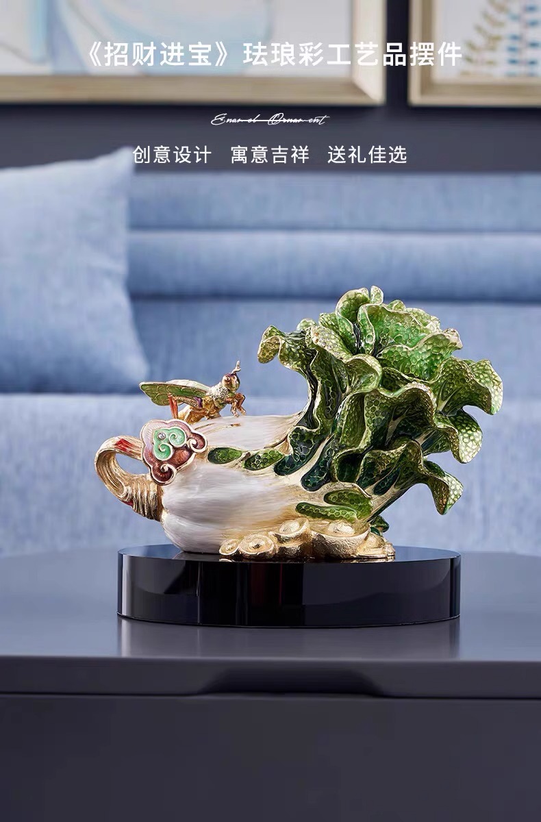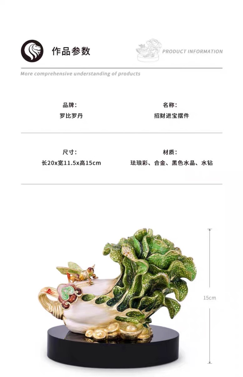 罗比罗丹招财进宝白菜摆件珐琅彩工艺玄关博古架家居饰品礼品招财进宝珐琅摆件