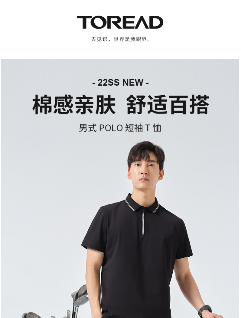 探路者速干T恤 22春夏户外男士吸湿透气排汗短袖 休闲百搭翻领T恤TAJK81607