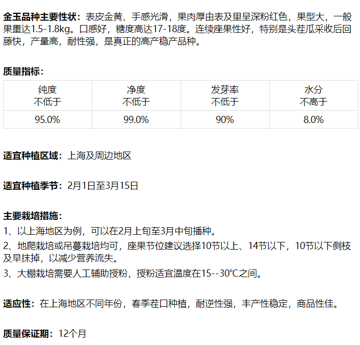 [专业种子] “金玉”光皮甜瓜种子