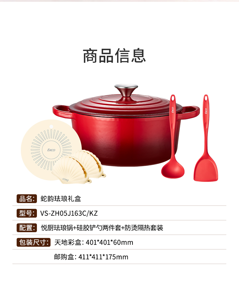 【自营】 康宁 悦厨珐琅锅 聚热保温 一锅多用 煎炒炖炸烤 4L/礼盒装