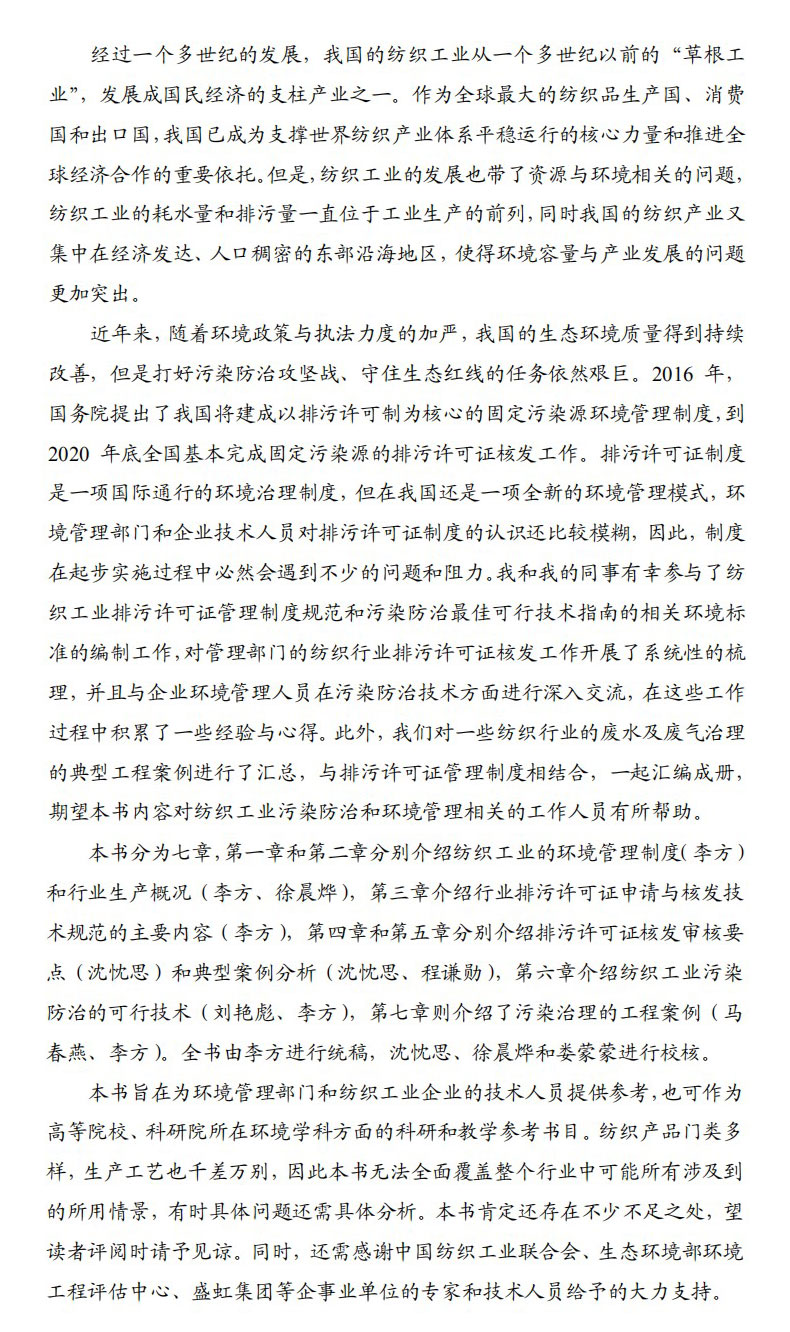 纺织工业排污许可证管理与污染防治技术 中国环境出版集团 李方