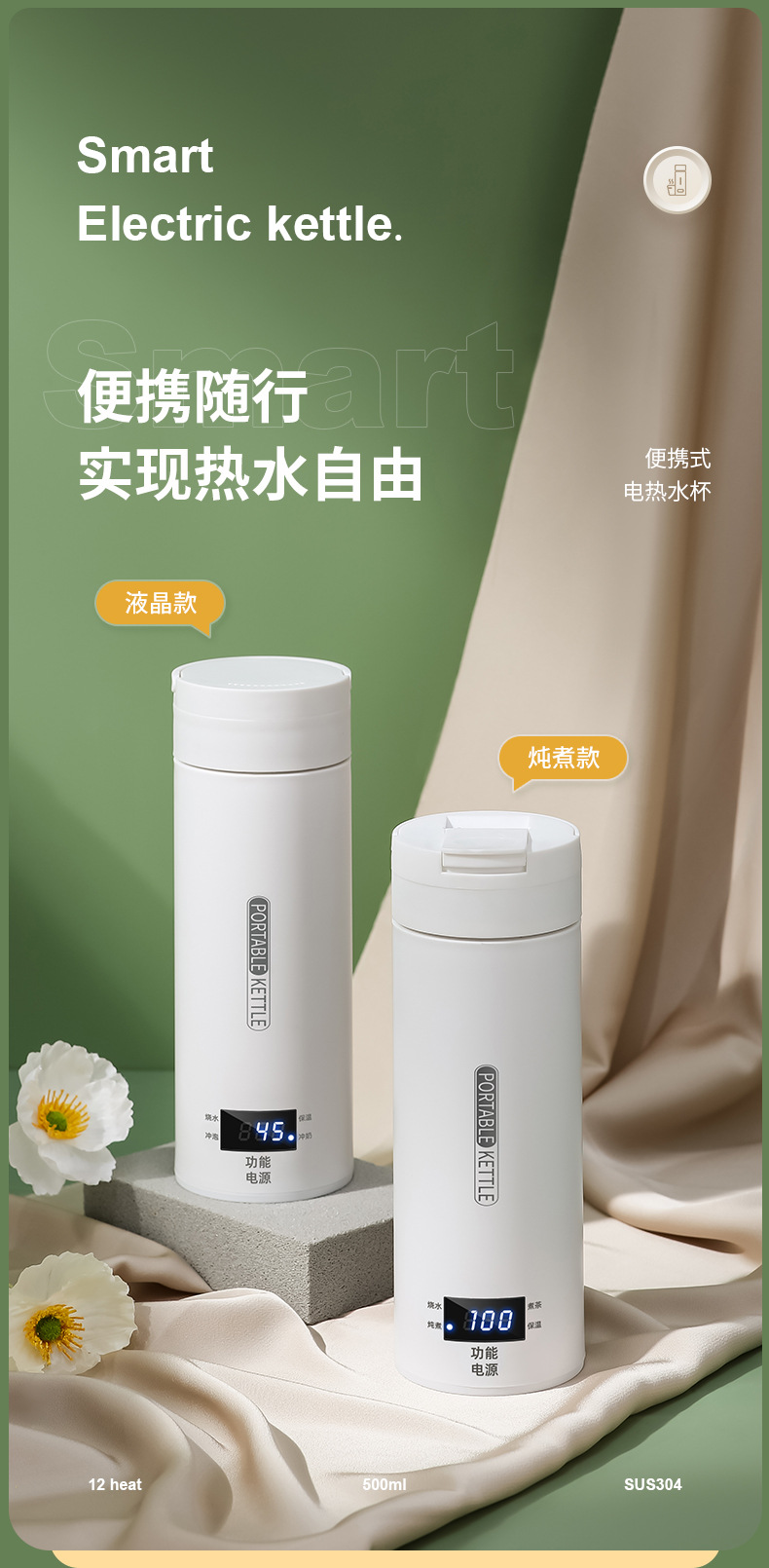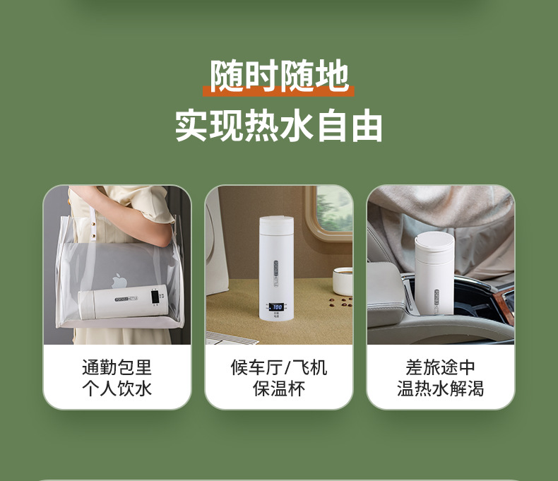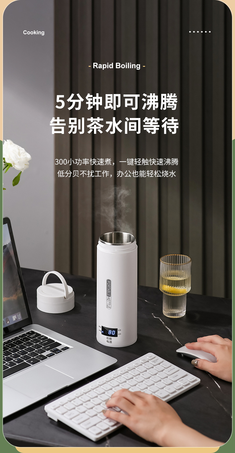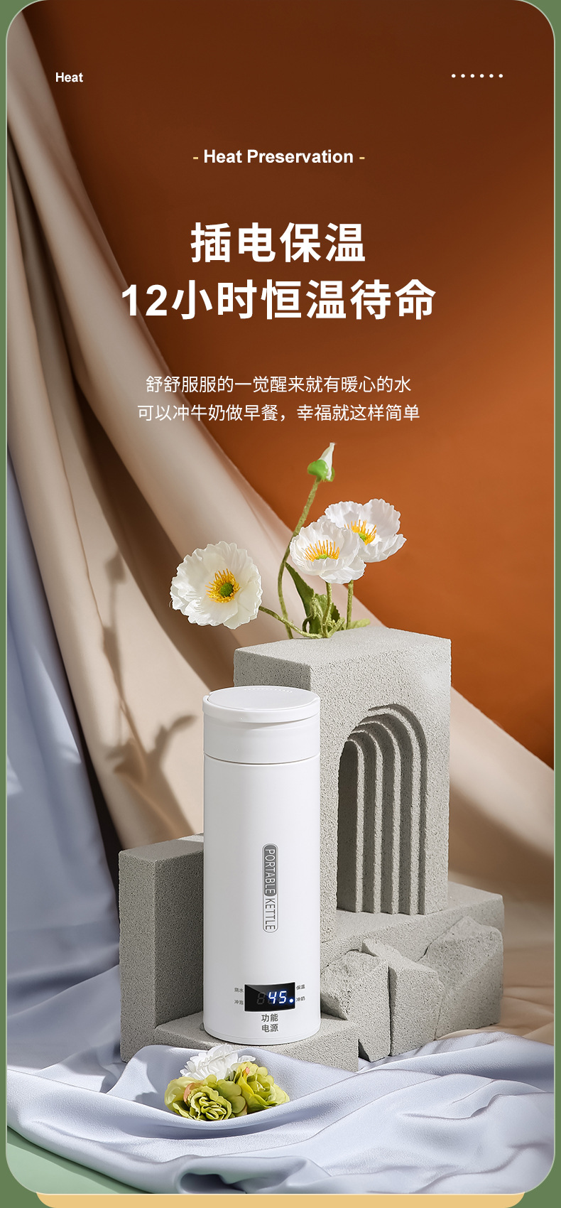 【智能!加热便携式烧水壶】 保温一体恒温杯 办公室不锈钢保温杯 家用电热水壶