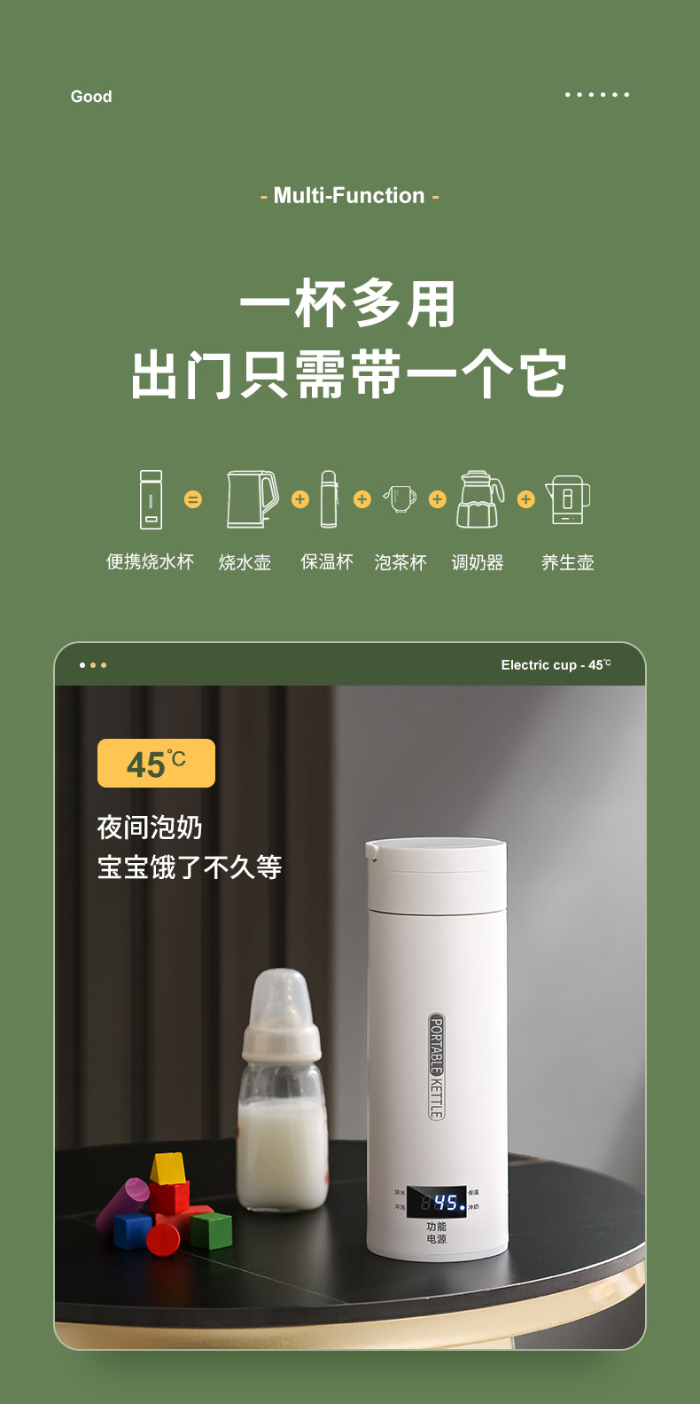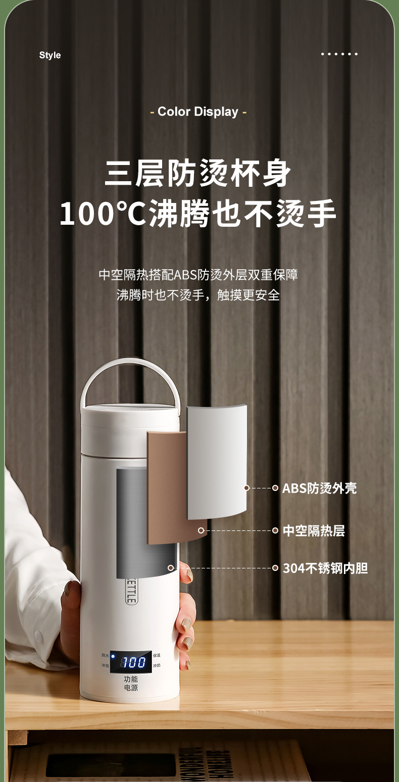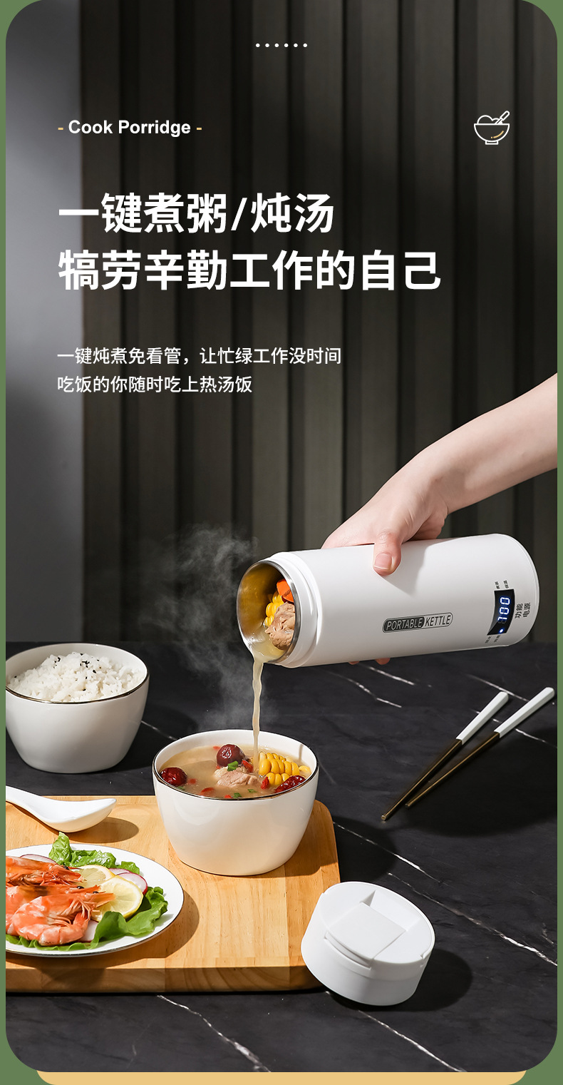 【智能!加热便携式烧水壶】 保温一体恒温杯 办公室不锈钢保温杯 家用电热水壶