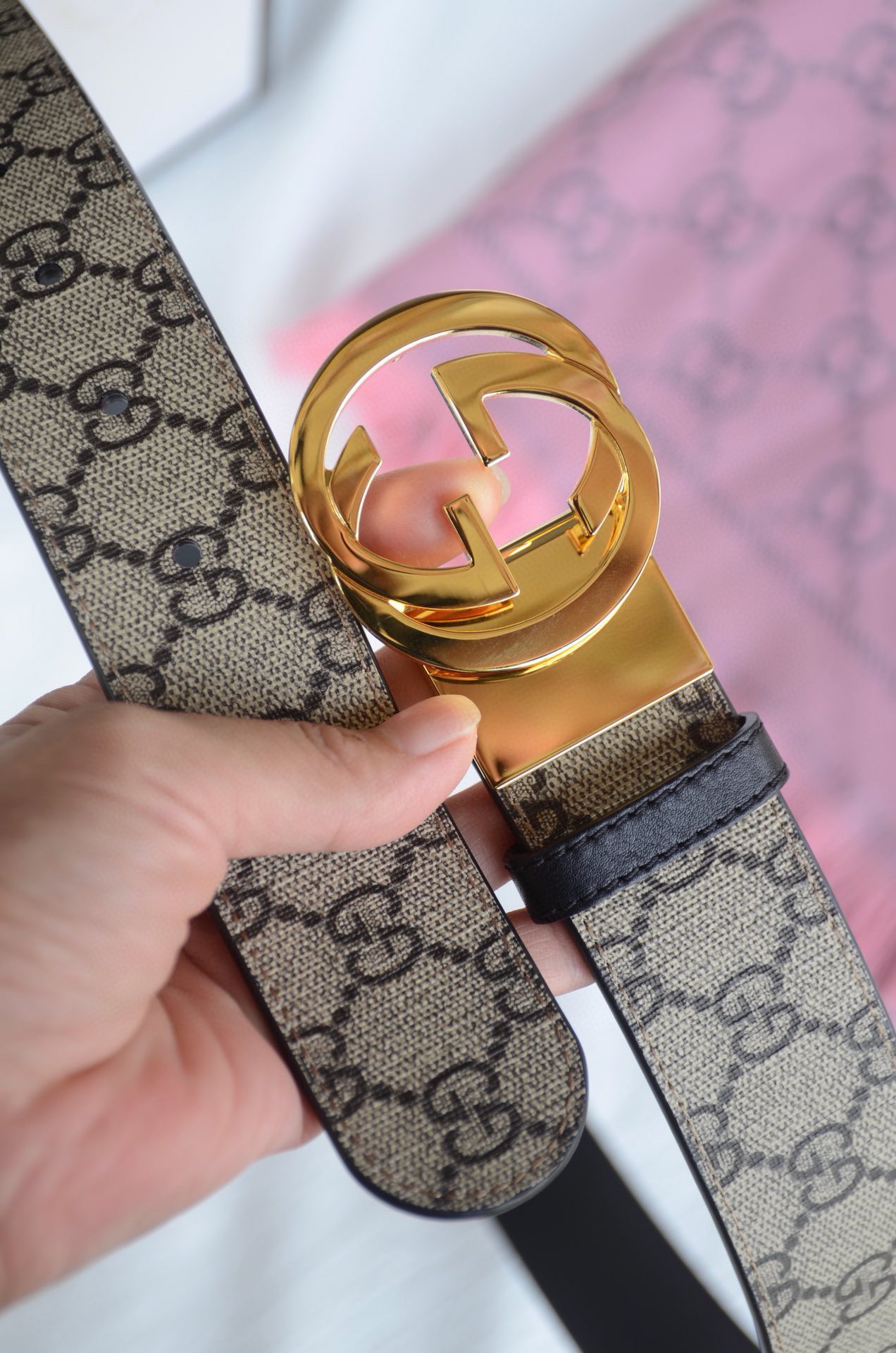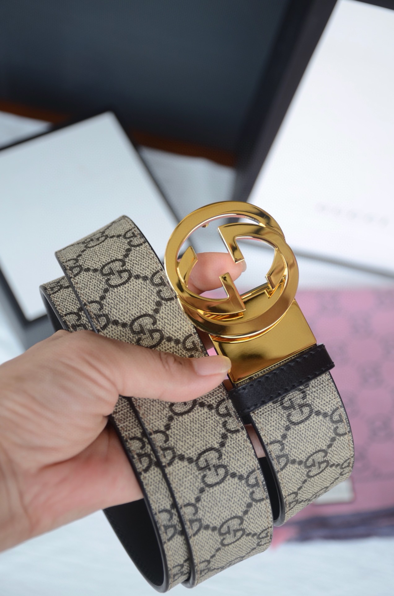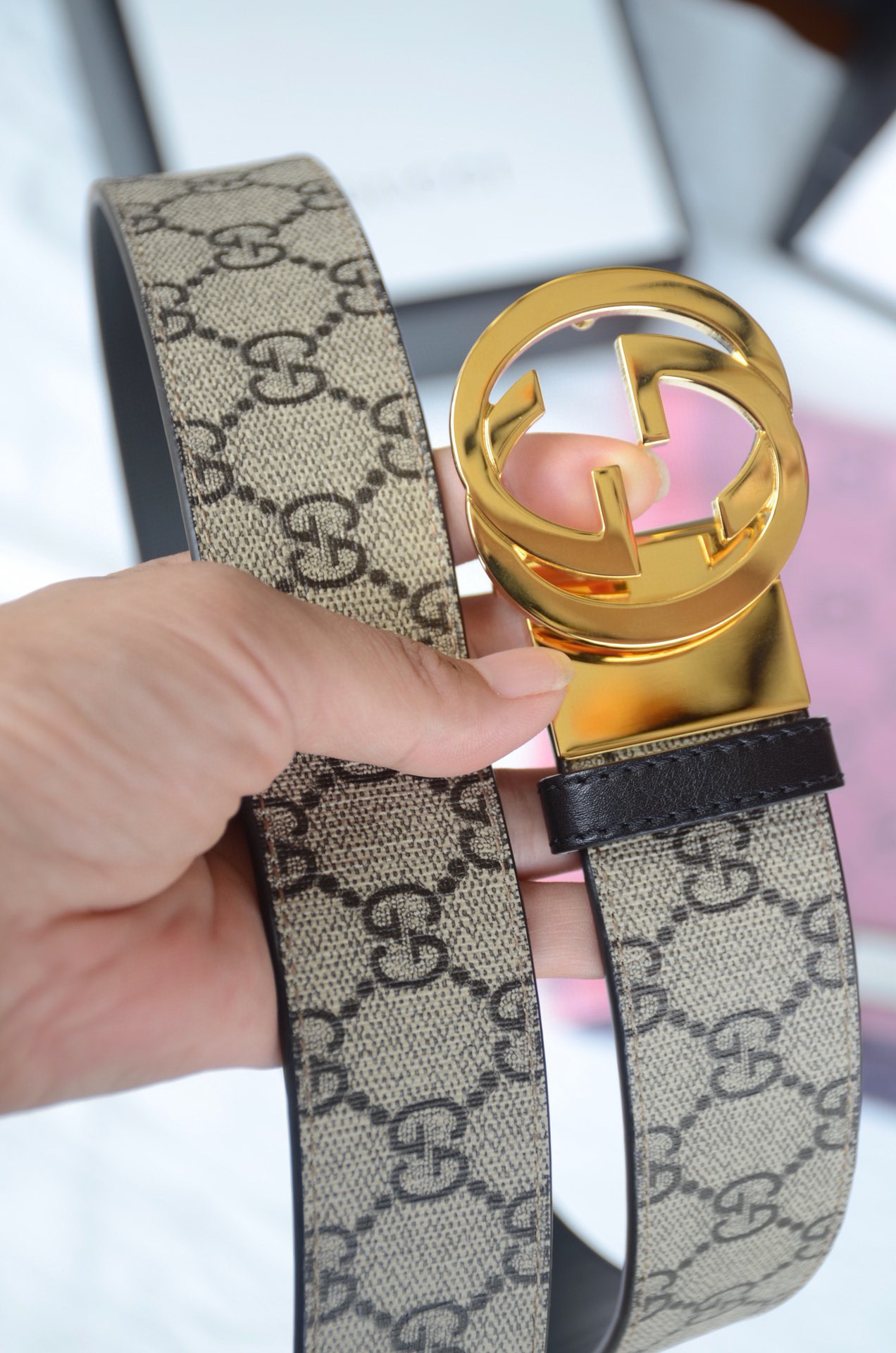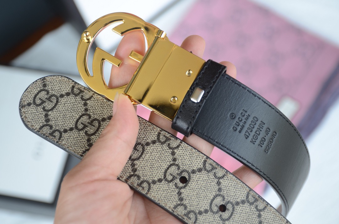 GG老花金扣双面可用男士腰带