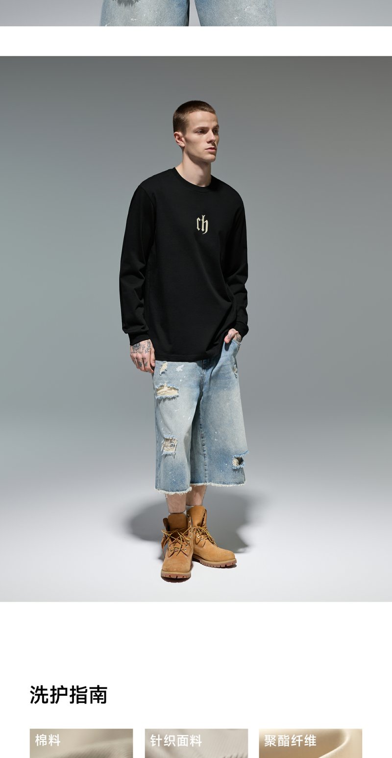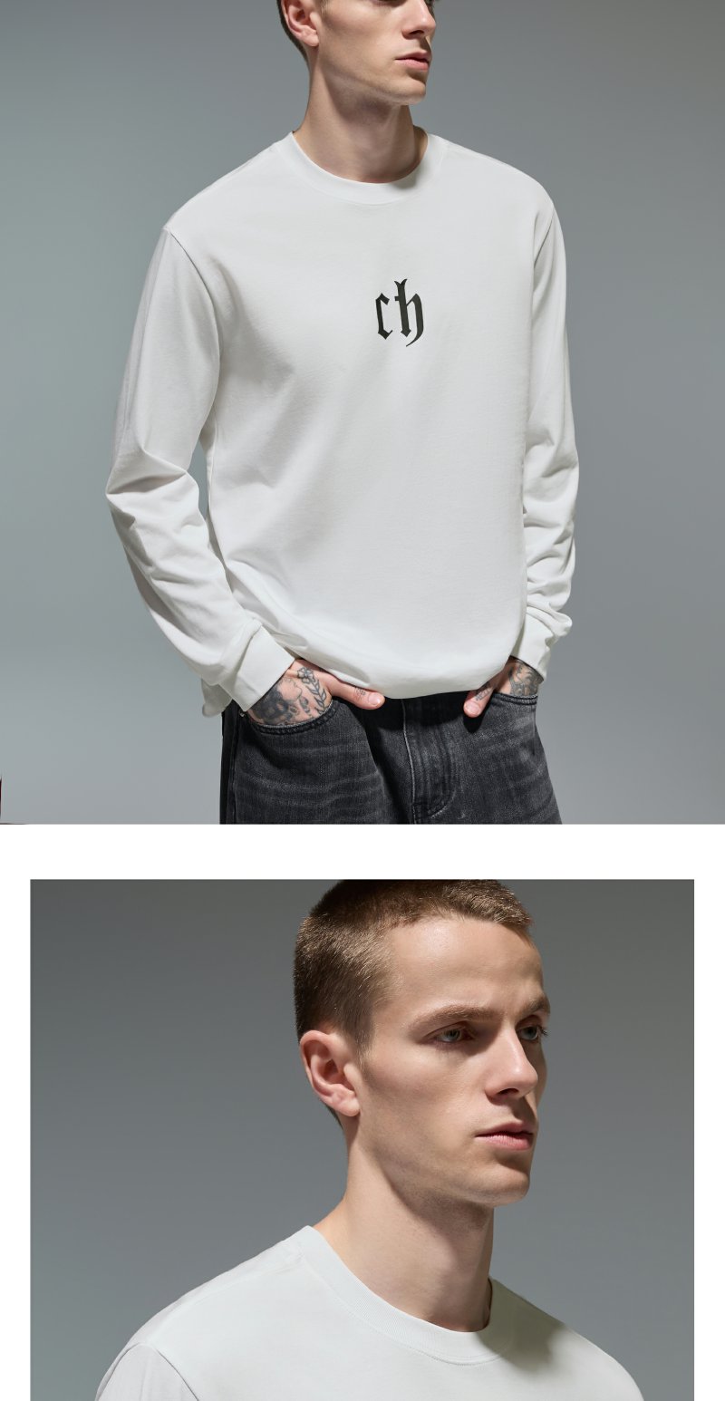 CHINISM赤尘 重磅长袖T恤男秋季宽松简约美式纯棉圆领休闲上衣