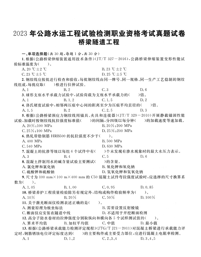 书名:2025公路水运工程检测技术人员 真题详解及模拟试卷 桥梁隧道工程