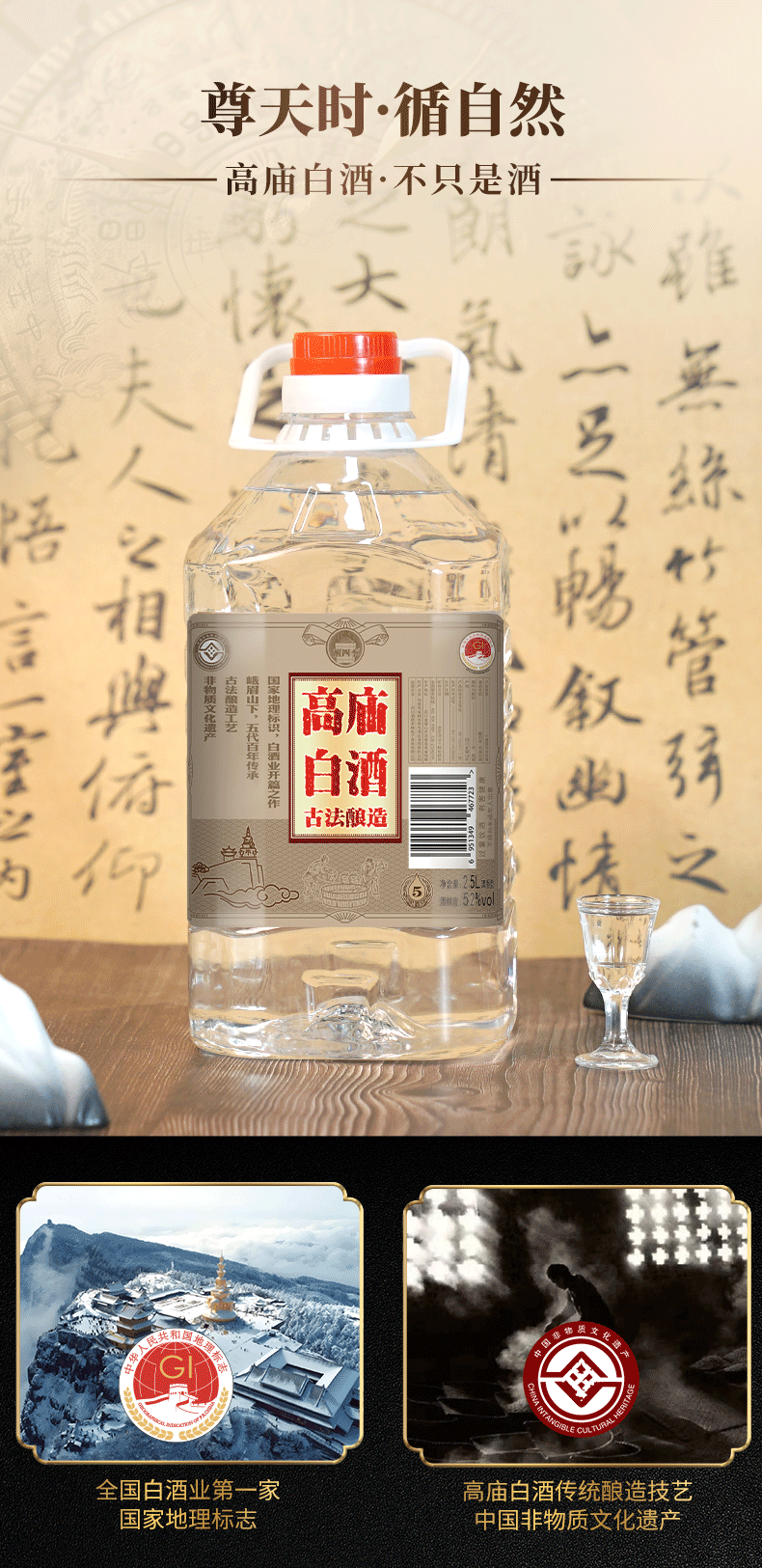 醒四季高庙白酒52度2.5L*1桶