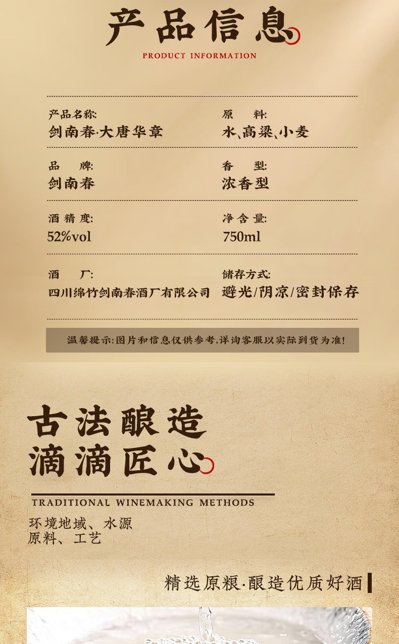 剑南春 大唐华章浓香型白酒 52度 750mL 单瓶装(整箱为6瓶)