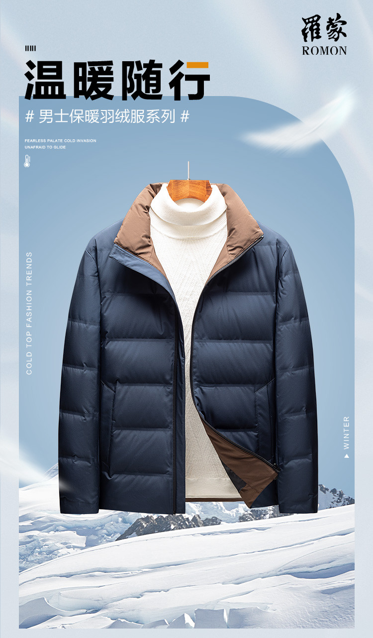 【90白鸭绒】罗蒙撞色羽绒服男短款冬季保暖面包服男士羽绒服外套男