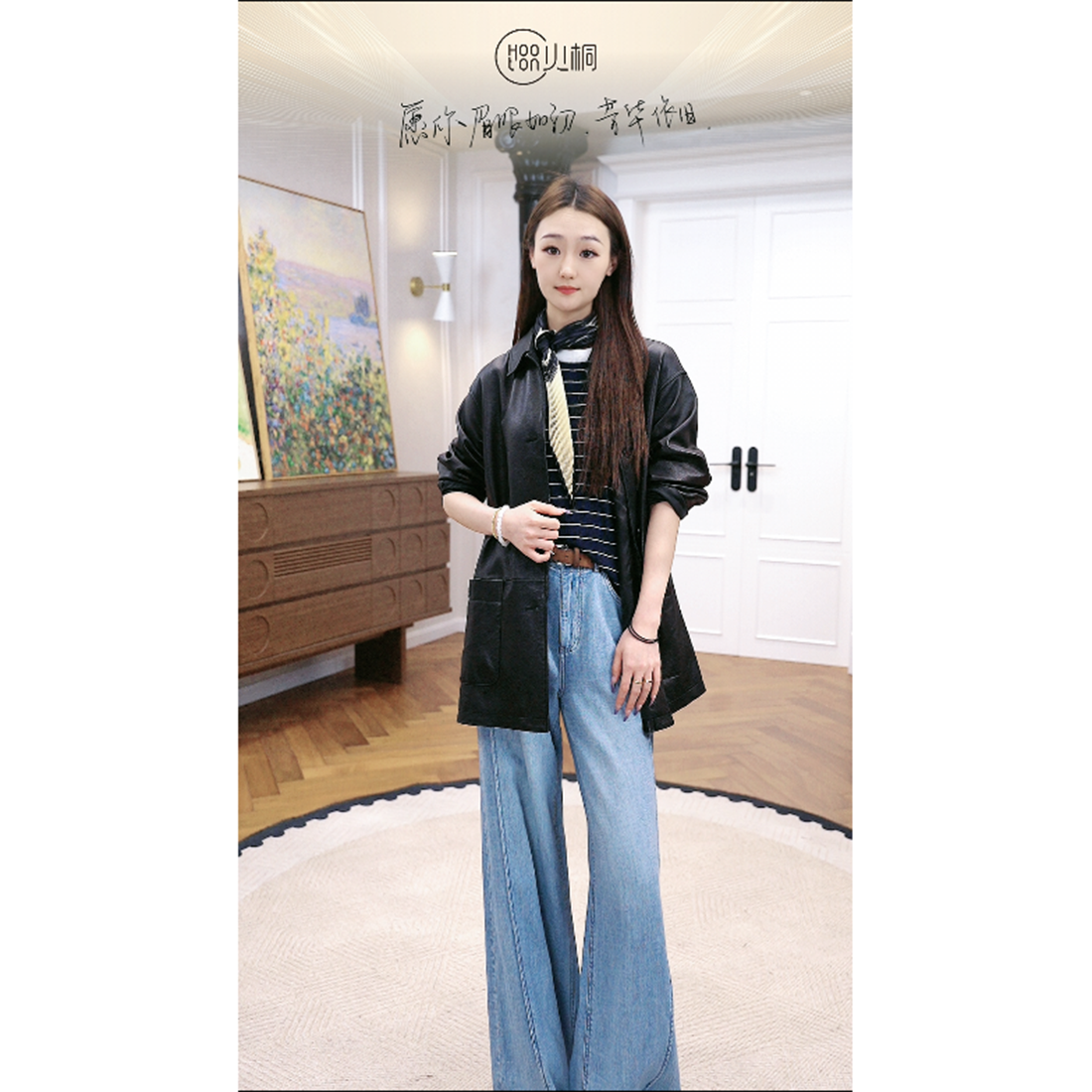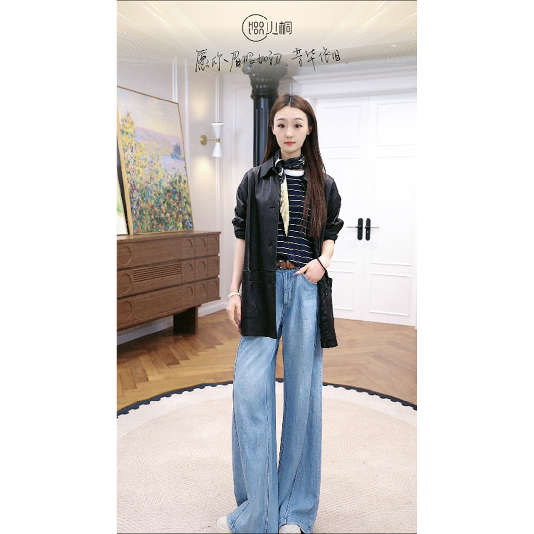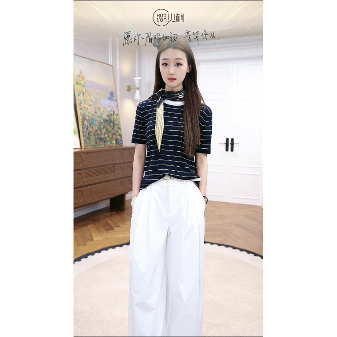 火桐hooton 经典永恒 莱赛尔桑蚕丝混纺条纹套头衫
