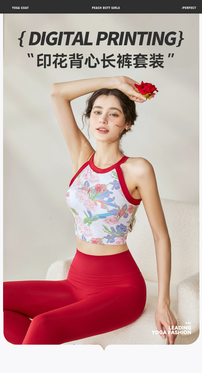 瑜伽套装女夏季新款印花一体式背心运动户外高腰瑜伽裤lulu两件套