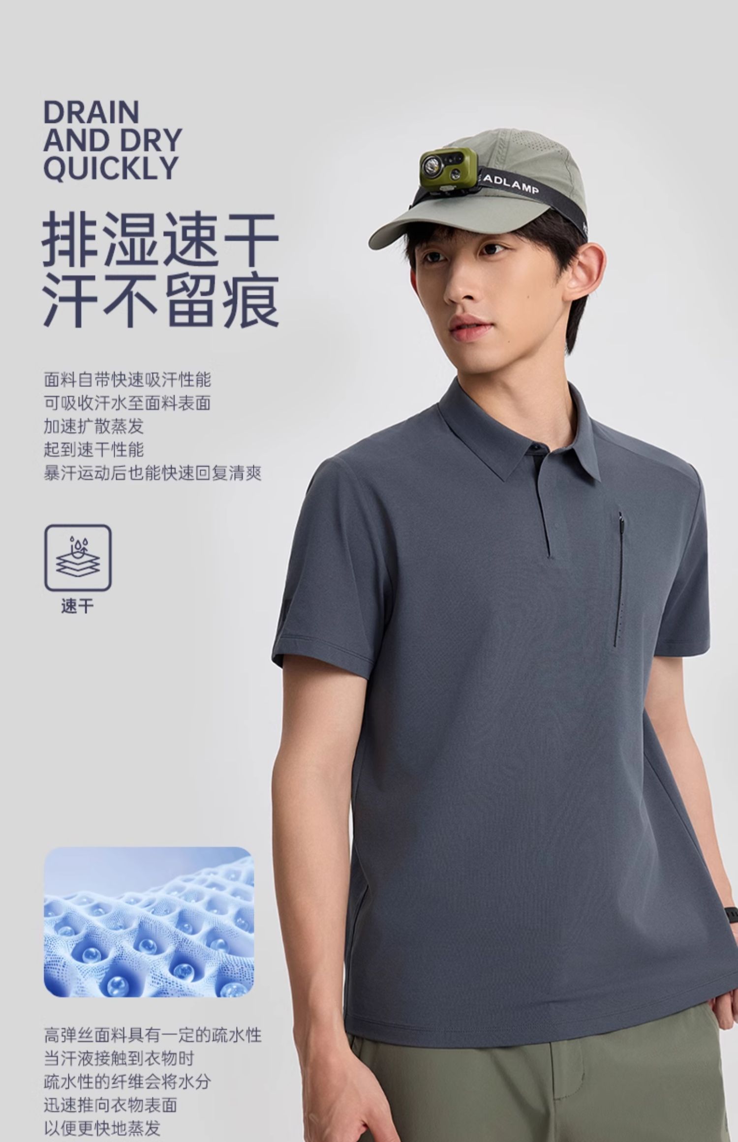 TECTOP/探拓户外男士运动速干短袖T恤夏季冰丝凉感商务休闲polo衫