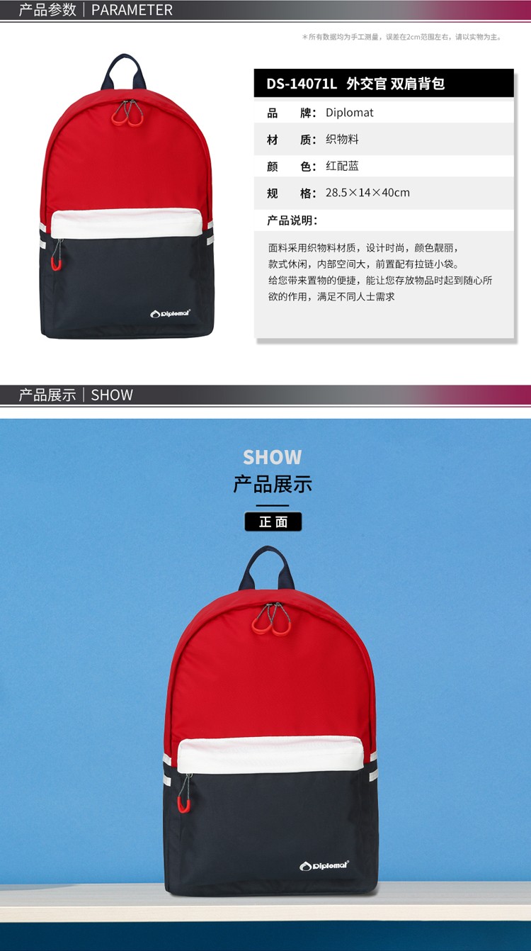 Diplomat外交官 双肩背包DS-14071L蓝配红