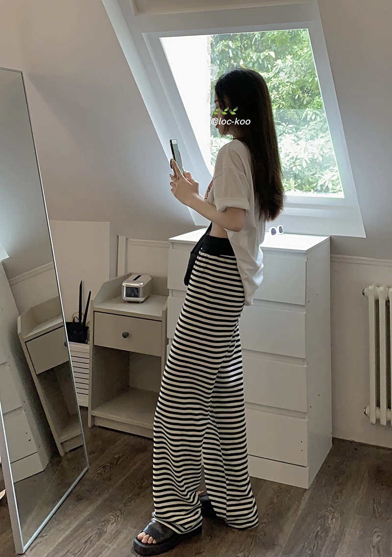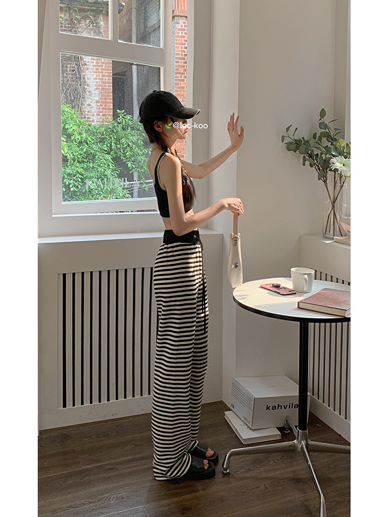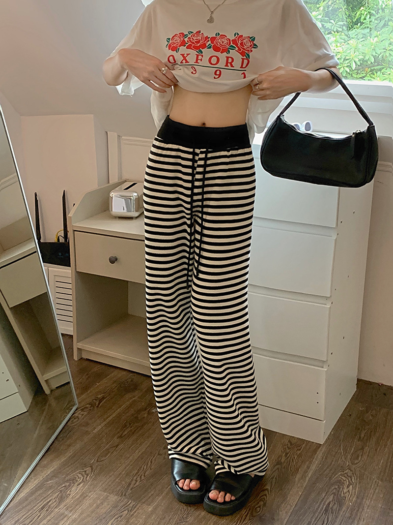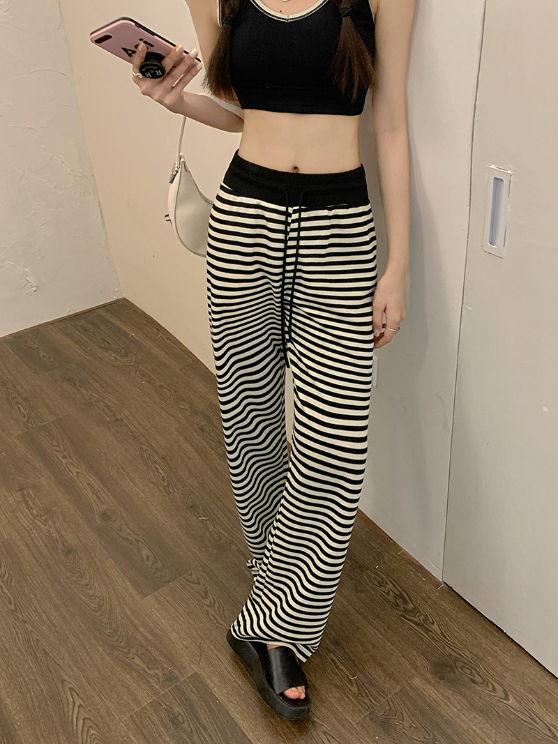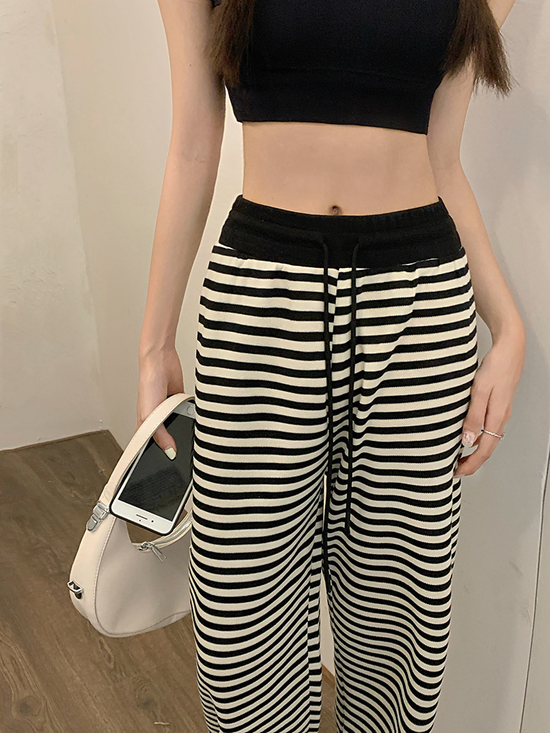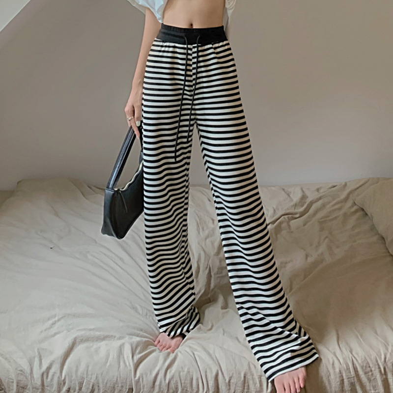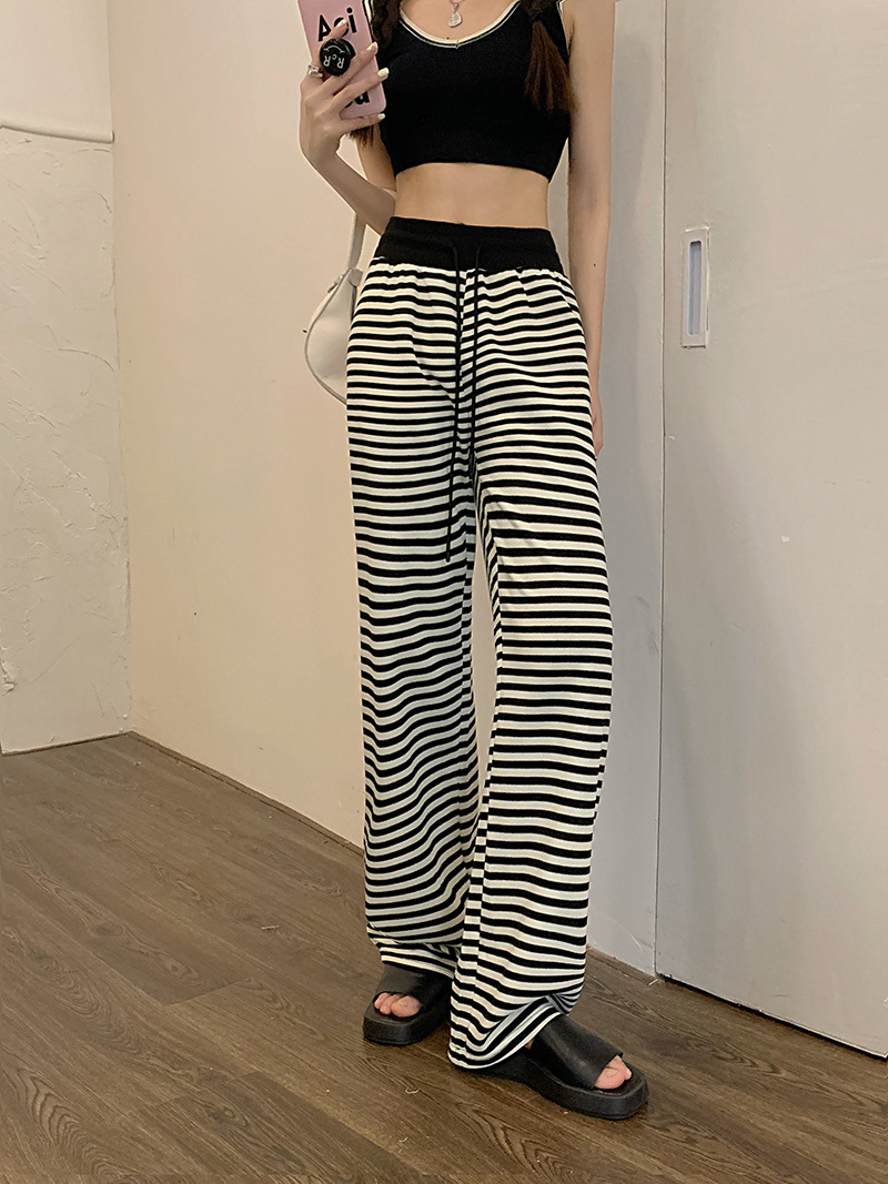 【个性十足!百搭显身材】新款韩版黑白条纹裤,夏季必备。长款高腰设计,修饰身材;九分阔腿裤型,舒适透气。简约百搭,自带时尚感。气质穿搭,彰显自信魅力!