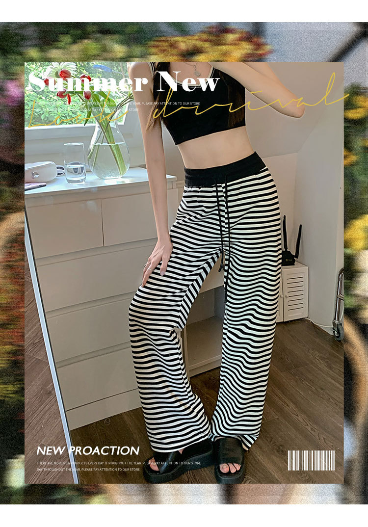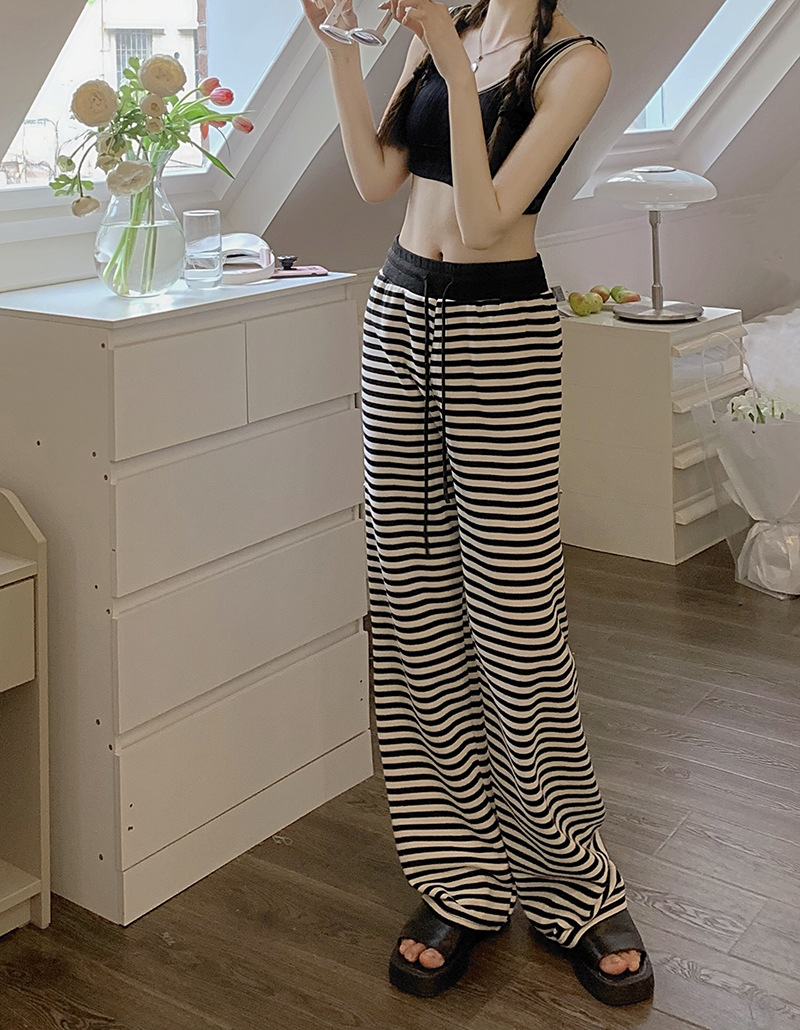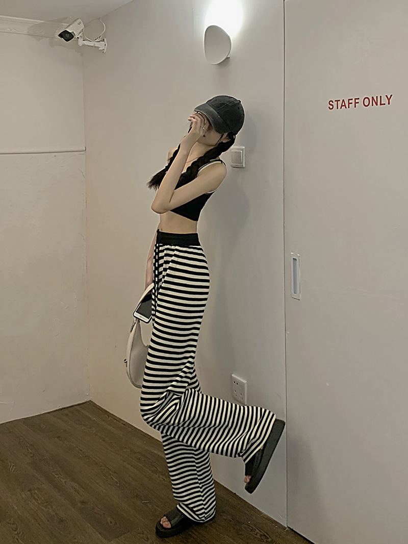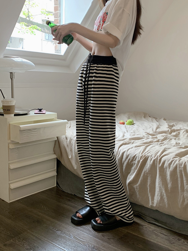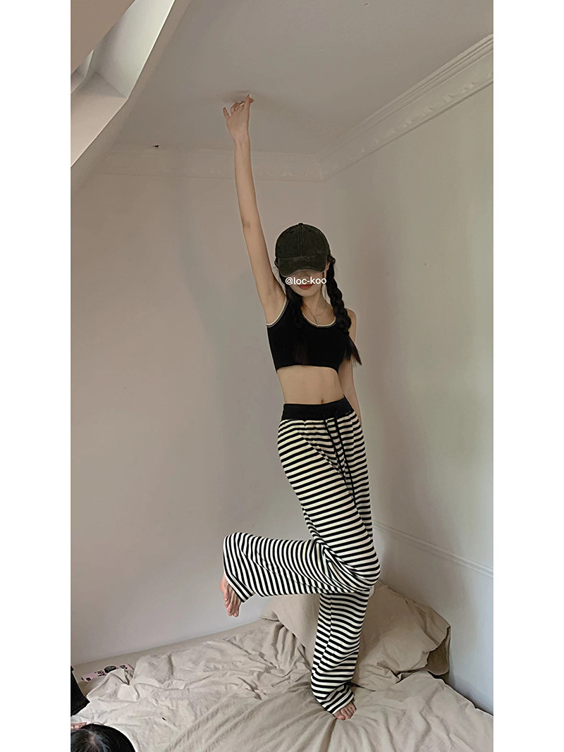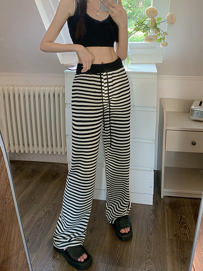 【个性十足!百搭显身材】新款韩版黑白条纹裤,夏季必备。长款高腰设计,修饰身材;九分阔腿裤型,舒适透气。简约百搭,自带时尚感。气质穿搭,彰显自信魅力!