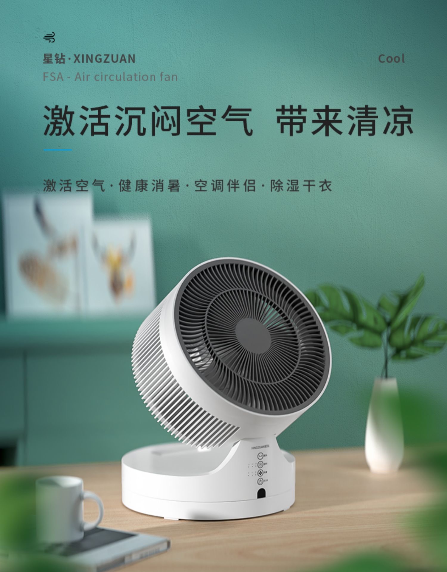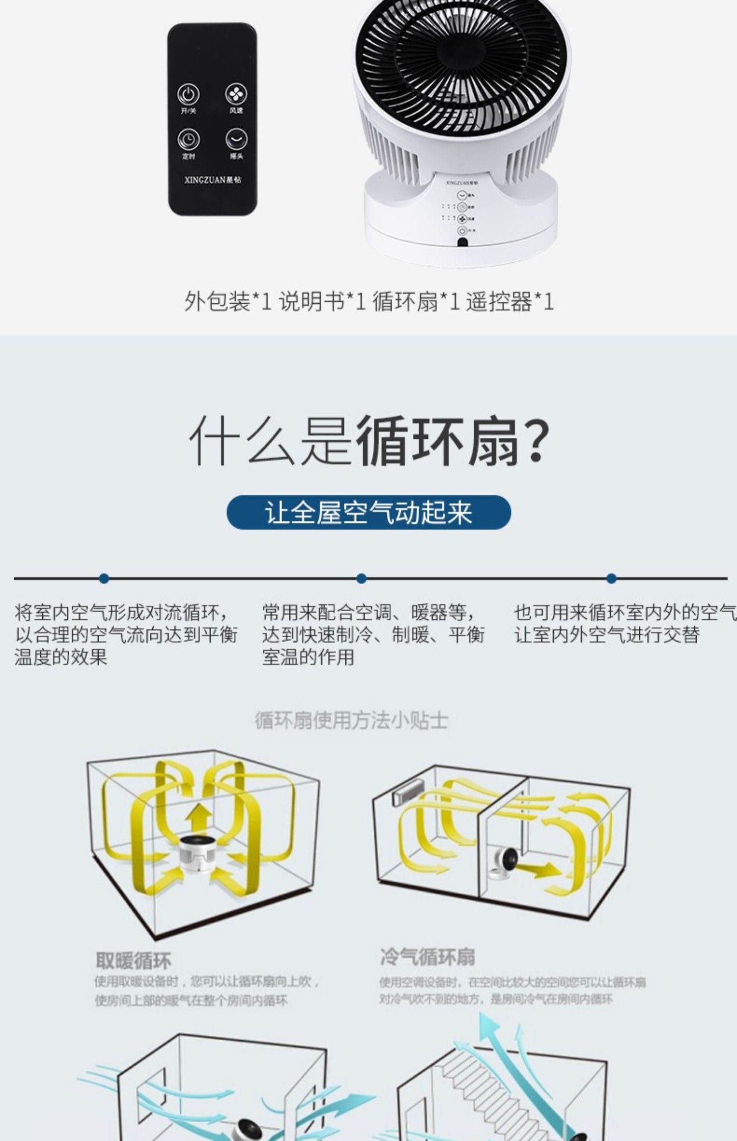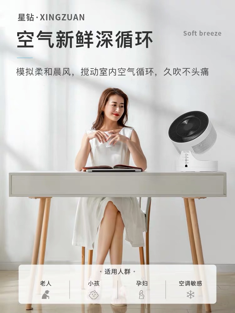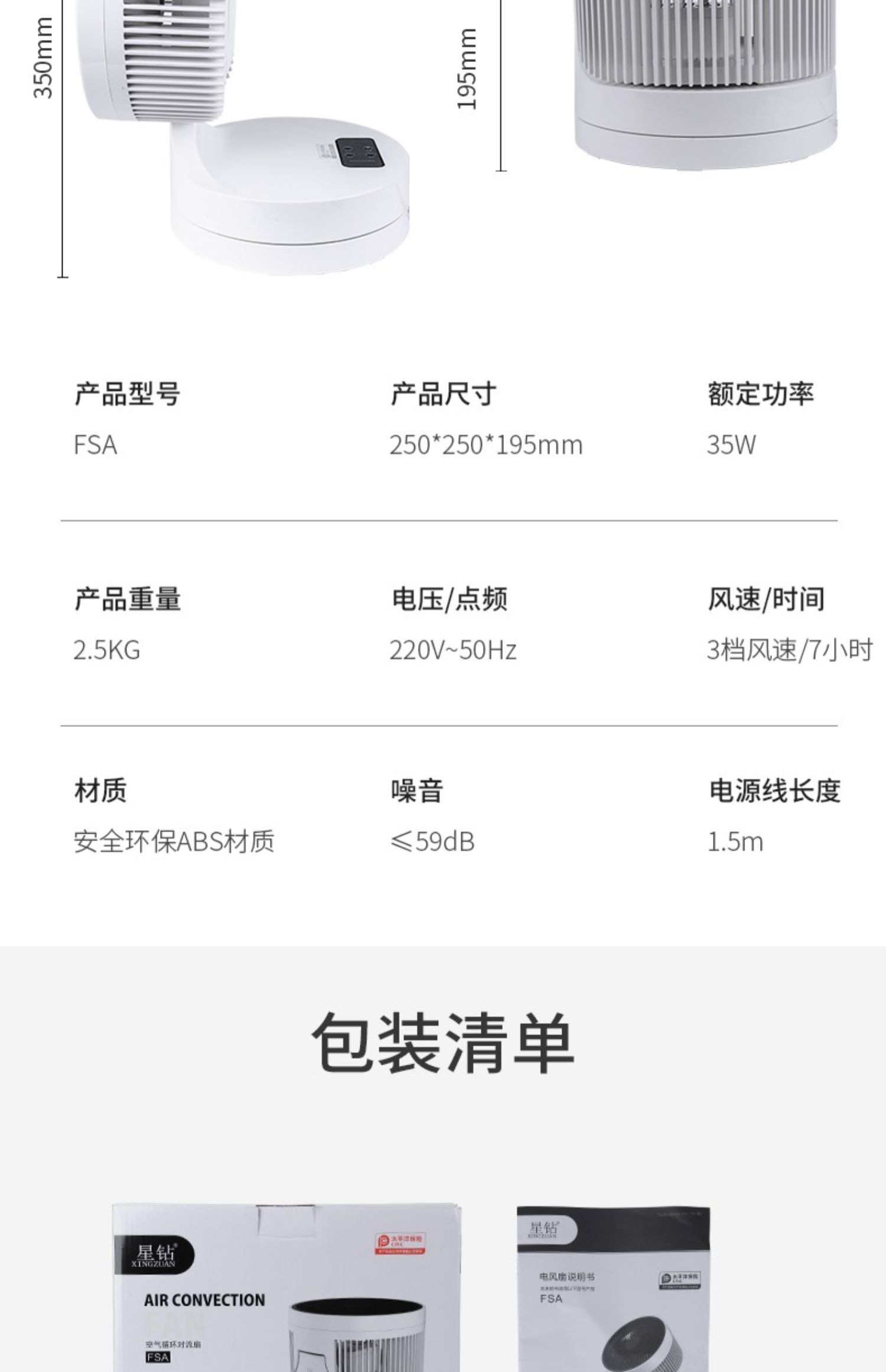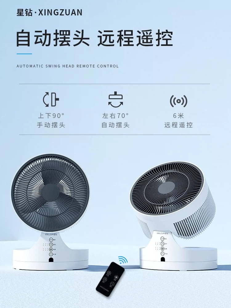 星钻空气循环扇涡轮对流电风扇台扇小型台式家用折叠遥控静音风扇FSA