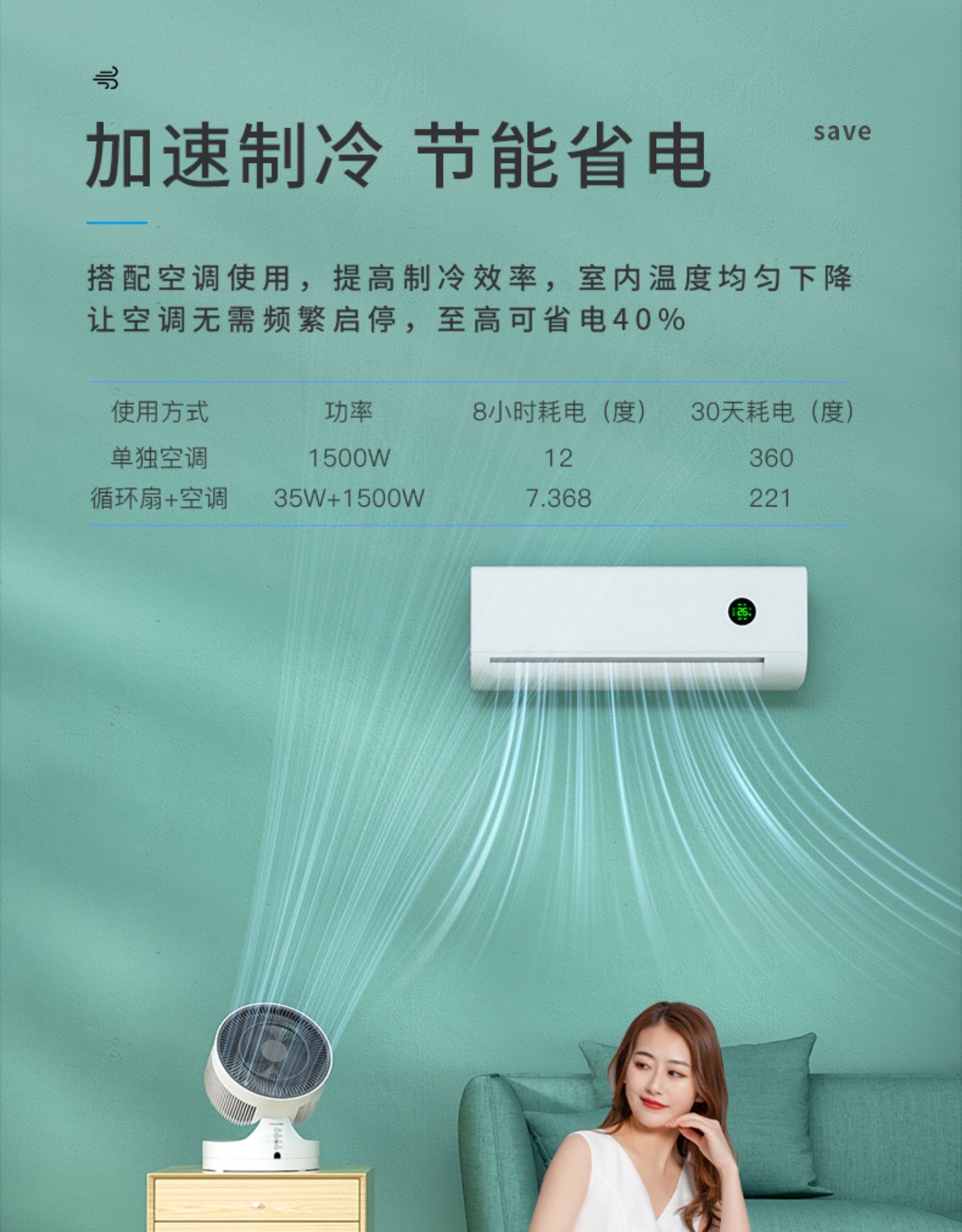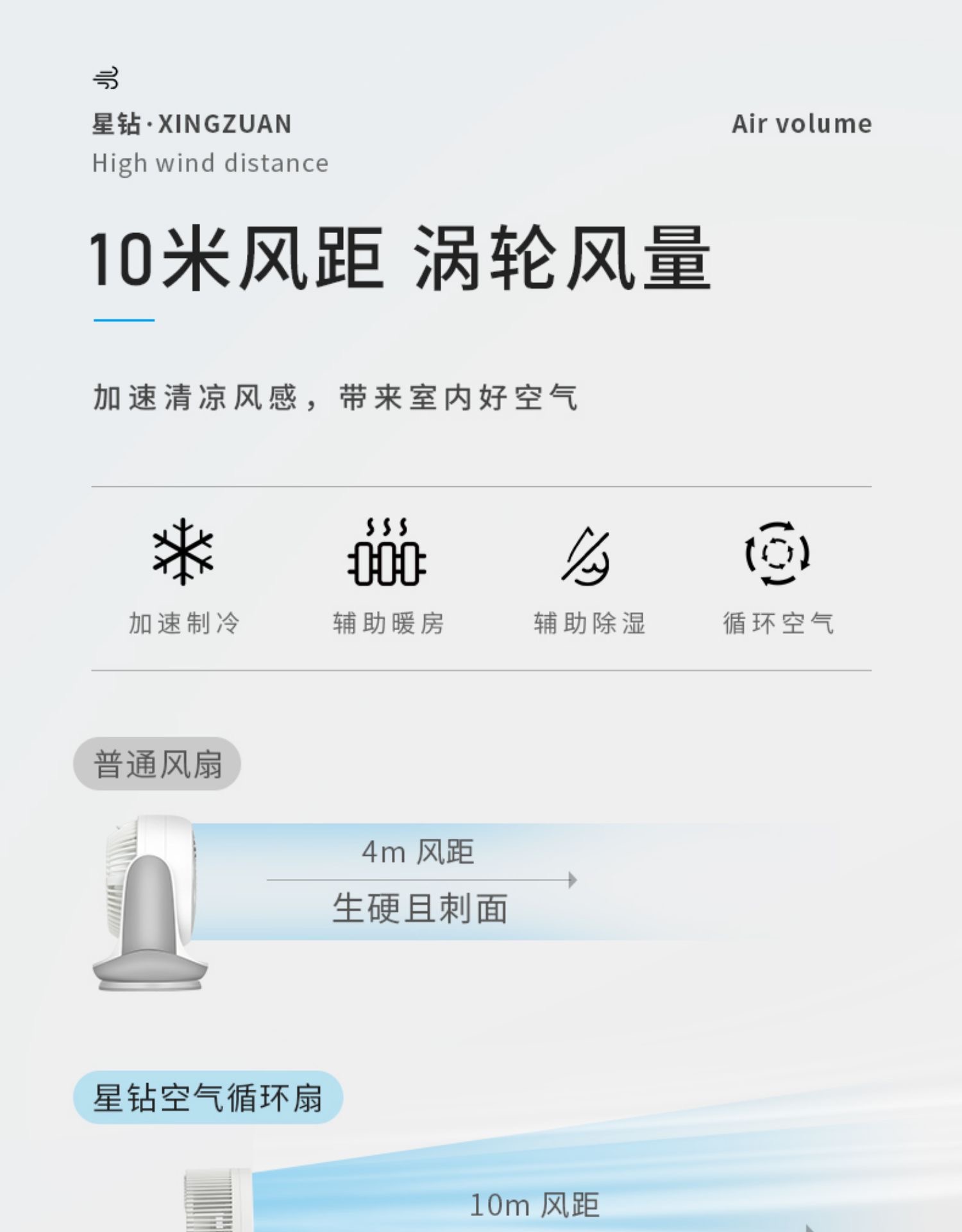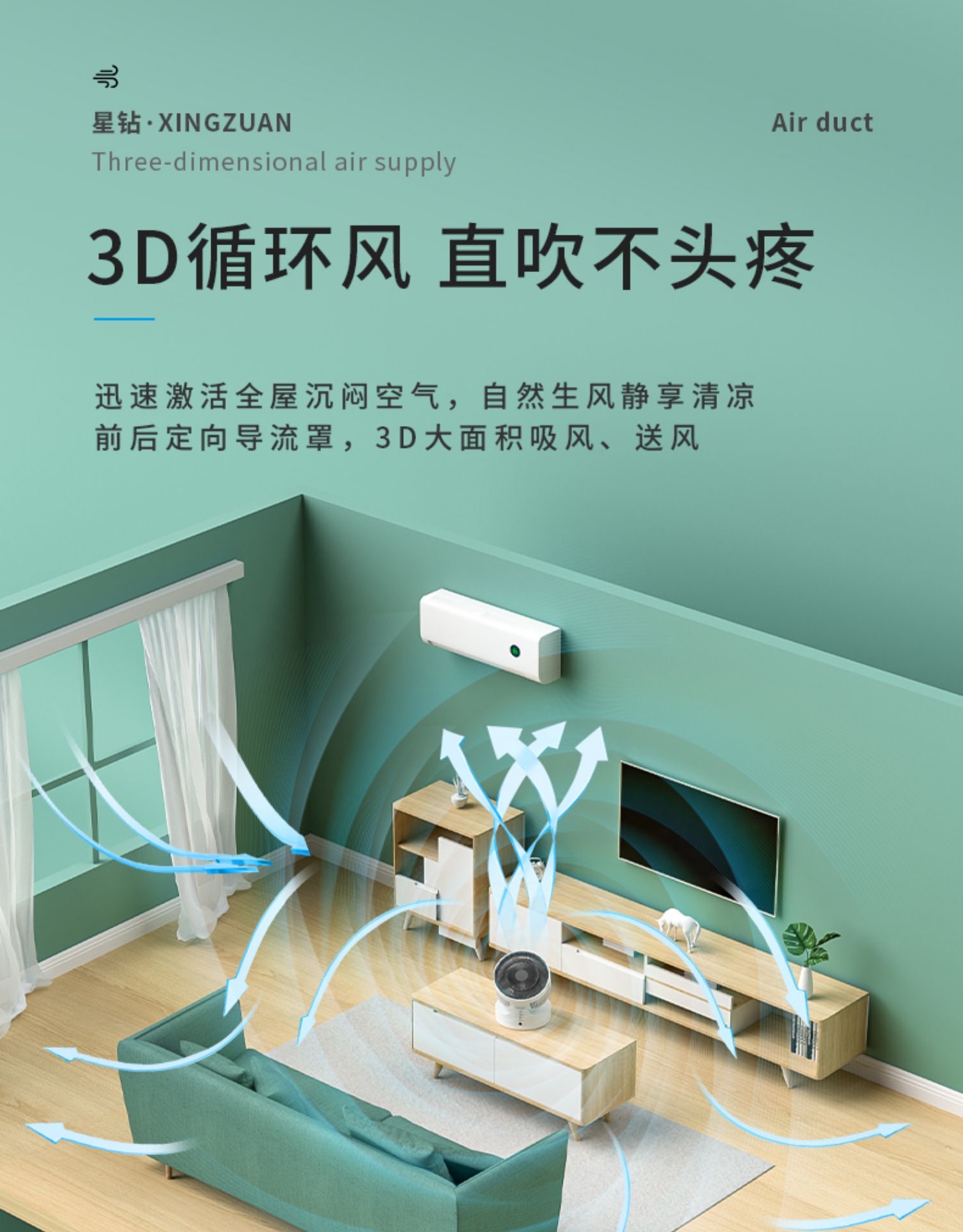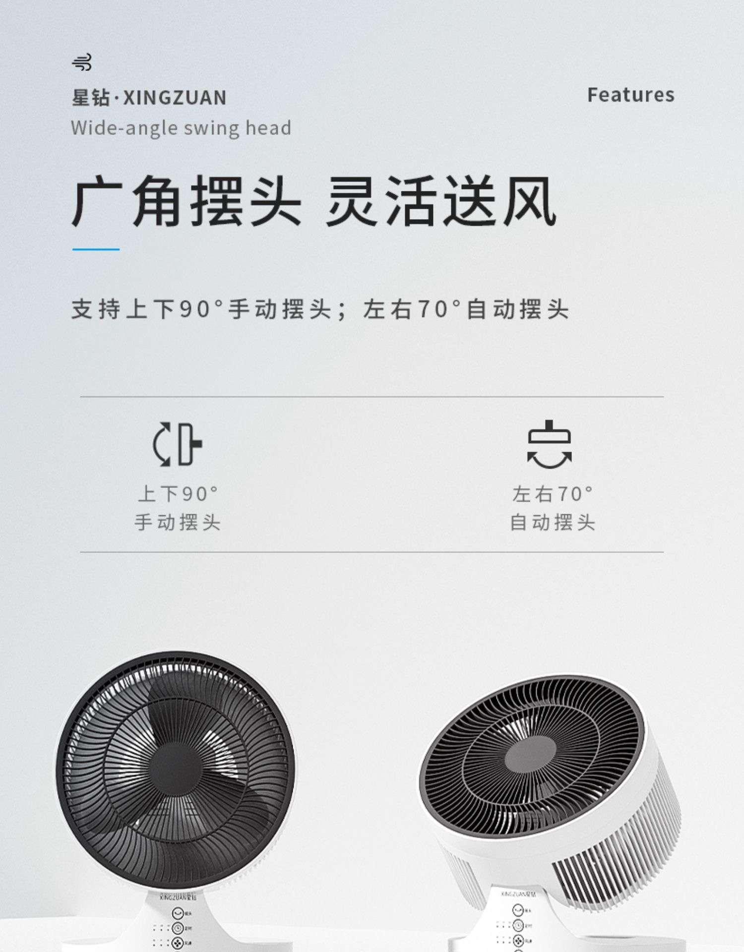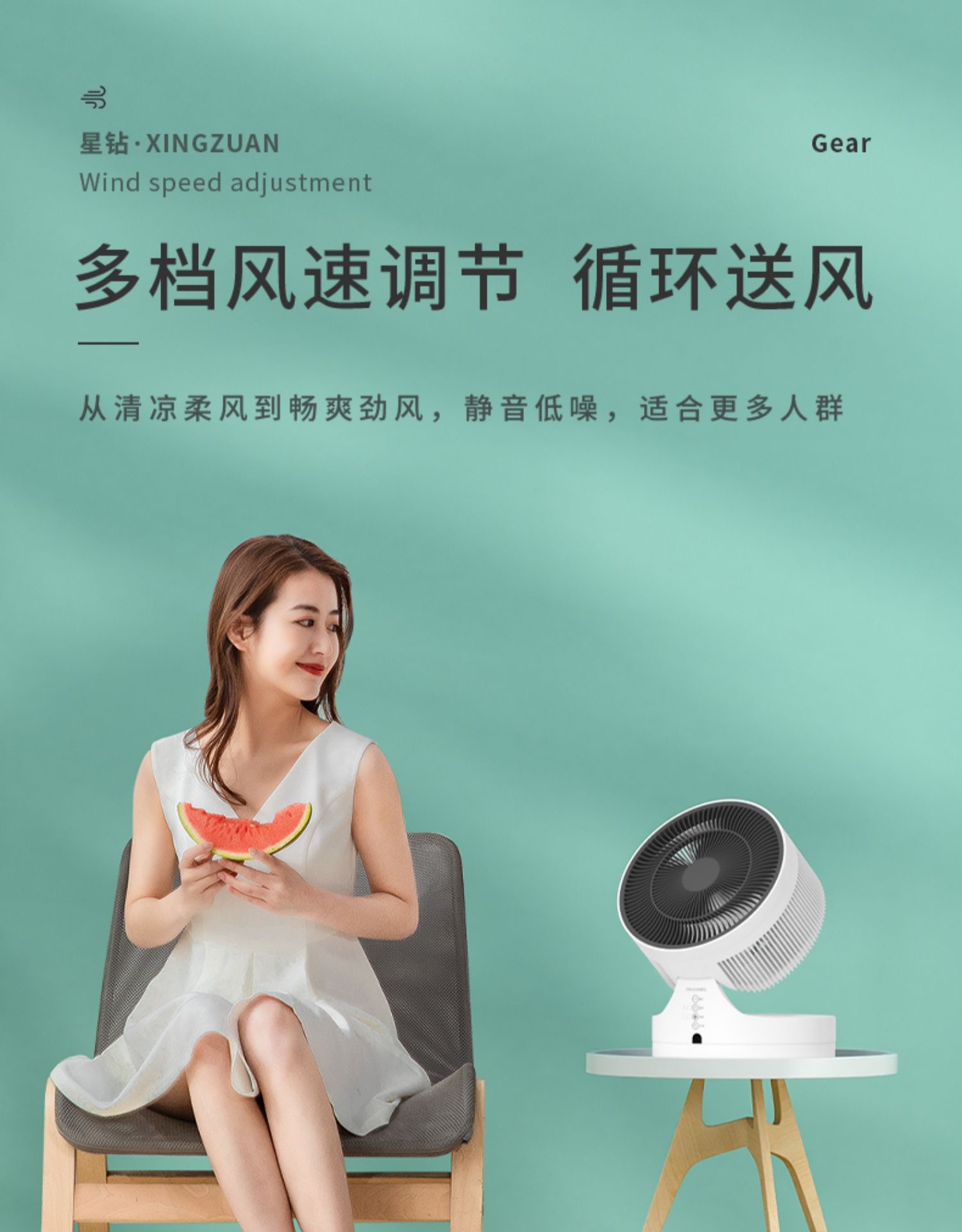 星钻空气循环扇涡轮对流电风扇台扇小型台式家用折叠遥控静音风扇FSA