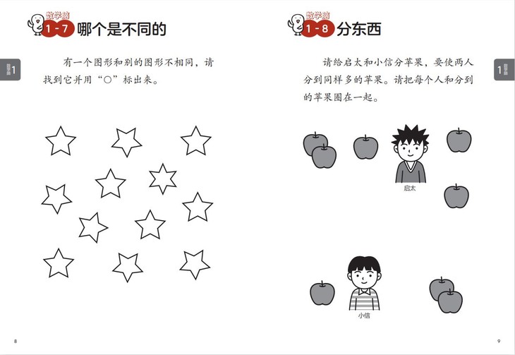 以4~6 岁的儿童为对象,为孩子设置了14 种题型,每种题型包括4 个问题。题目按照由易至难的原则编排,按顺序做的孩子可以充分享受解题乐趣。考虑到孩子的识字水平,书中采用了很多通过观察就可以理解的问题,采用文图结合的方式,家长可以像讲故事一样把解题条件读给孩子听。