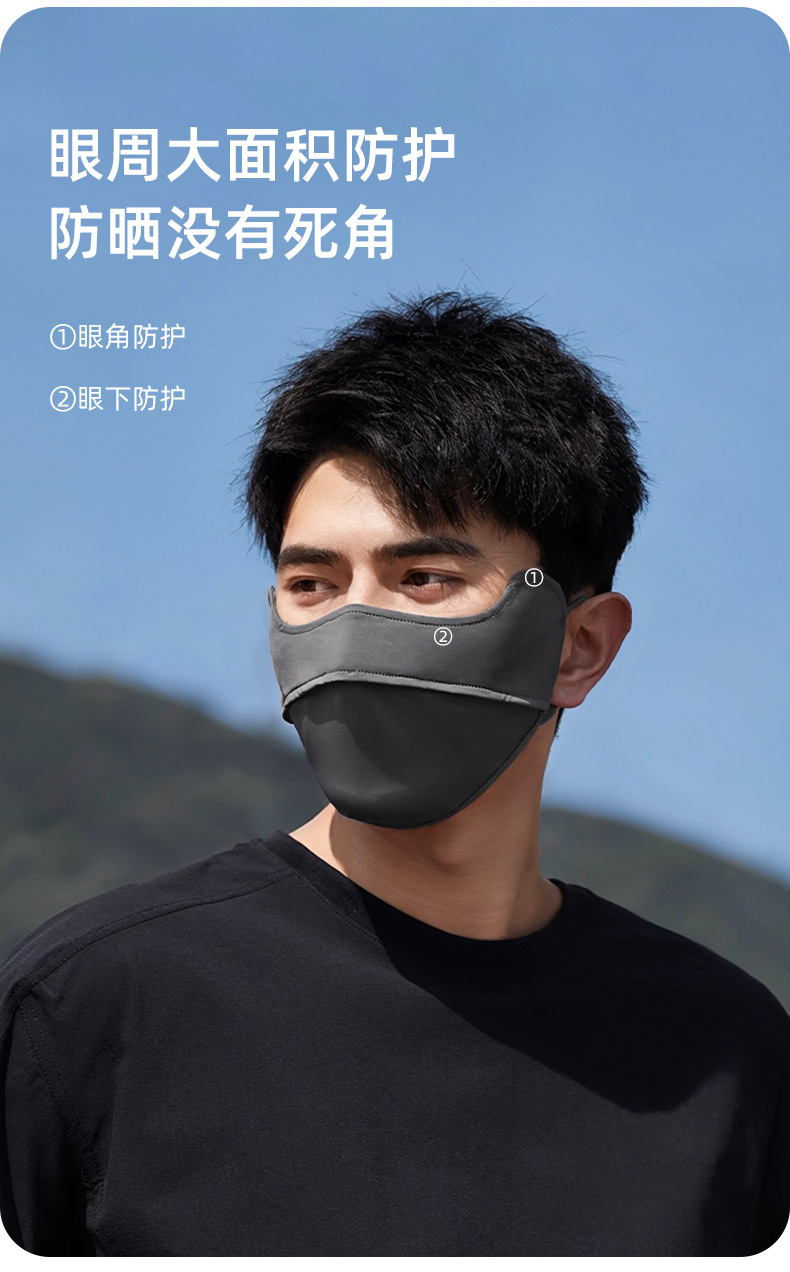 新款防晒口罩男夏季冰丝薄款透气面罩户外遮阳防紫外线护眼角锦纶