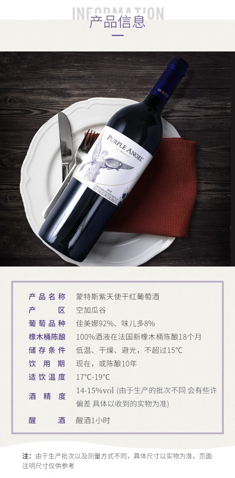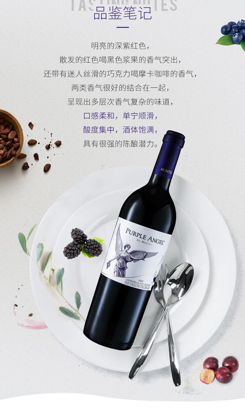 蒙特斯酒庄紫天使干红葡萄酒750ml智利原瓶进口