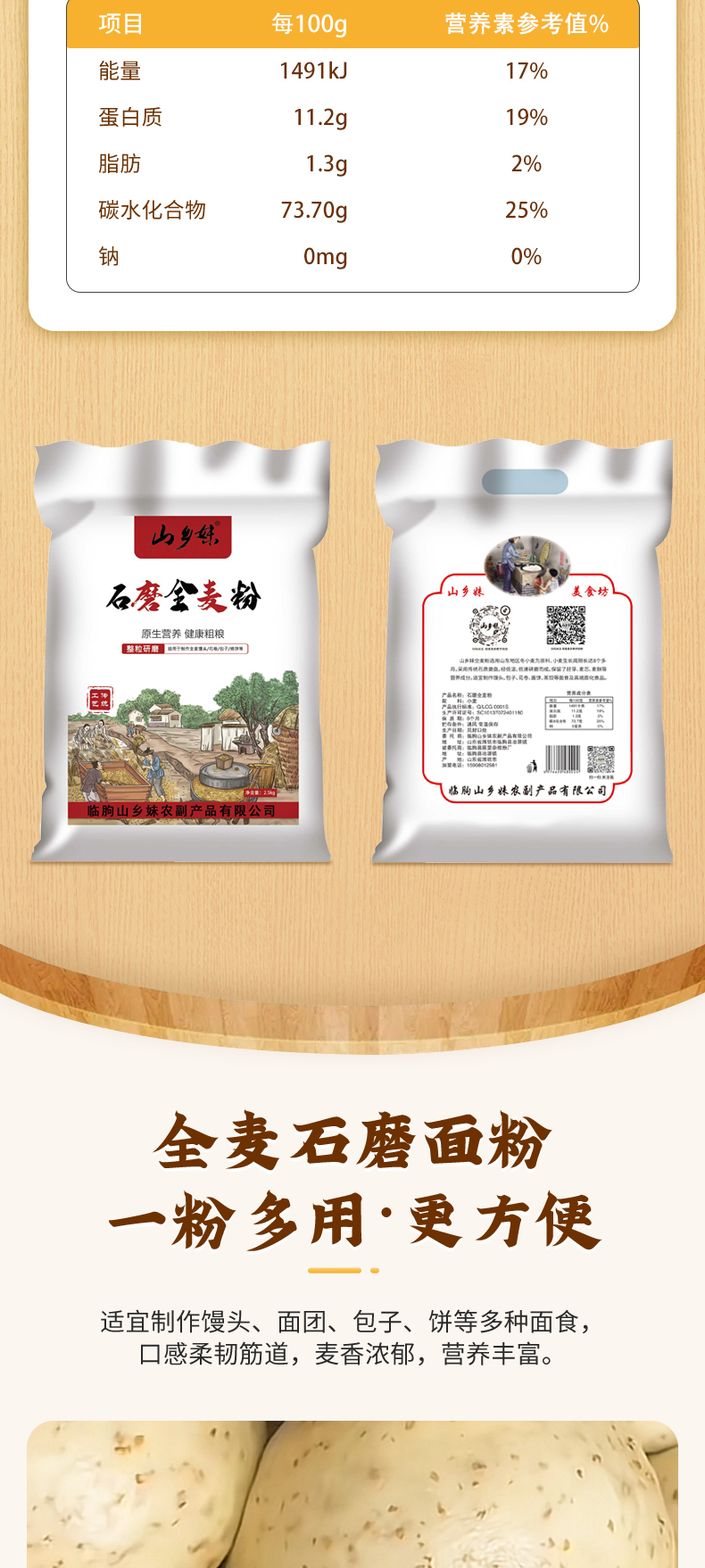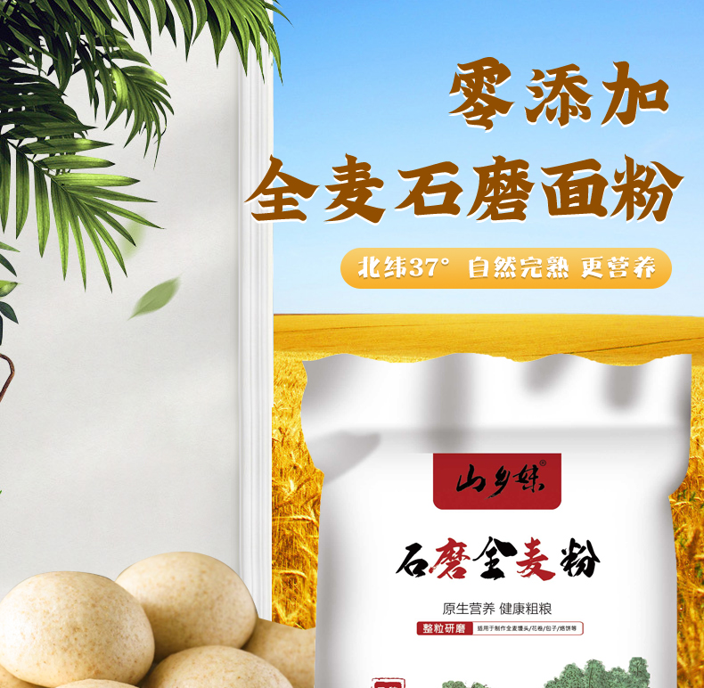 【大鹏】山乡妹全麦面粉5斤装 含麦芯胚芽麦麸