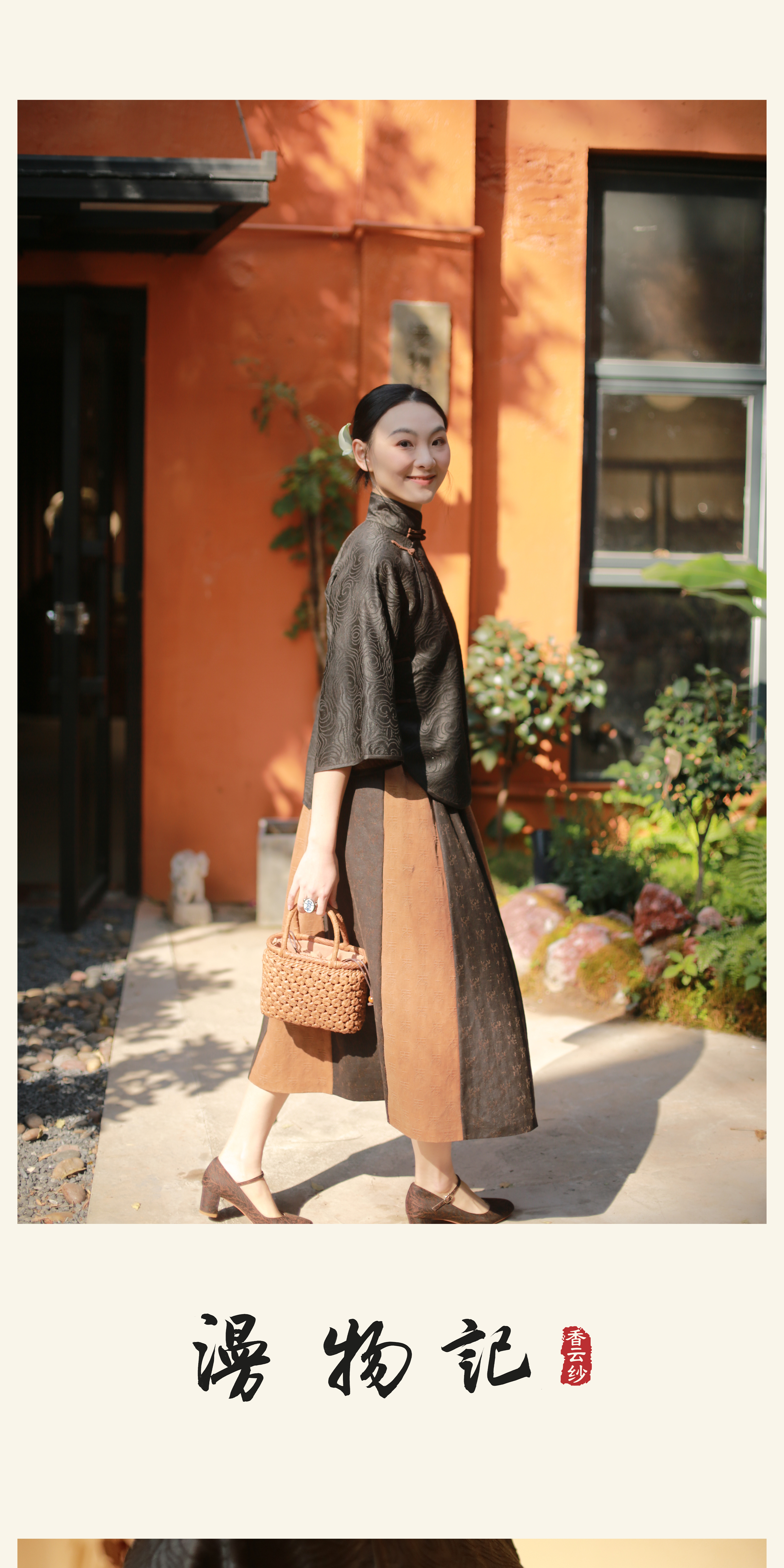 漫物记香云纱柞蚕丝喇叭袖连肩旗袍XYS-W030