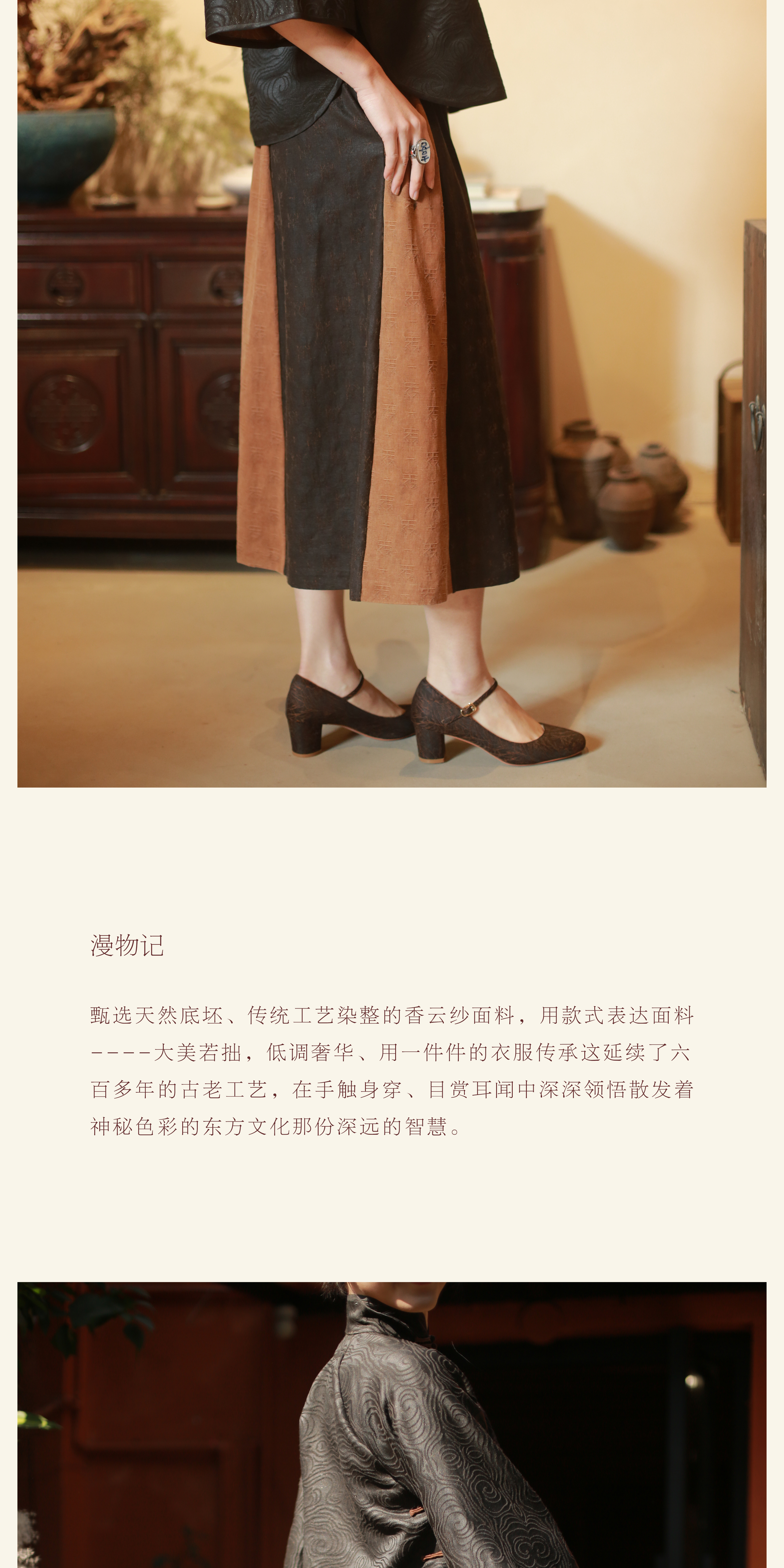 漫物记重磅香云纱滚边翻领大衣XYS-113