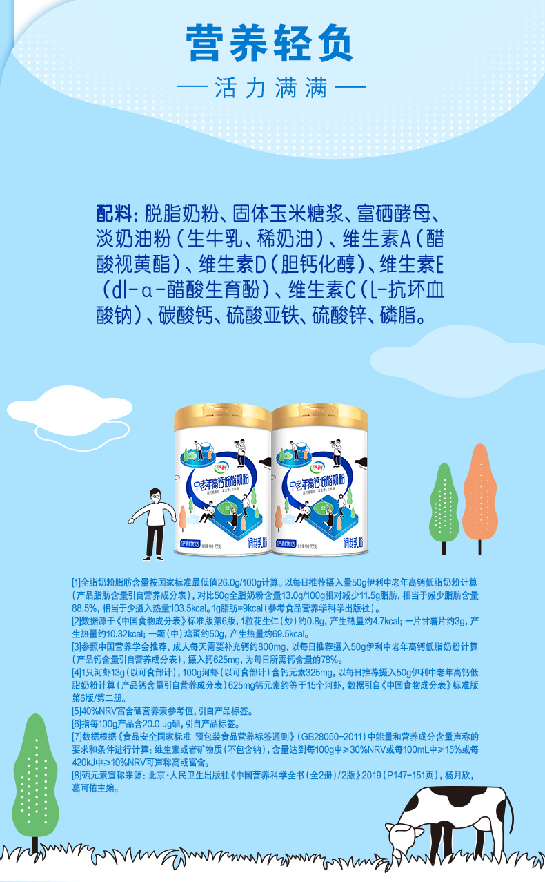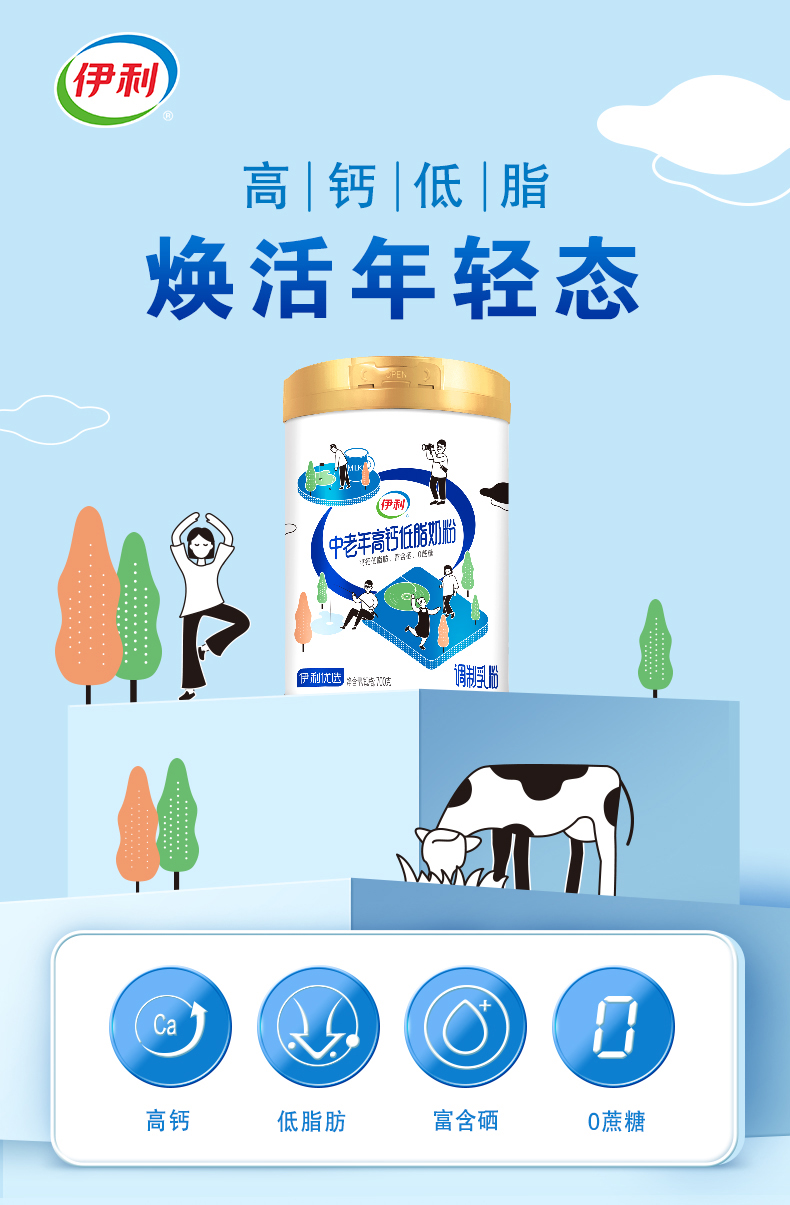 【冬日盛惠】伊利中老年高钙低脂奶粉700g*2罐(新老包装随机发货)