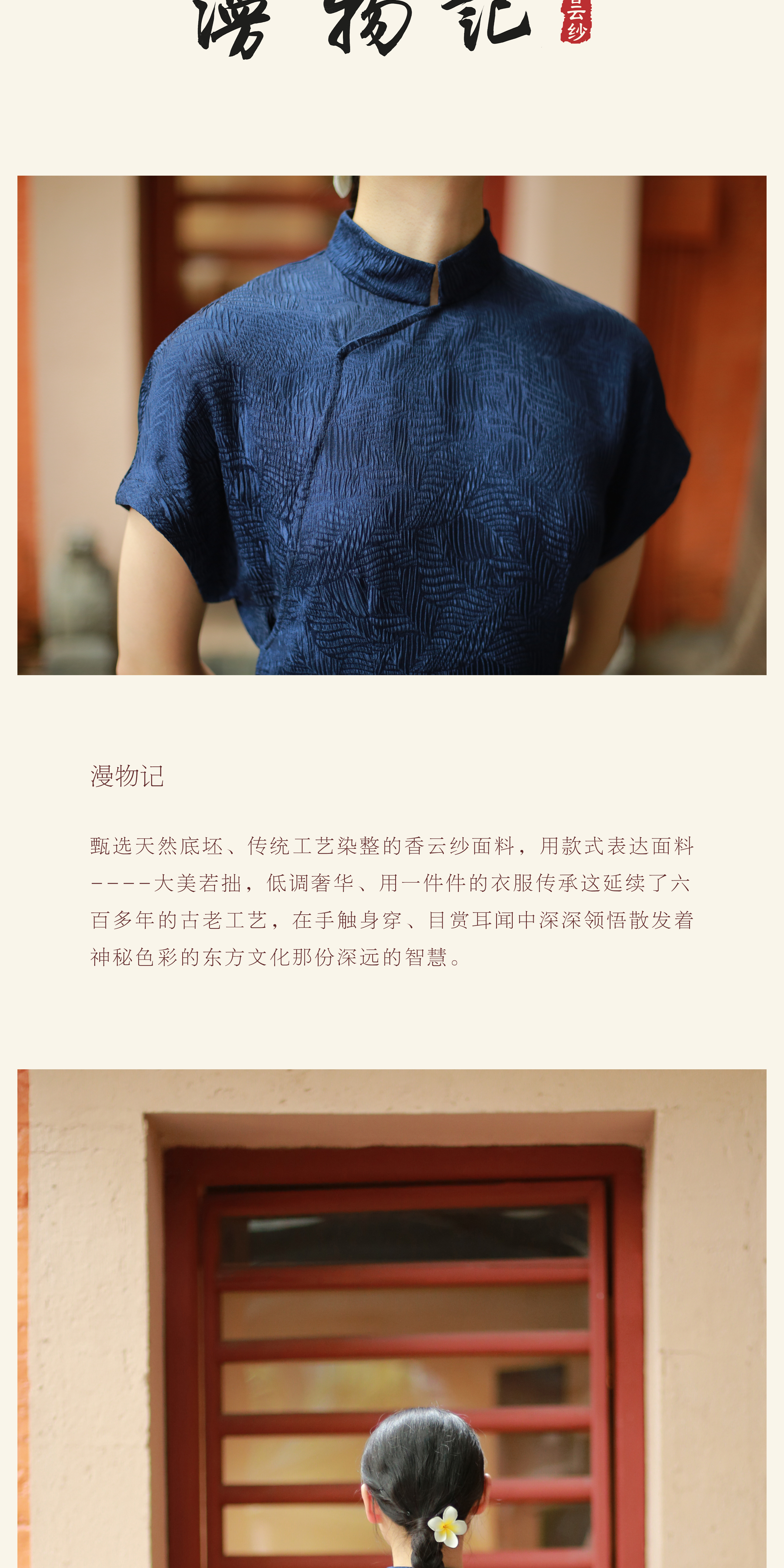 漫物记甲丝麻+龟裂纹斜襟立领双面马xys-324