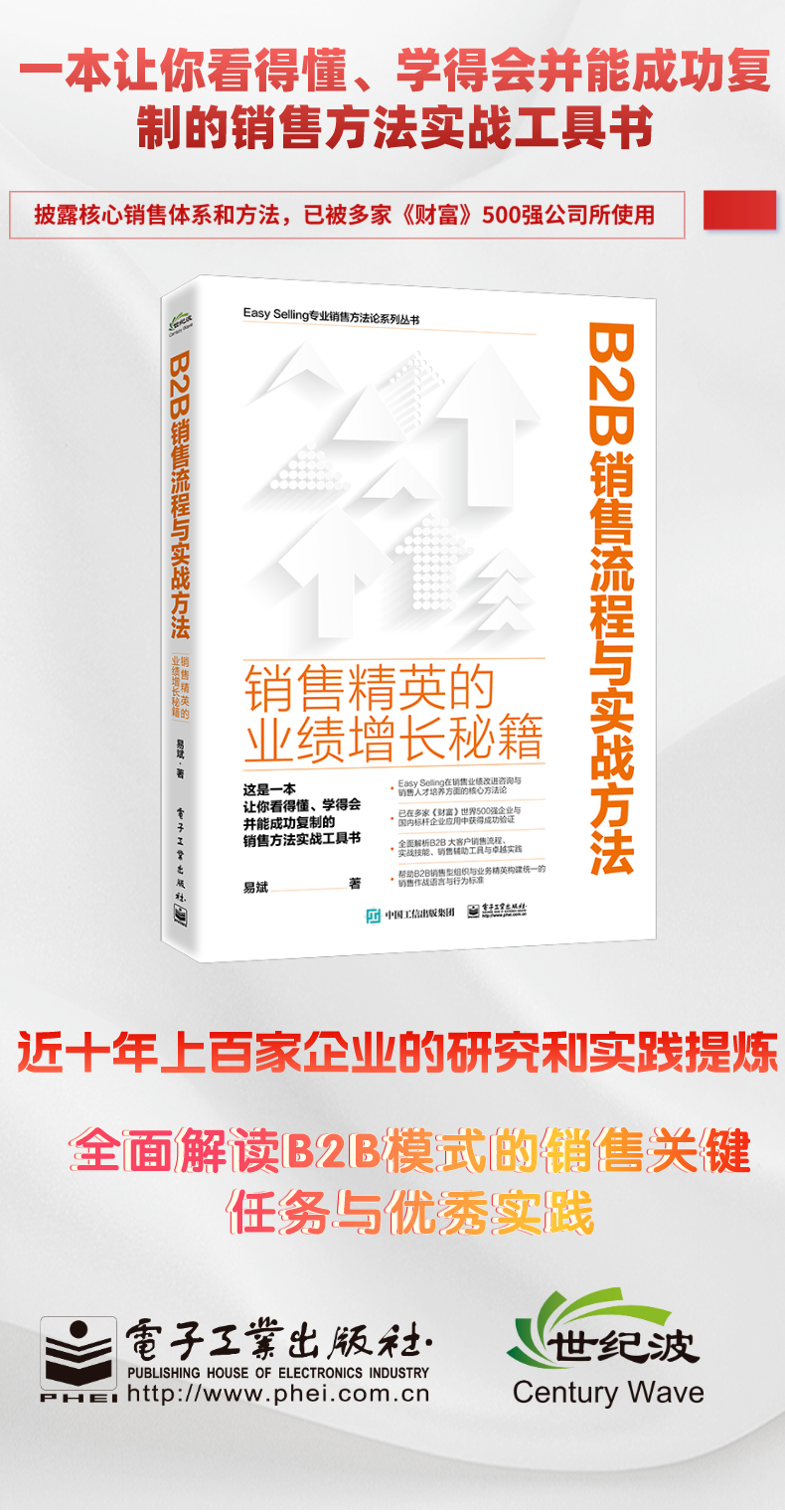 本书是Easy Selling销售赋能中心近十年来在销售业绩改进咨询与销售人才赋能方面的核心方法论,已在为多家《财富》世界500强公司与国内标杆公司的服务项目中得到成功验证。本书聚焦B2B大客户销售流程、实战技能、销售辅助工具的讲解,融营销策略与销售方法于一体,全面解读B2B模式的销售关键任务与*佳实践。本书从挑战与机遇、销售流程、需求分析、关系培育、策略制定、价值管理等9个模块进行全方位论述,注重理论与实践结合,系统化与结构化并重,辅以实战实用的实践案例与销售工具模版,让读者看得懂、学得会,并能成功复制。