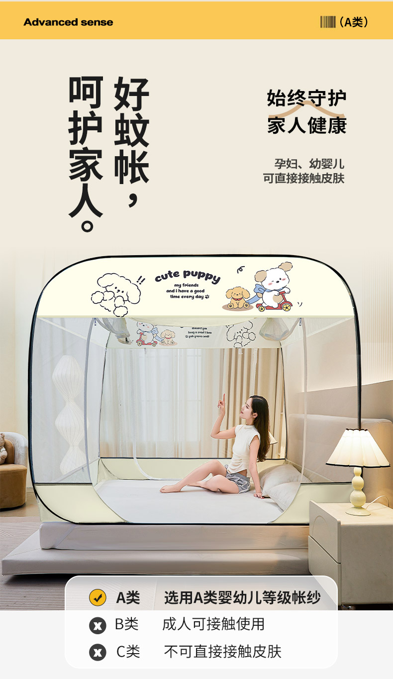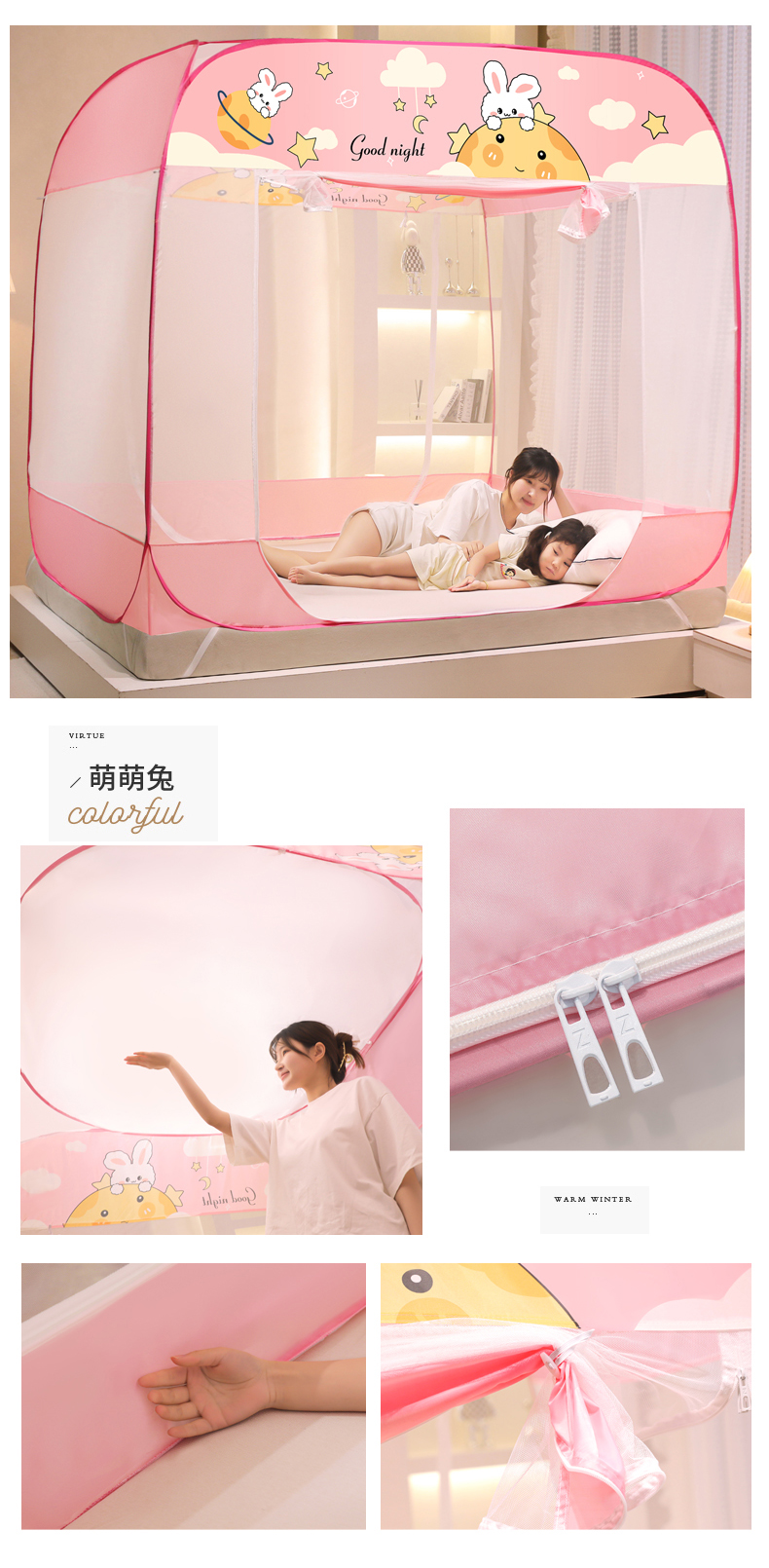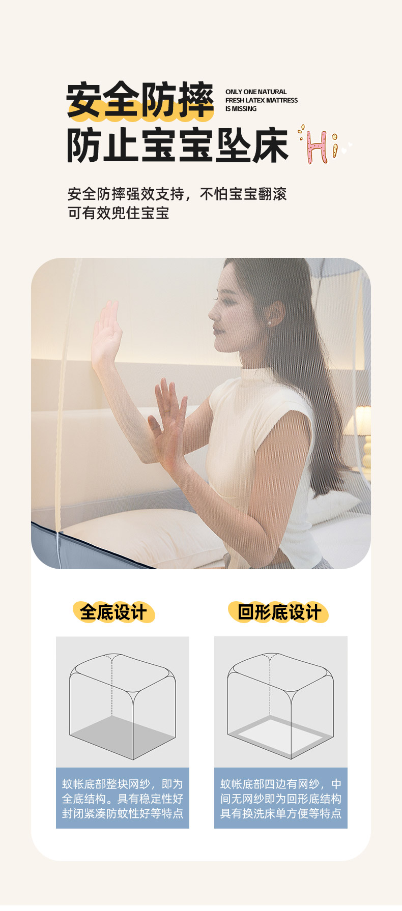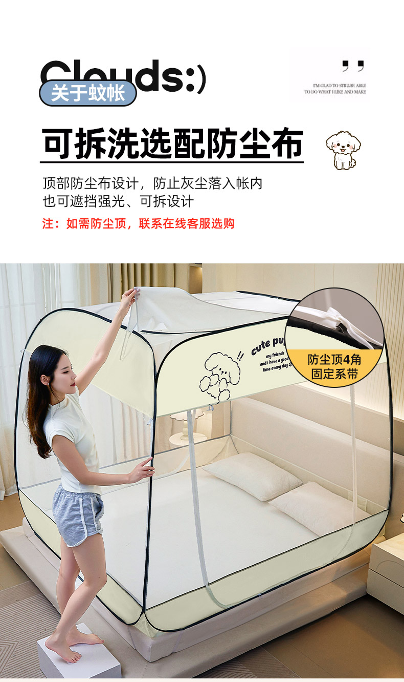 自然醒防尘免安装大方顶蚊帐 可折叠家用防摔儿童卧室蒙古包加密加厚HH